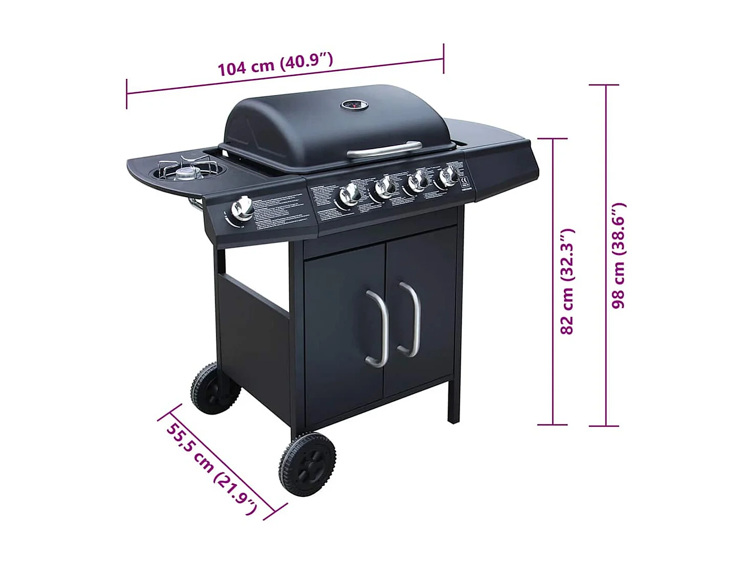 Barbecue e Griglia a Gas 4+1 Fornelli Nero