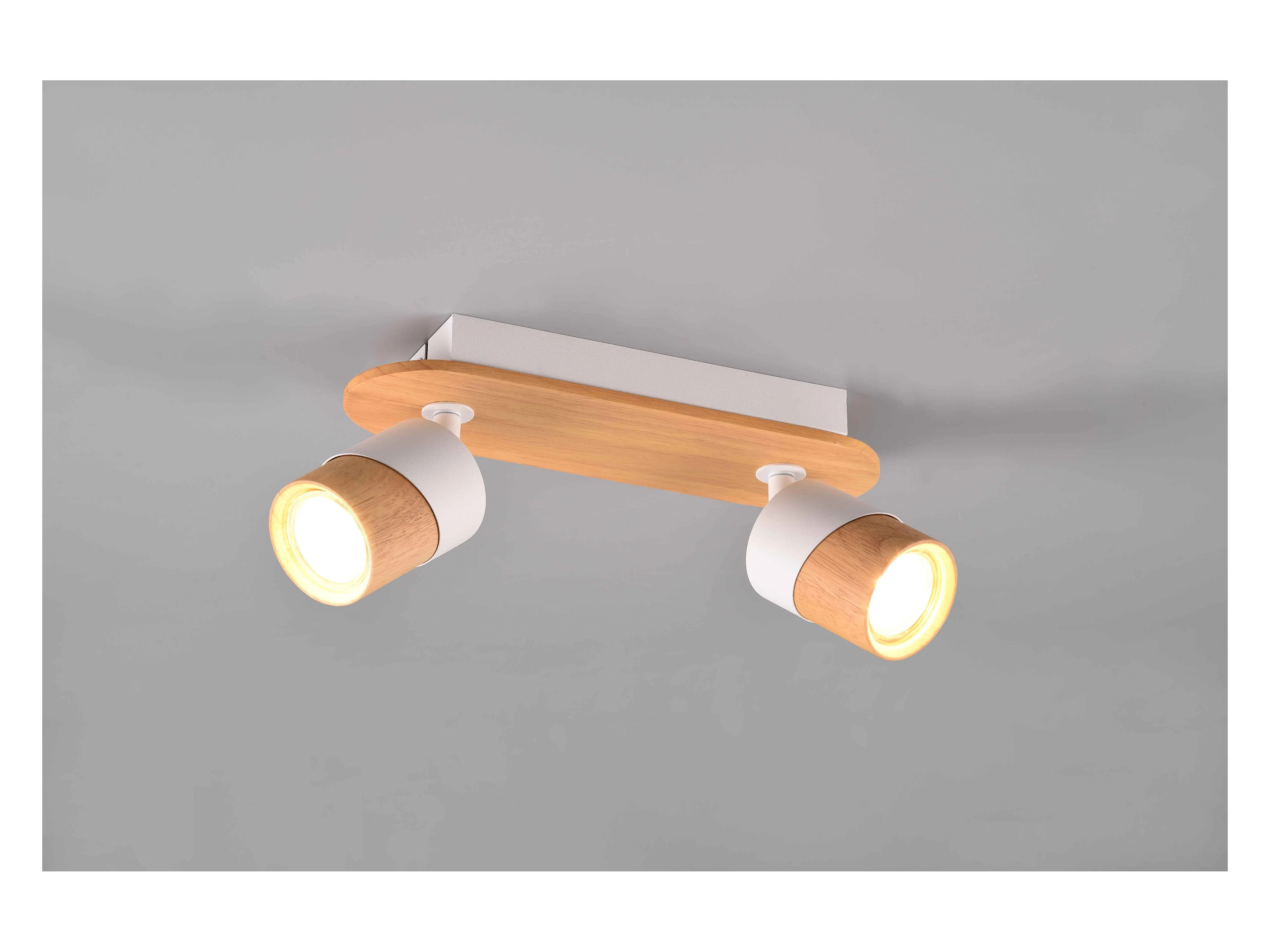 Barra 2 faretti orientabili, metallo, bianco e naturale, 28x15x9 cm, Aruni