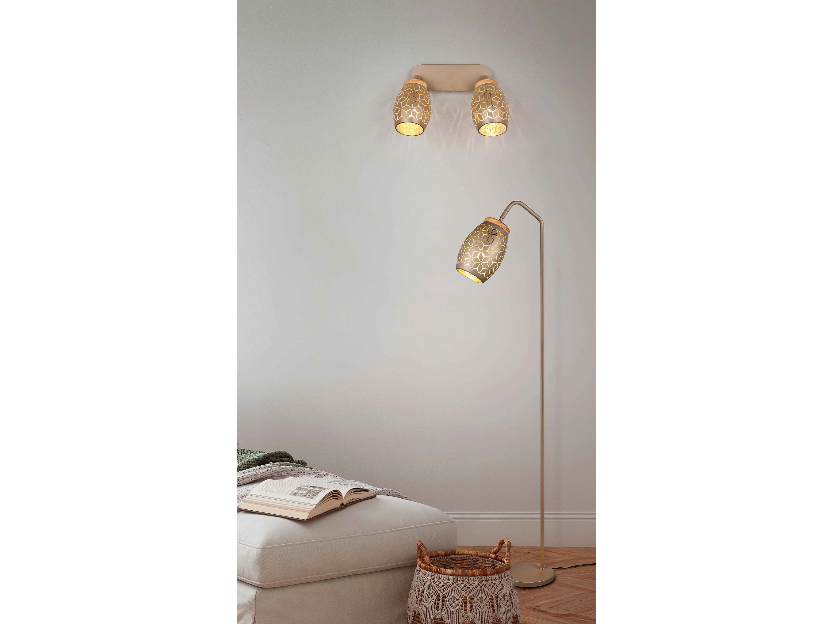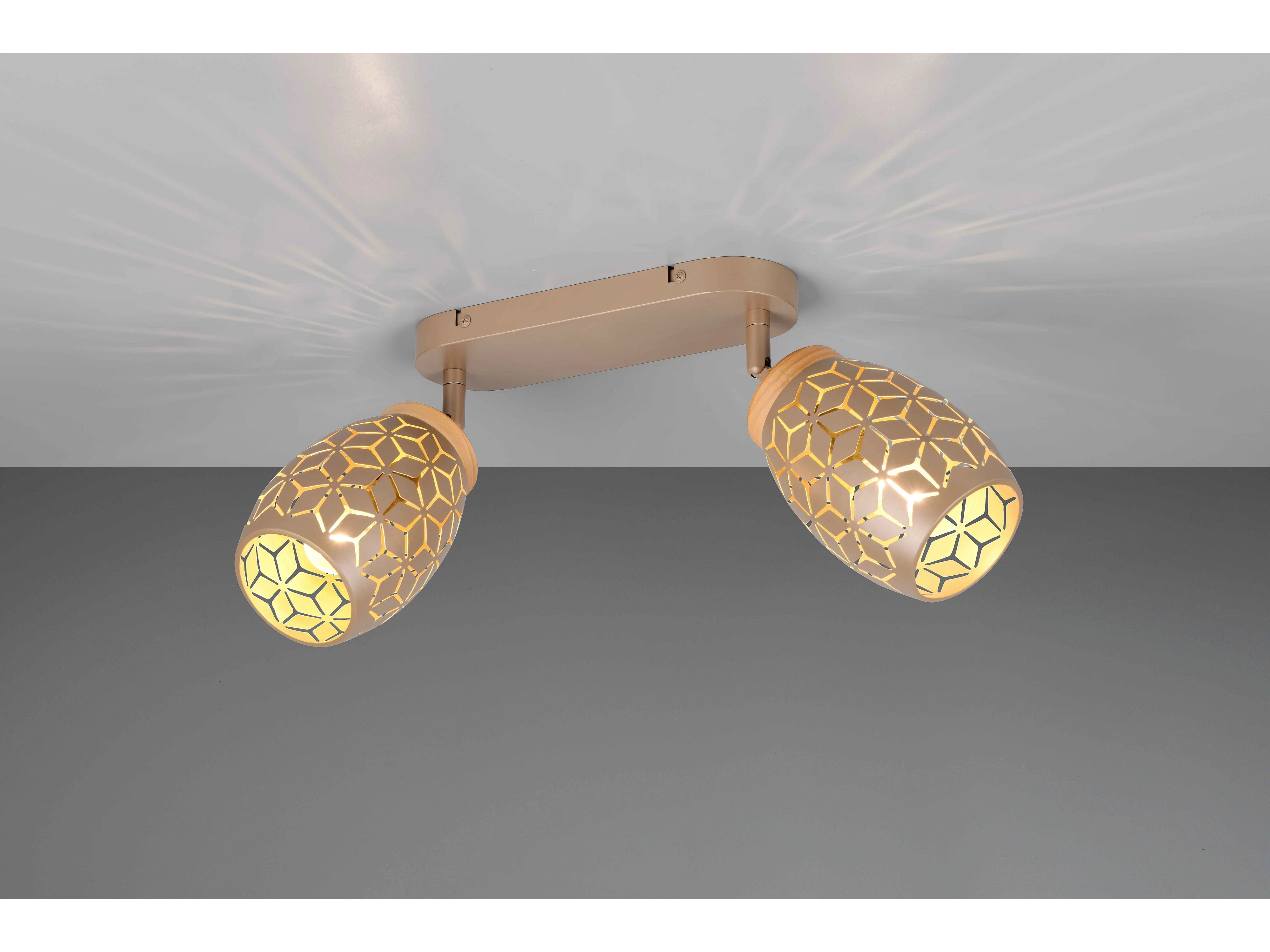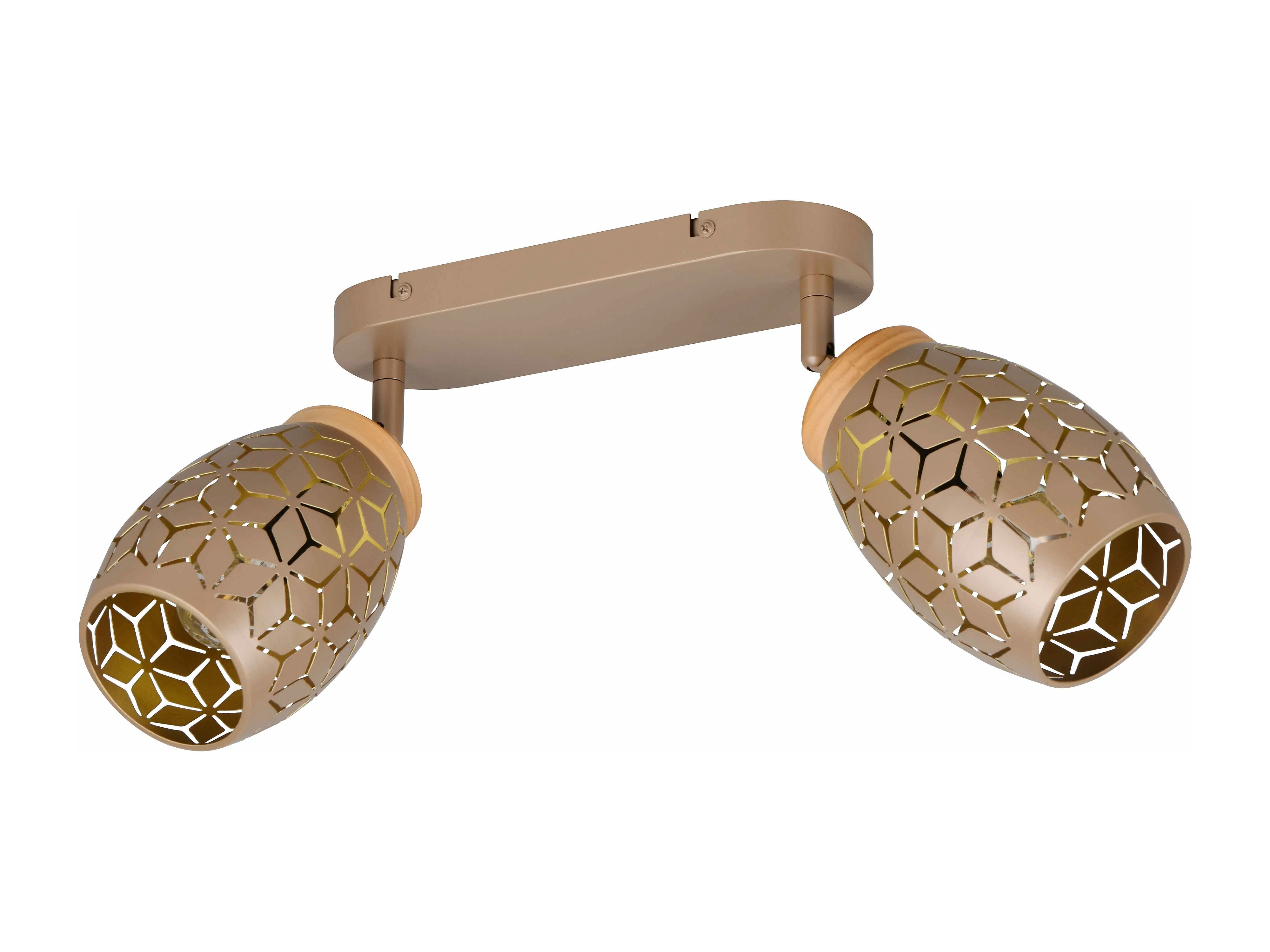 Barra 2 spots, metallo, caffè e legno, L 28 cm, Bidar