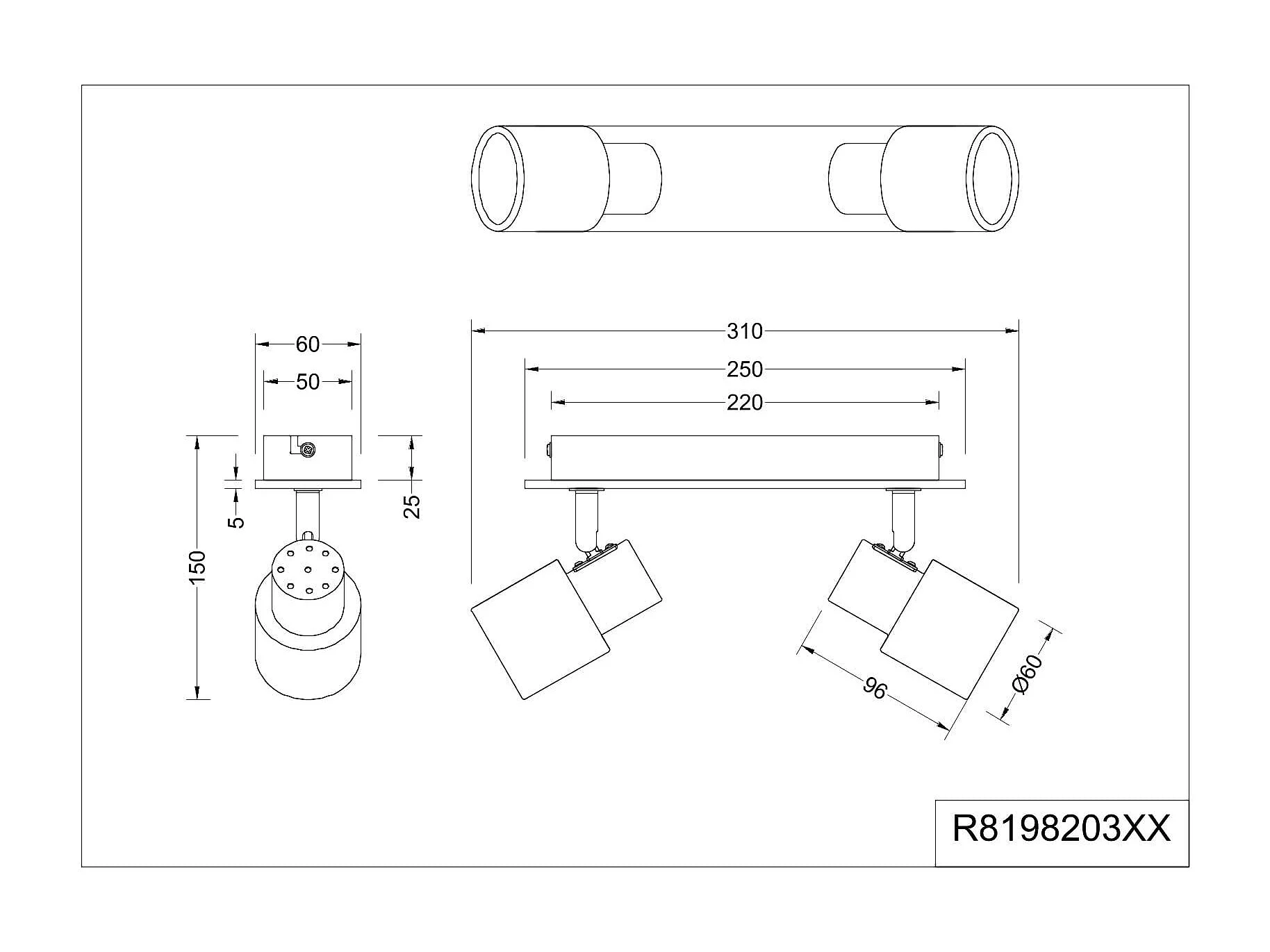 Barra 3 spots cilindro, acciaio, bianco,48 cm, Marley