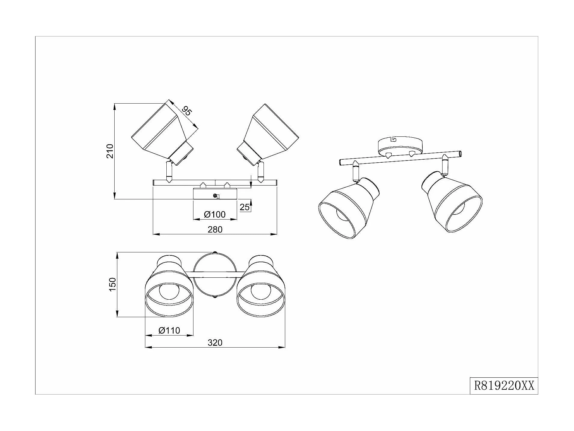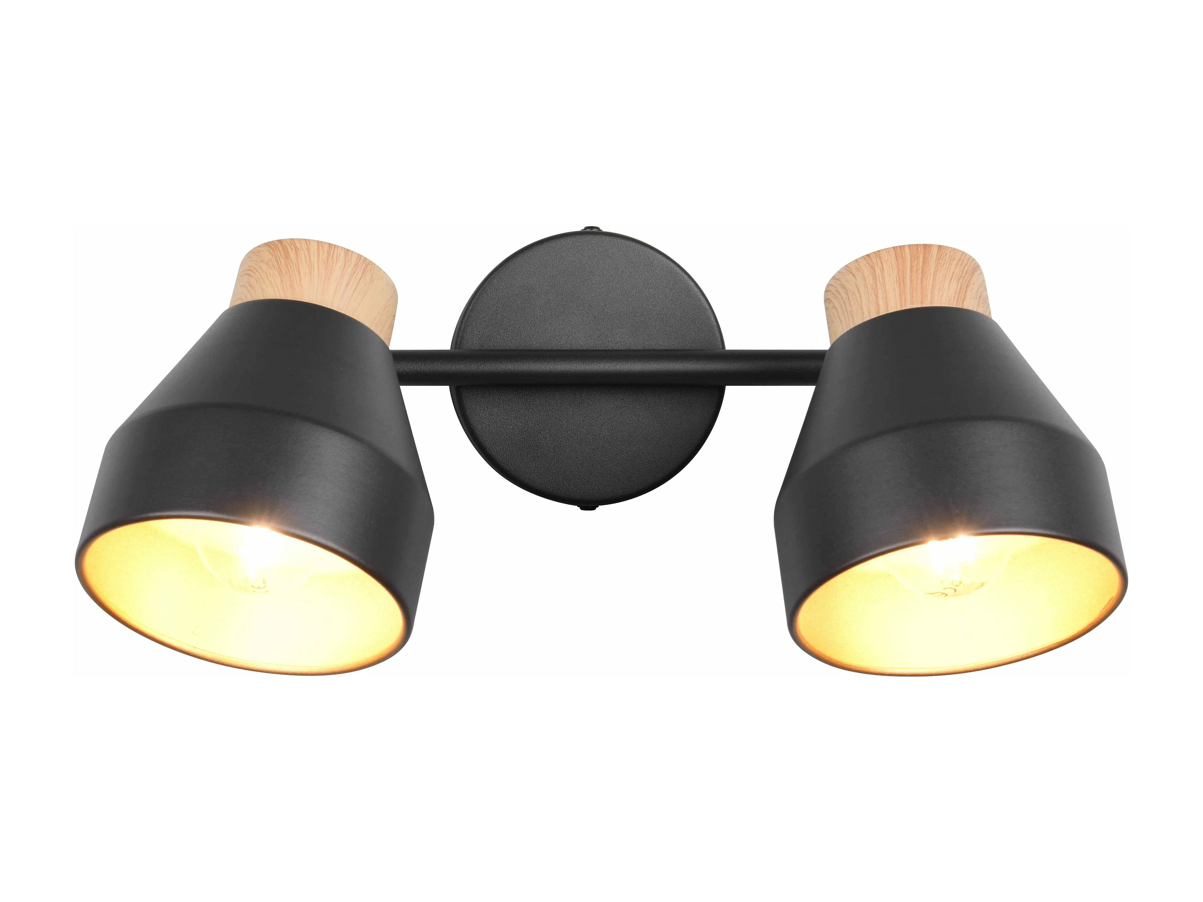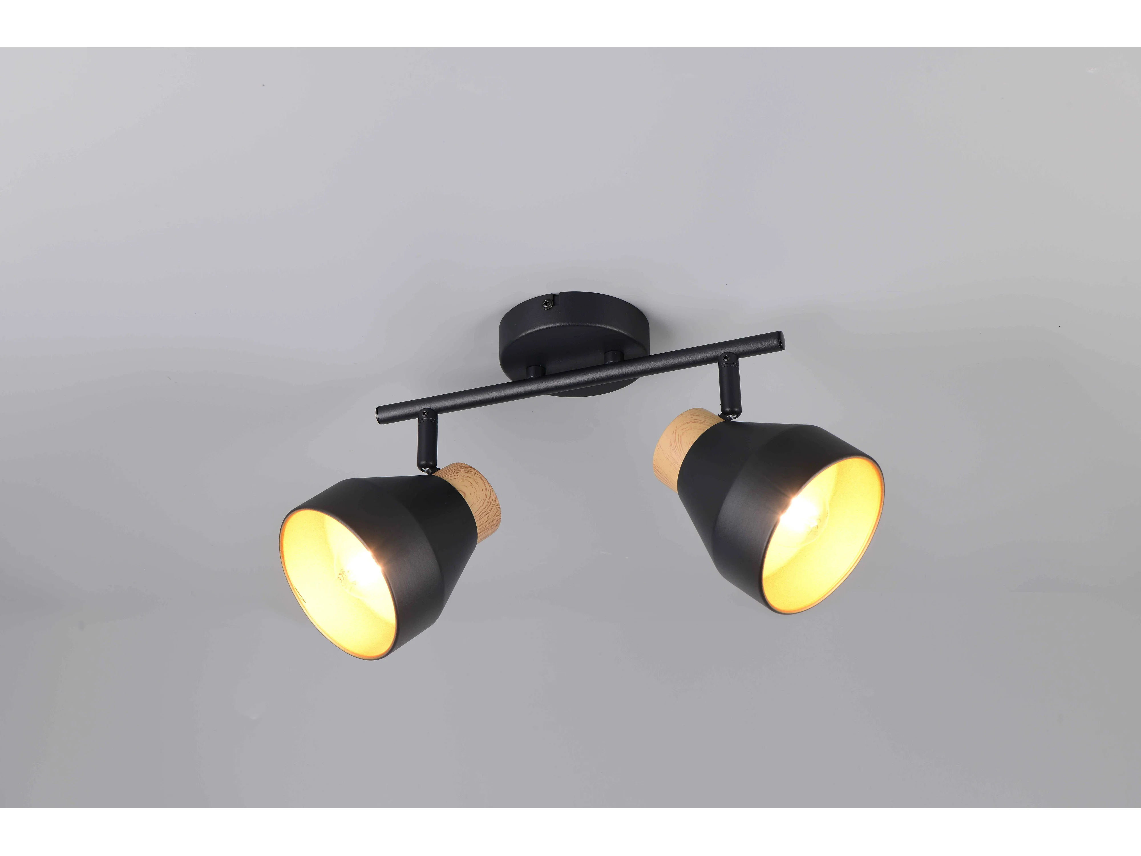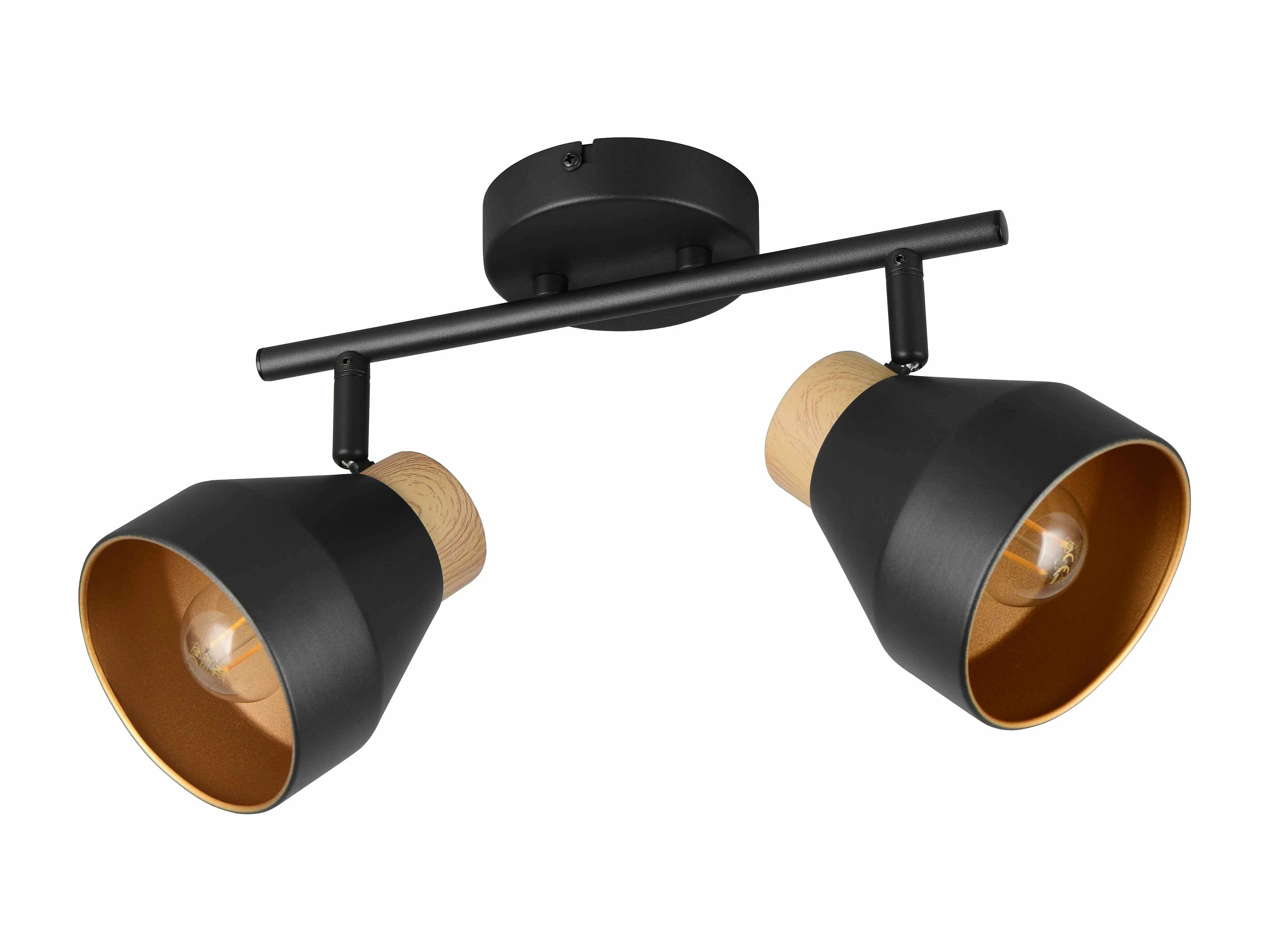 Barra 2 spots, metallo e legno, nero e oro, L 32 cm, Valentin