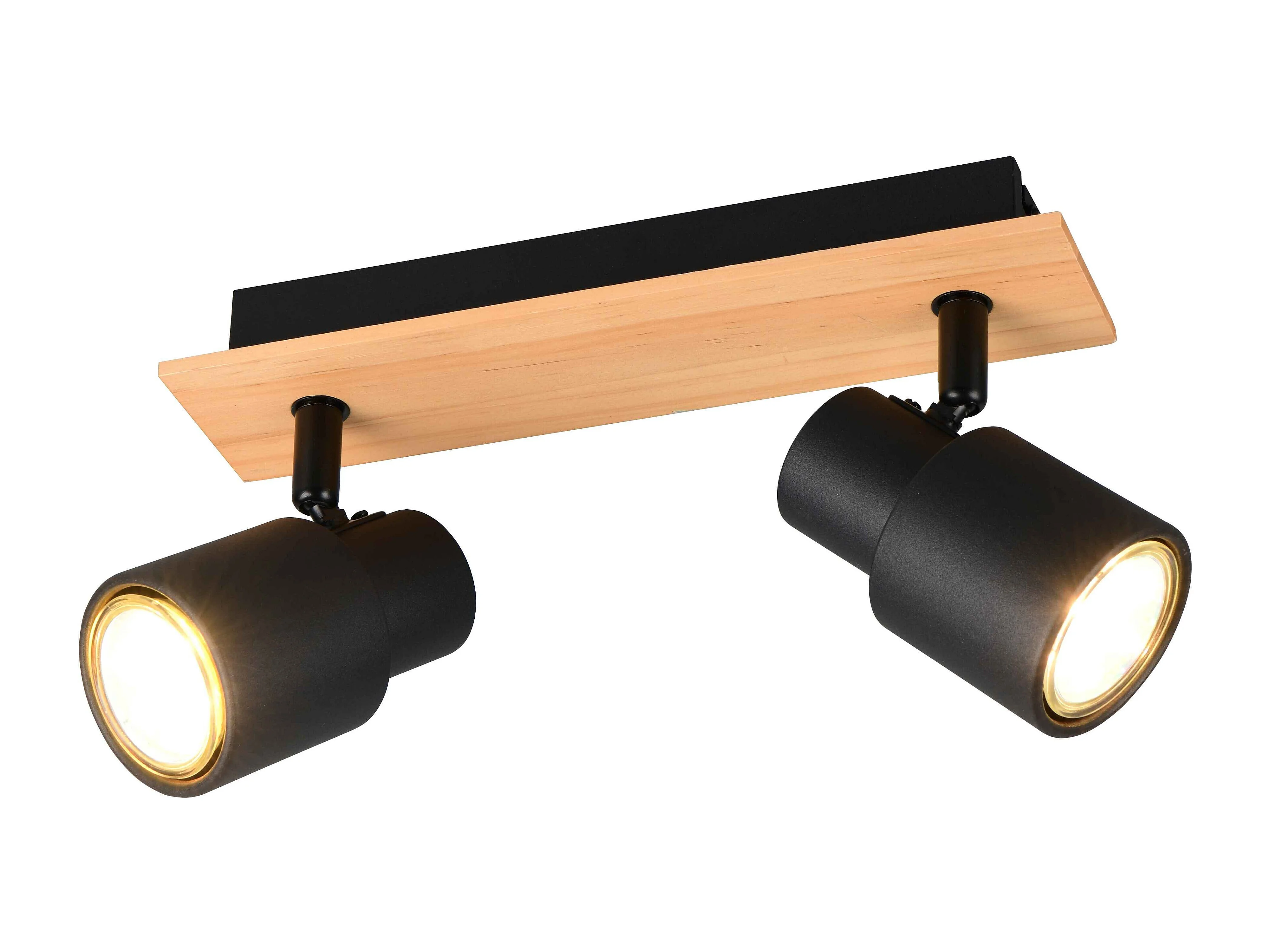 Barra 2 spots, metallo, nero e legno, L 28 cm, Bidar