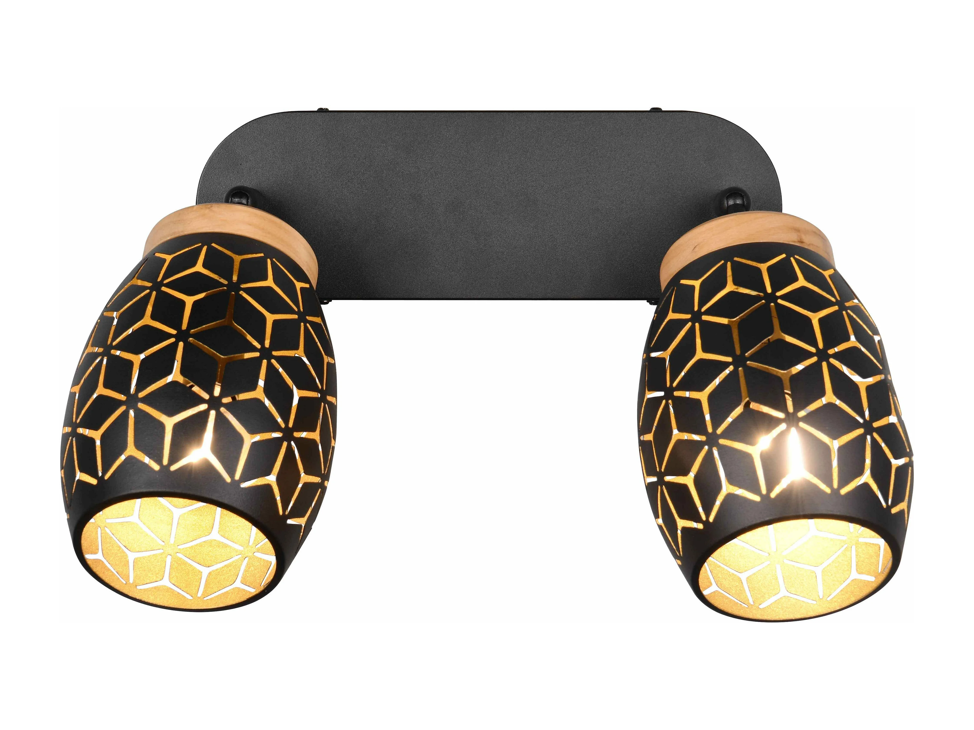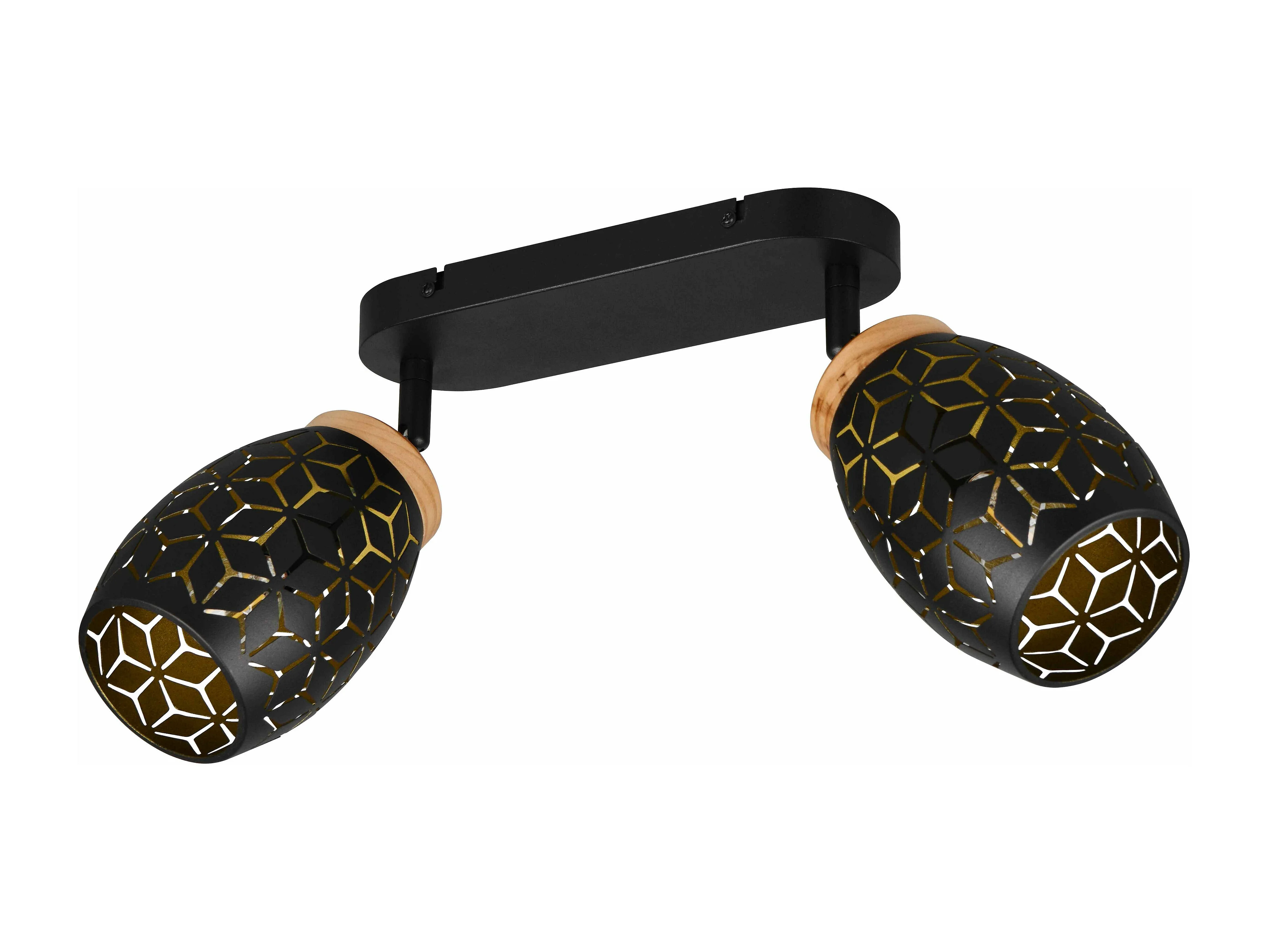 Barra 2 spots, metallo e legno, nero e oro, L 32 cm, Valentin