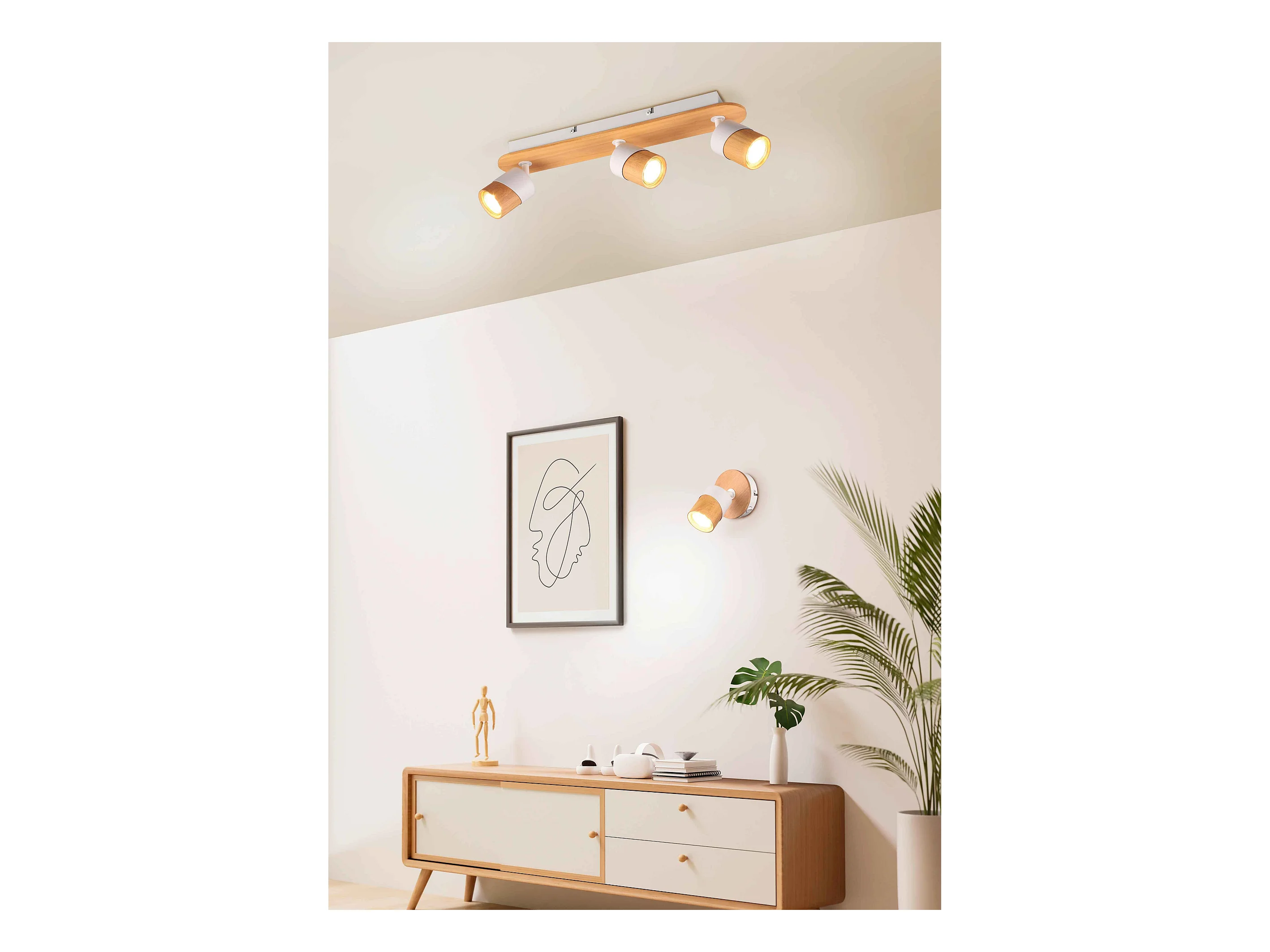 Barra 3 faretti orientabili. metallo, bianco e naturale, L 48 cm, Aruni