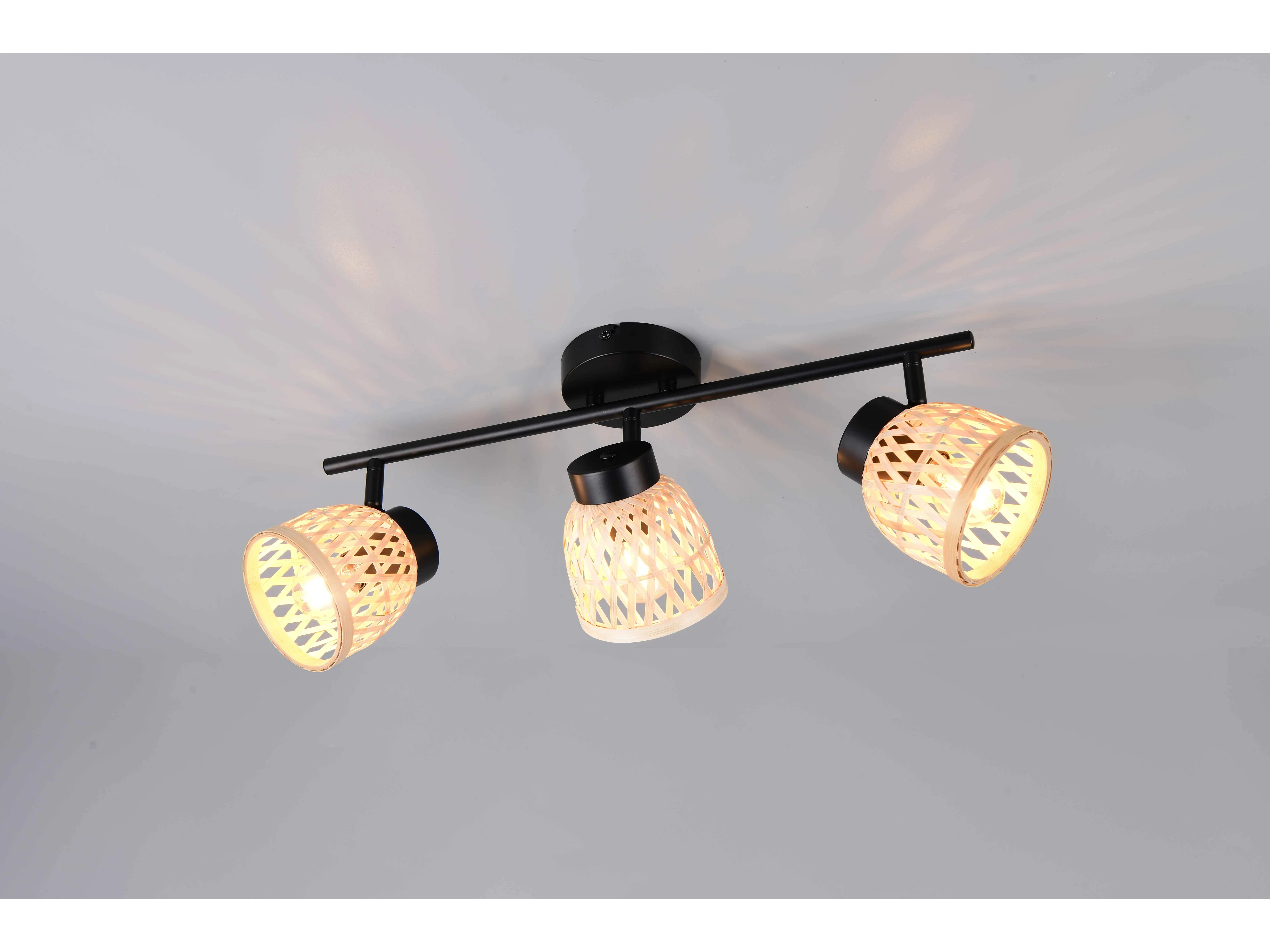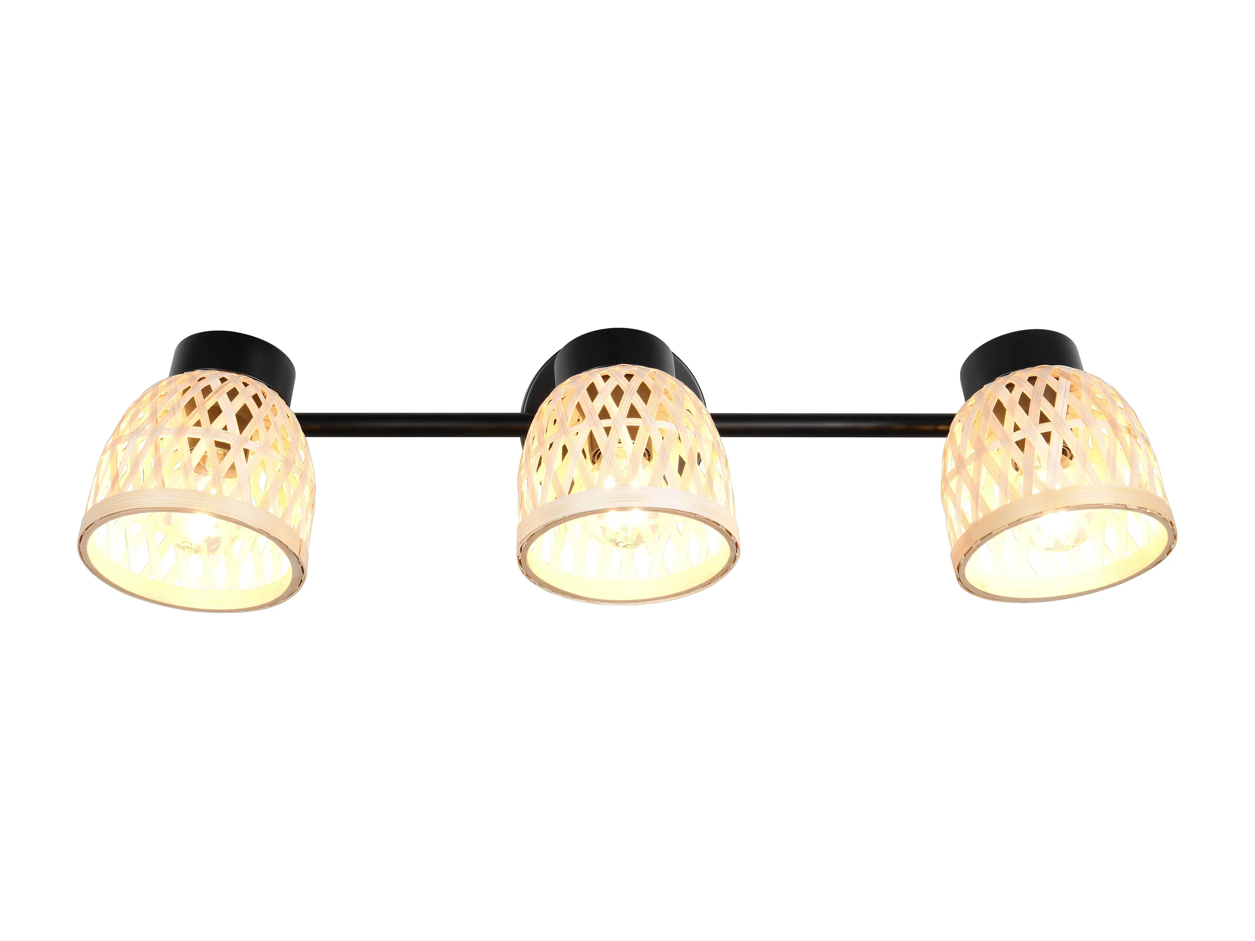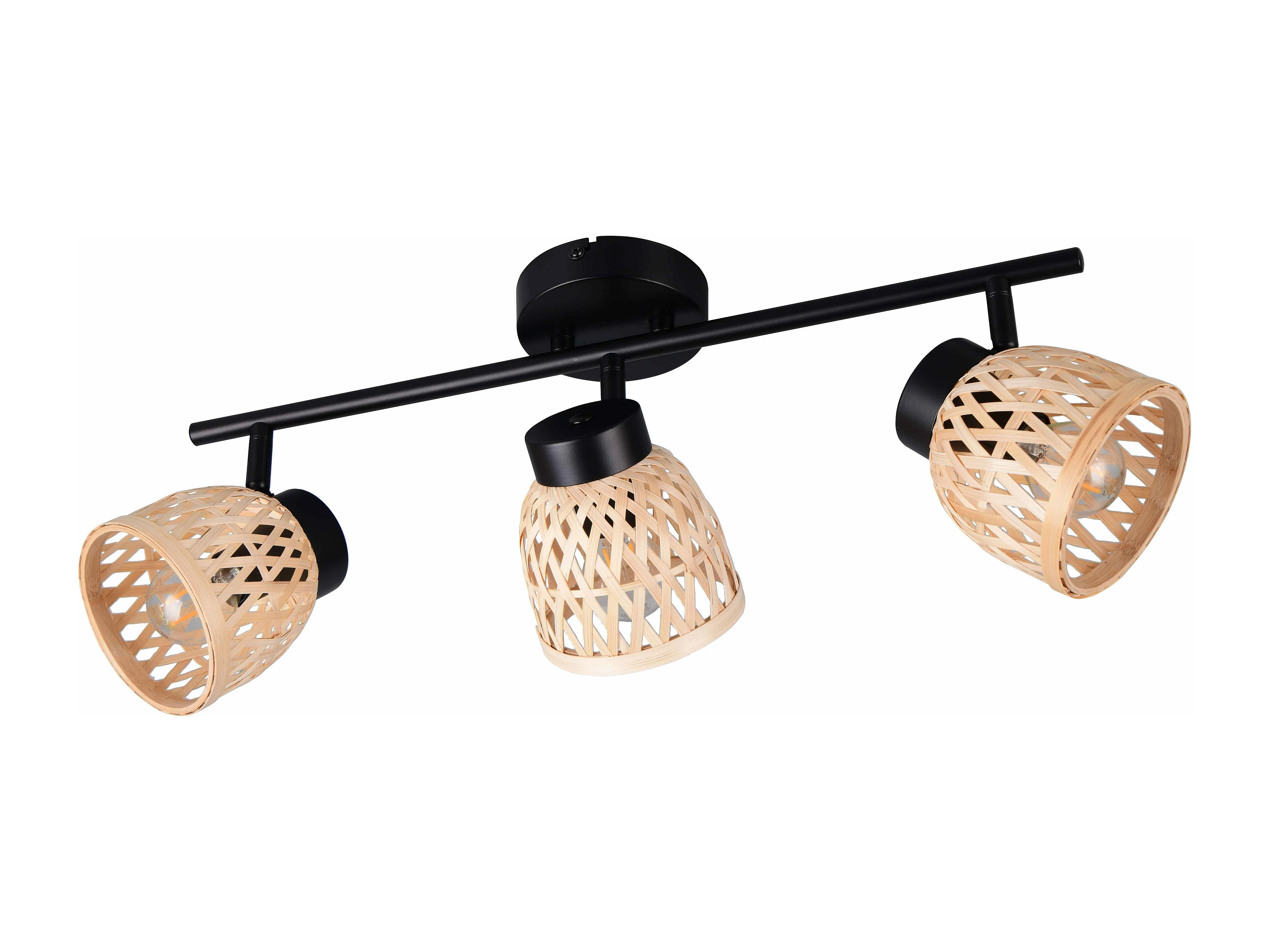 Barra 3 spots, bambù e metallo, naturale e nero, L 60 cm, Laurent