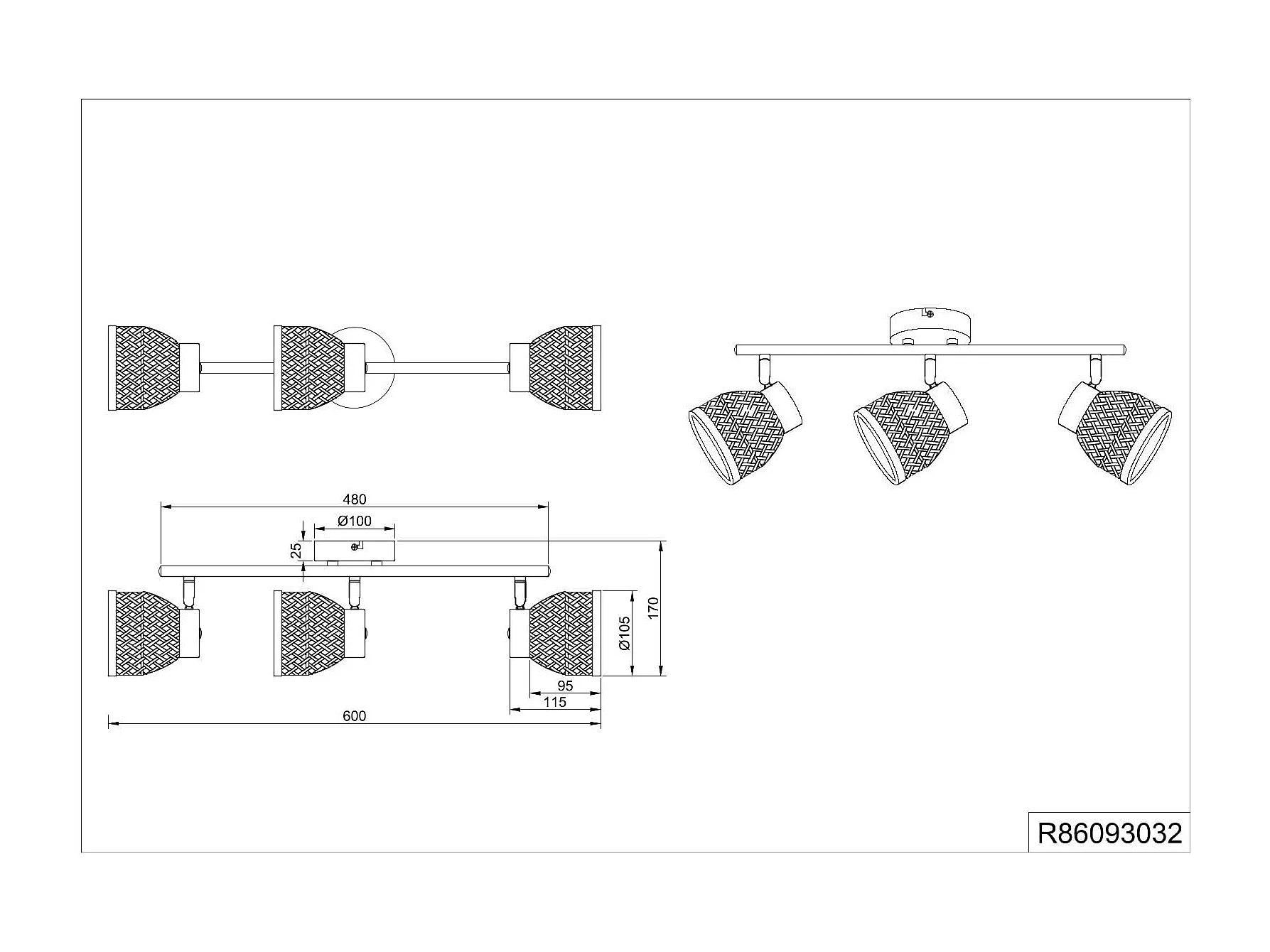 Plafoniera 3 spots, metallo, nero e caffè, D 30 cm, Gillan