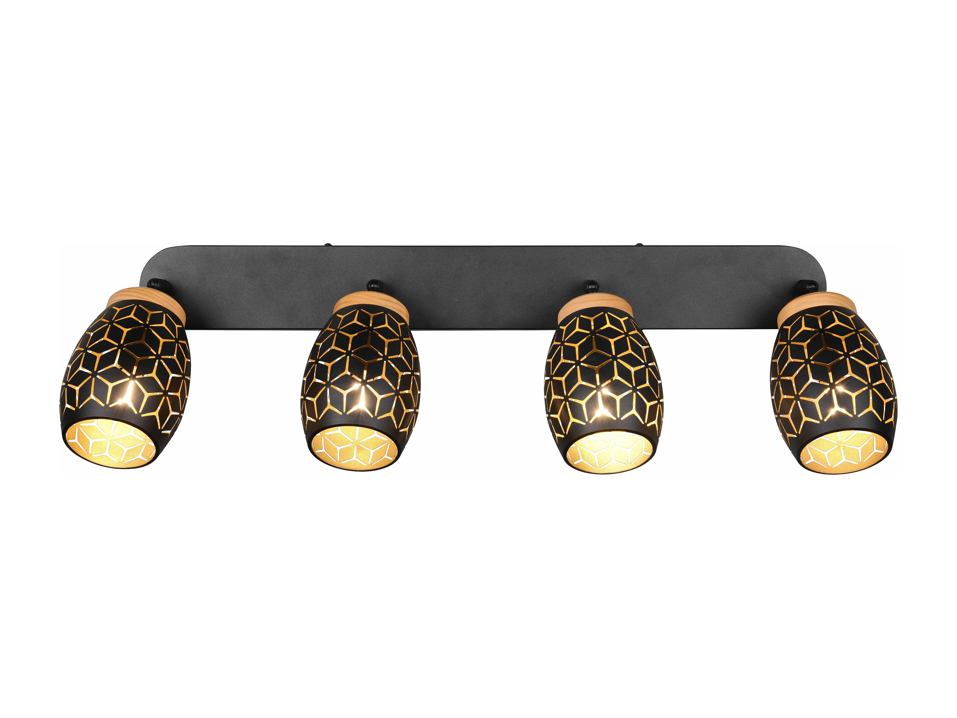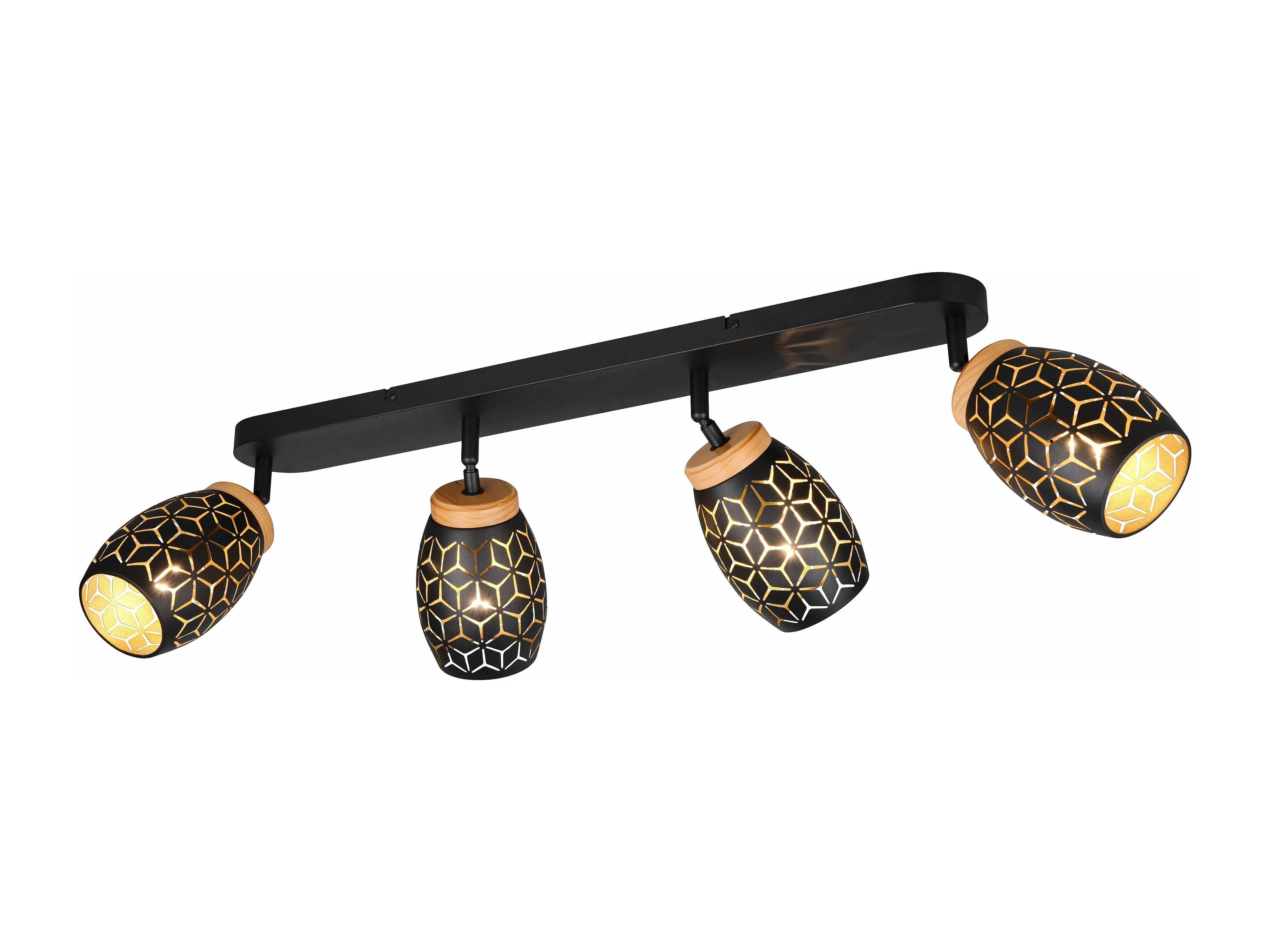 Barra 4 spots, metallo e legno, nero e oro, L 72 cm, Valentin