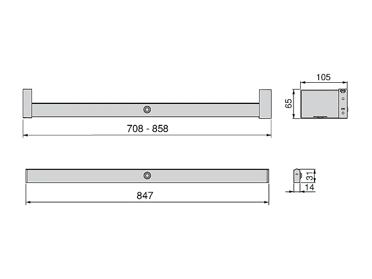 Barra appendiabili per armadi Castor con luce LED, batteria rimovibile e sensore di movimento, 1.008, Anodizzato opaco.
