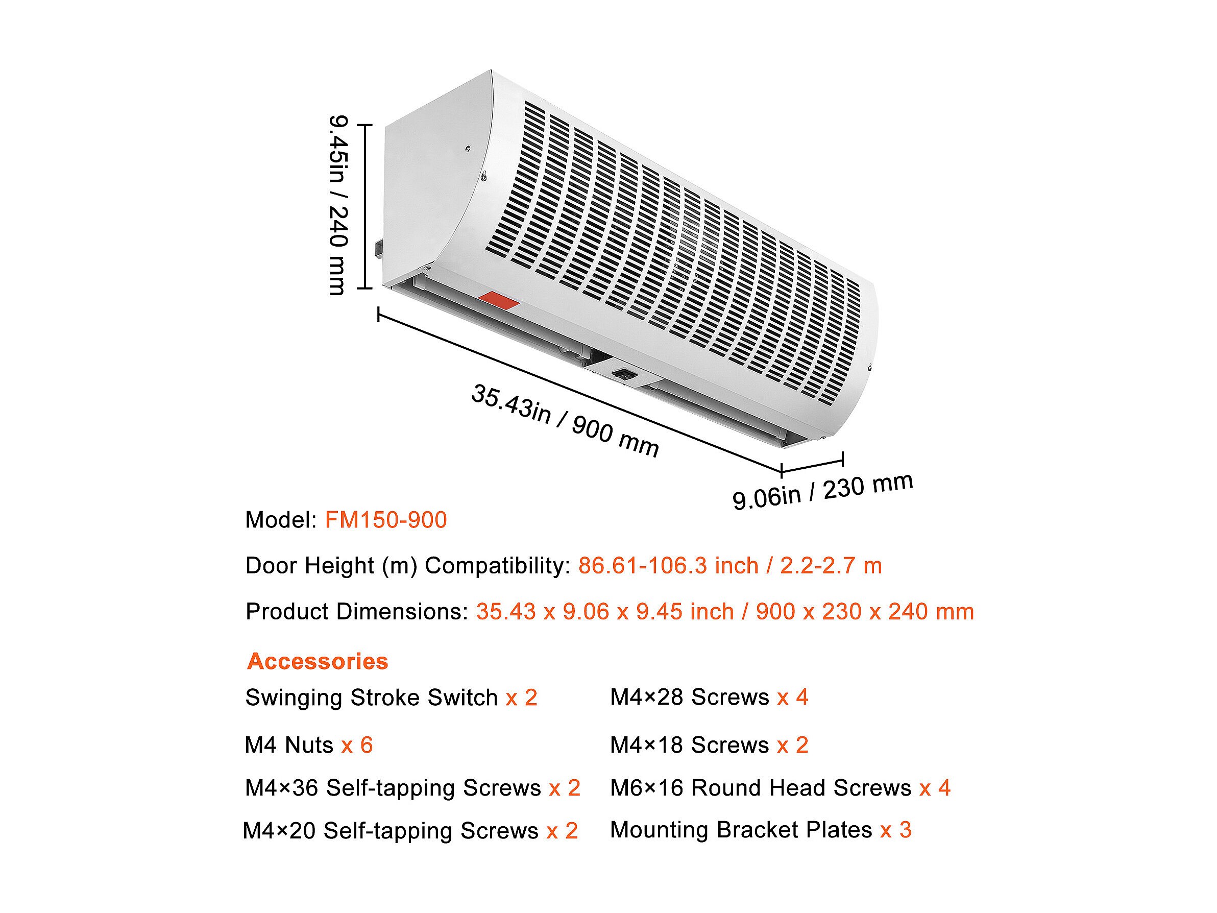 Barriera d'Aria Interna Commerciale SucceBuy, 0,9 m, 2038 m³/h, 2 Velocità, Certificata UL