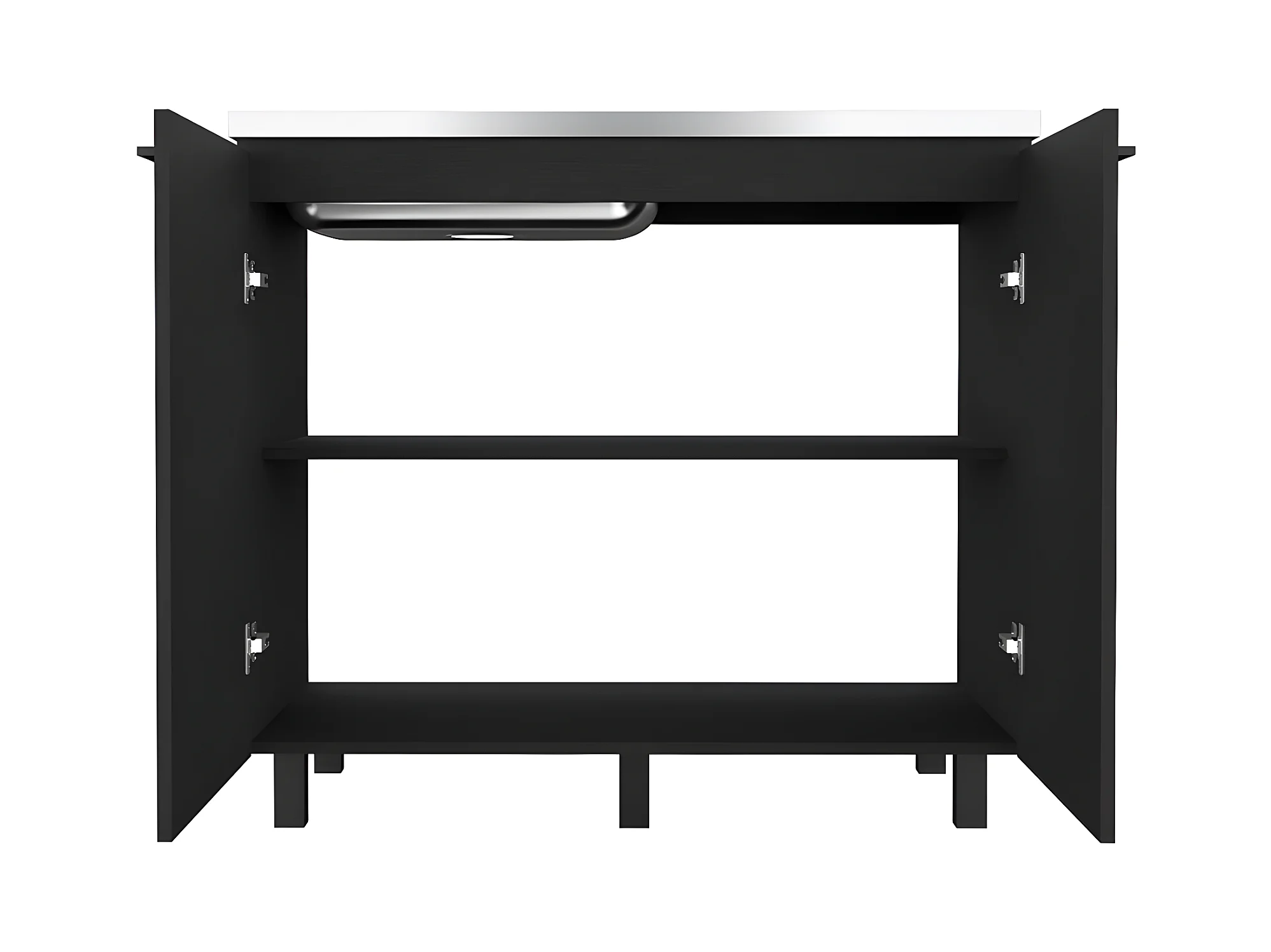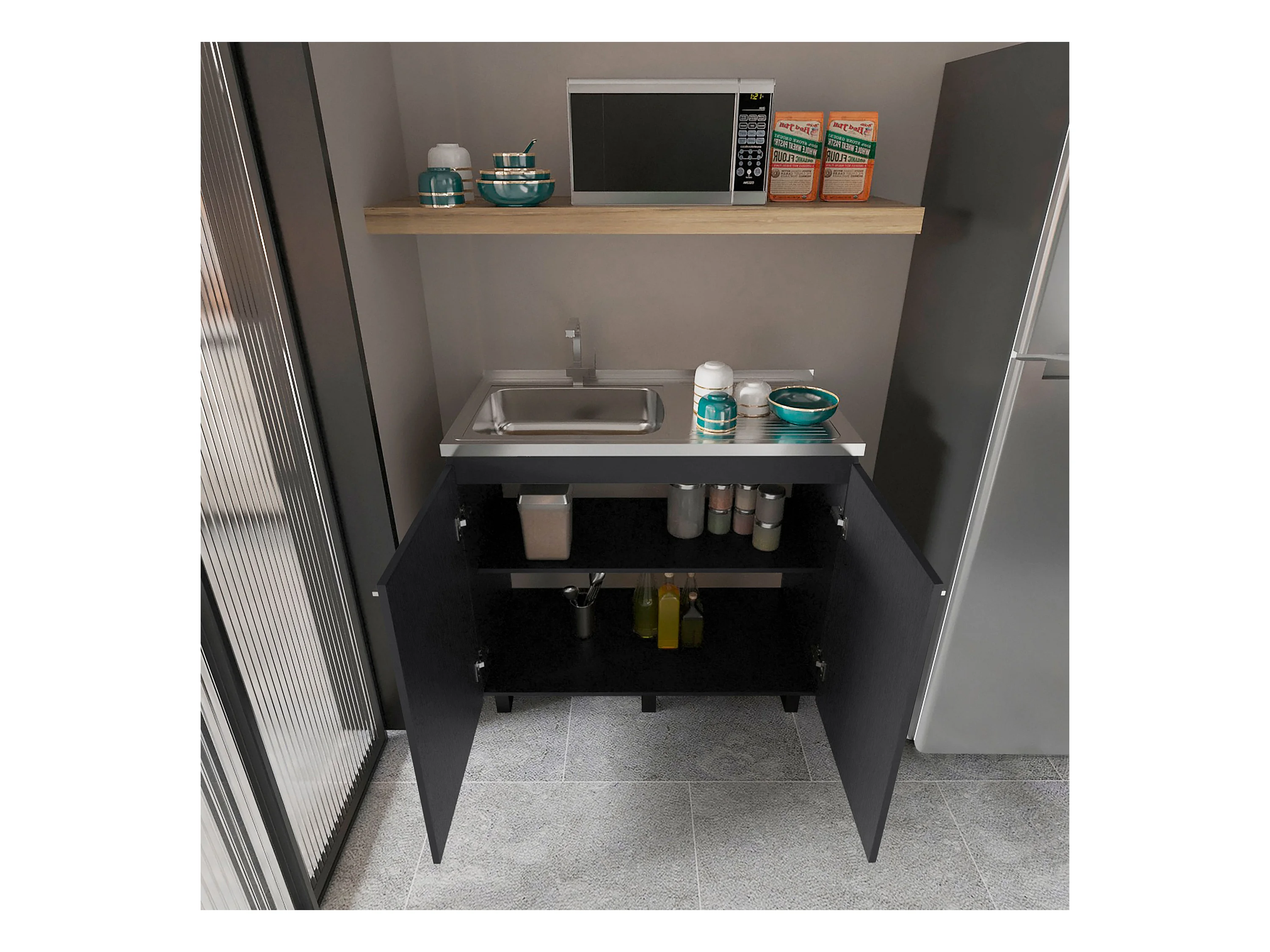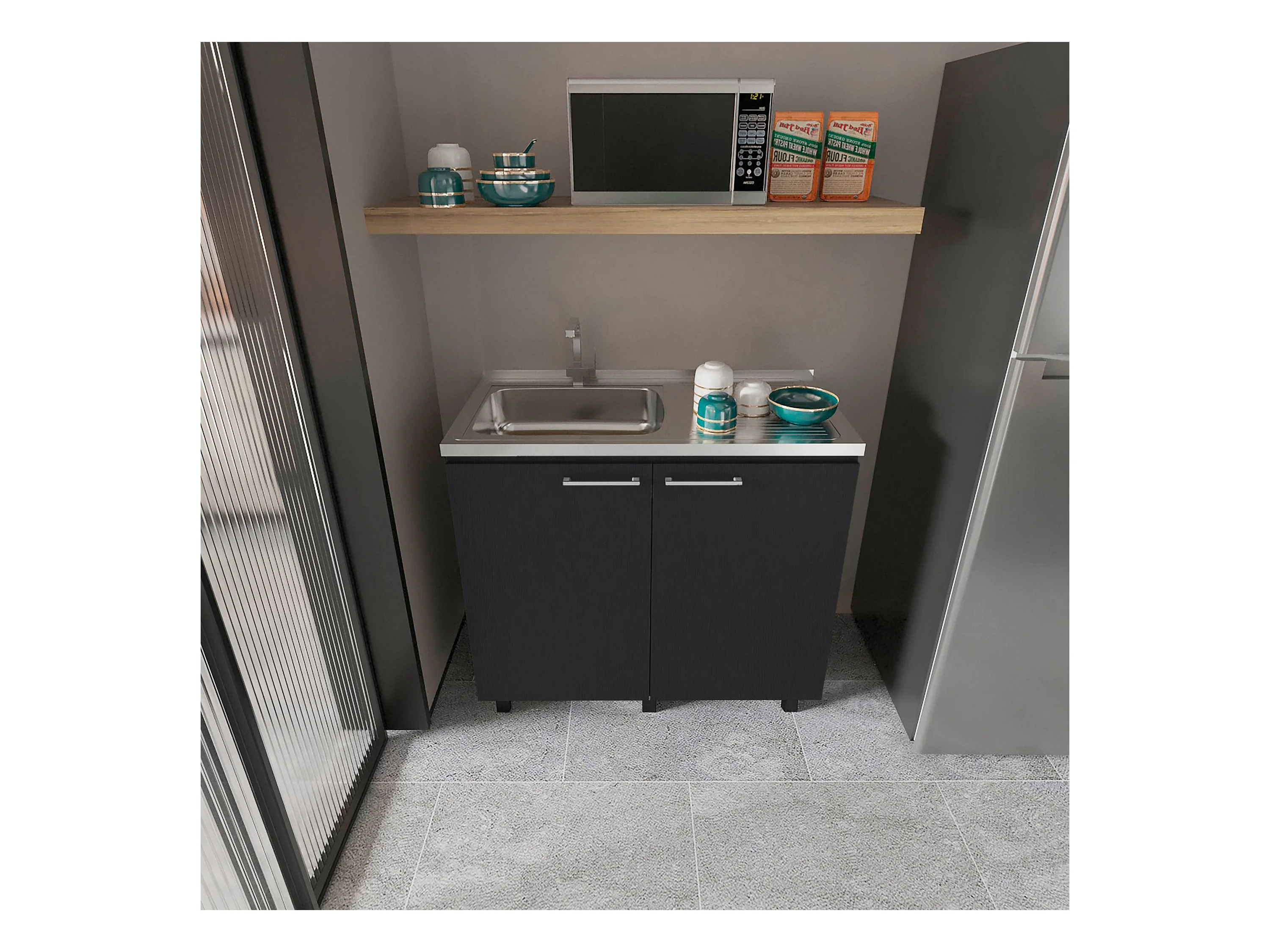 Base ausiliaria Napoles in melamina con piano in acciaio inox, 89 cm X 100 cm X 52.5 cm , Nero