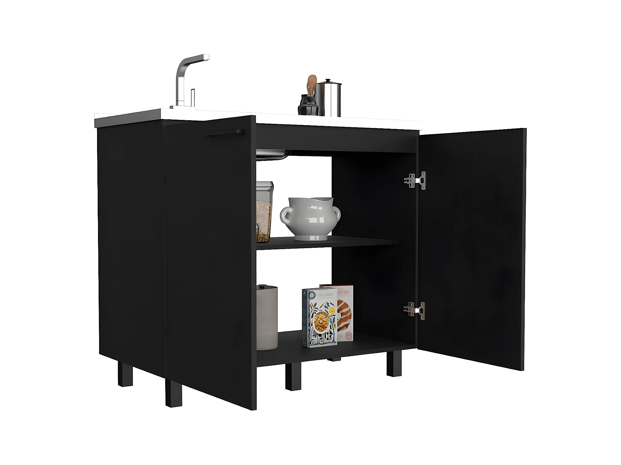 Pensile da cucina in melamina Paris con 4 armadi e 2 ripiani , 59.94 cm X 120 cm X 33.27 cm , Nero
