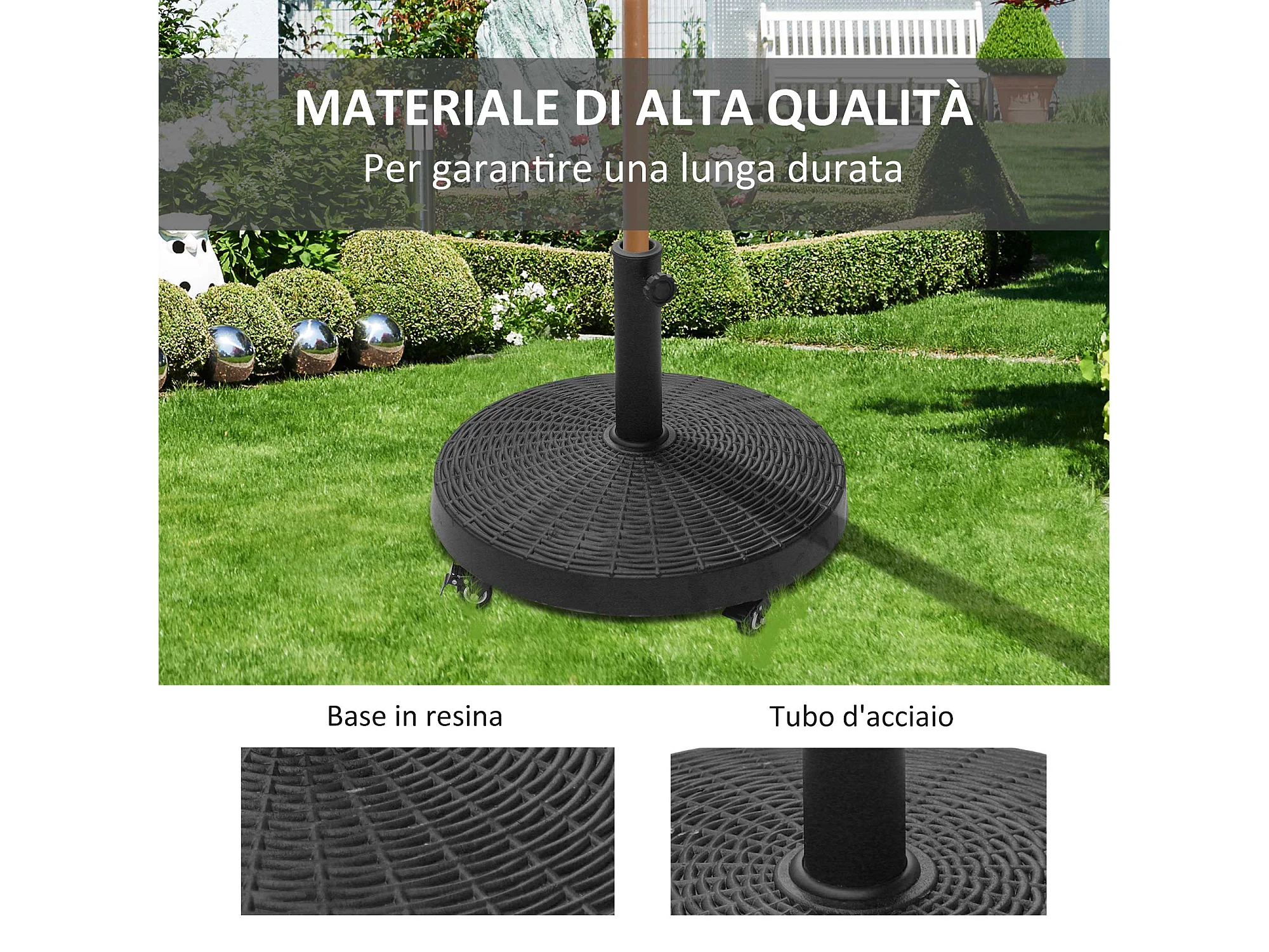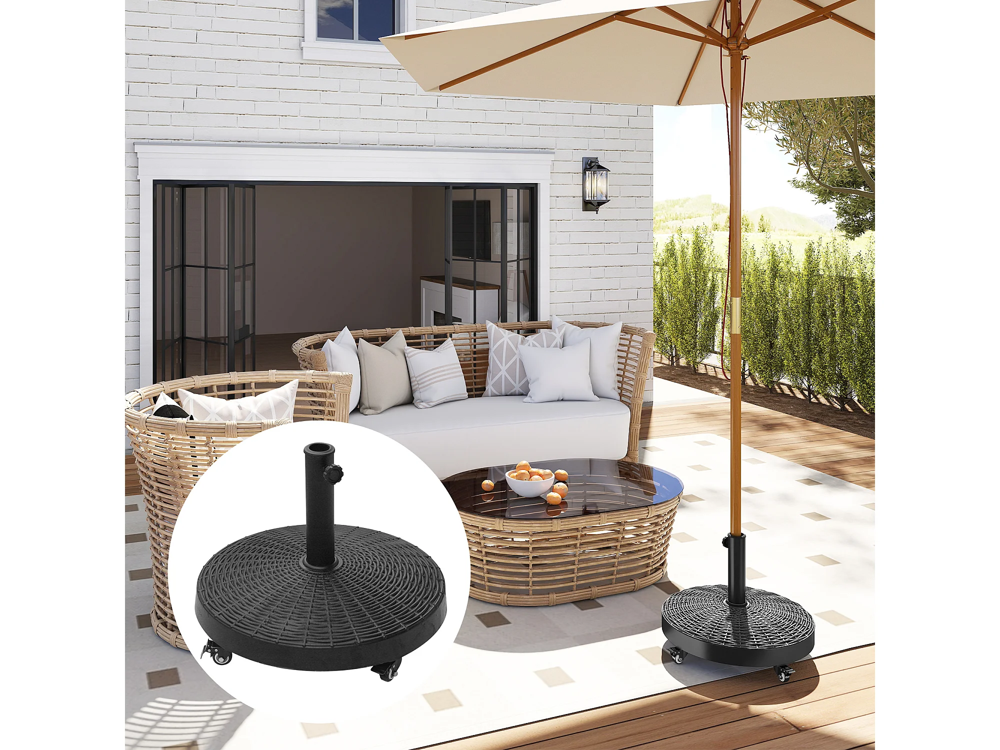 Base per Ombrellone da Giardino Rotonda a 4 Ruote con Freni