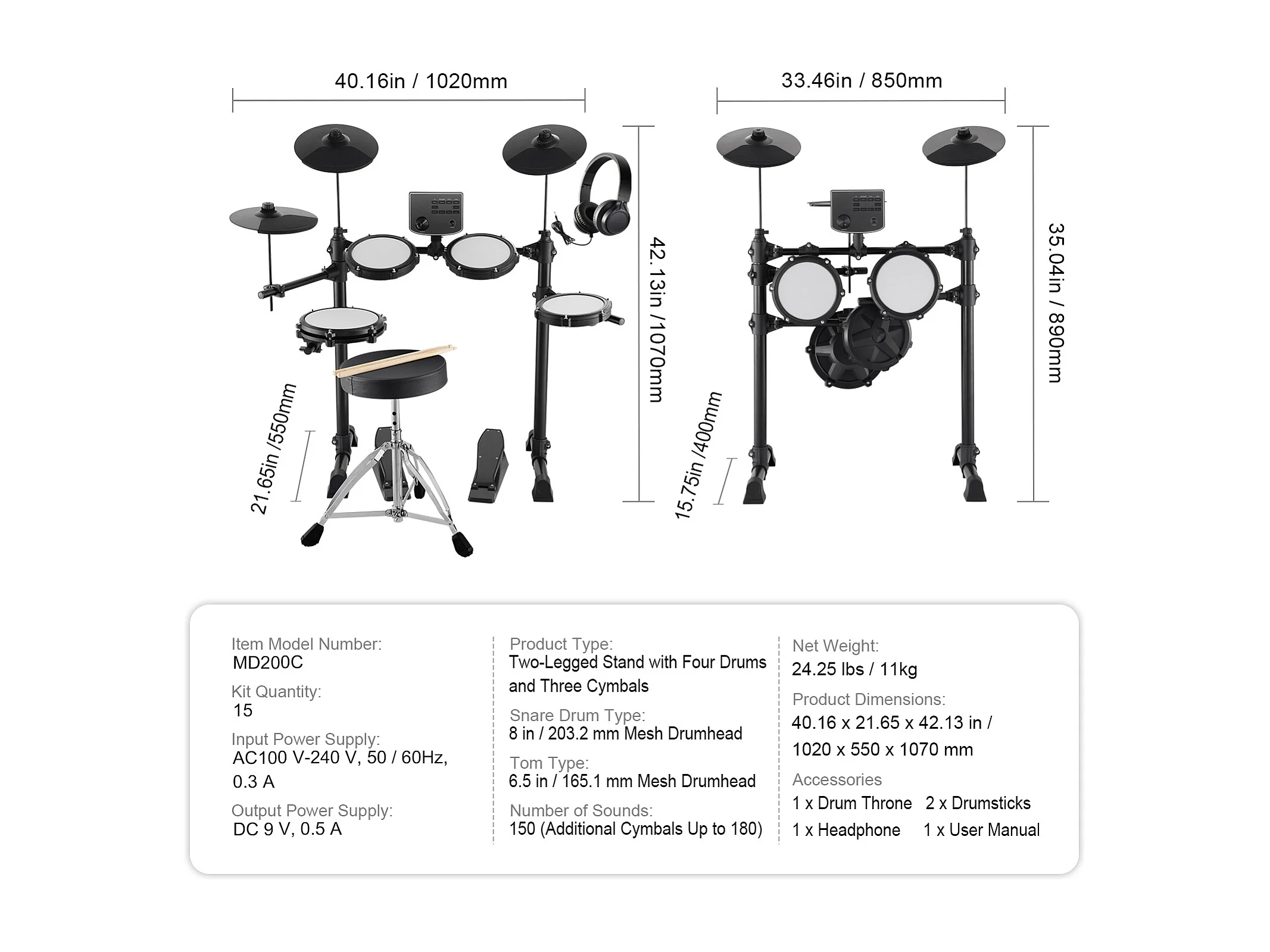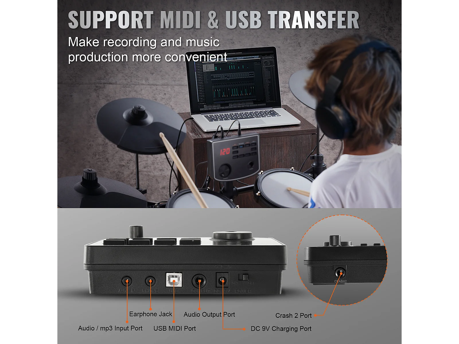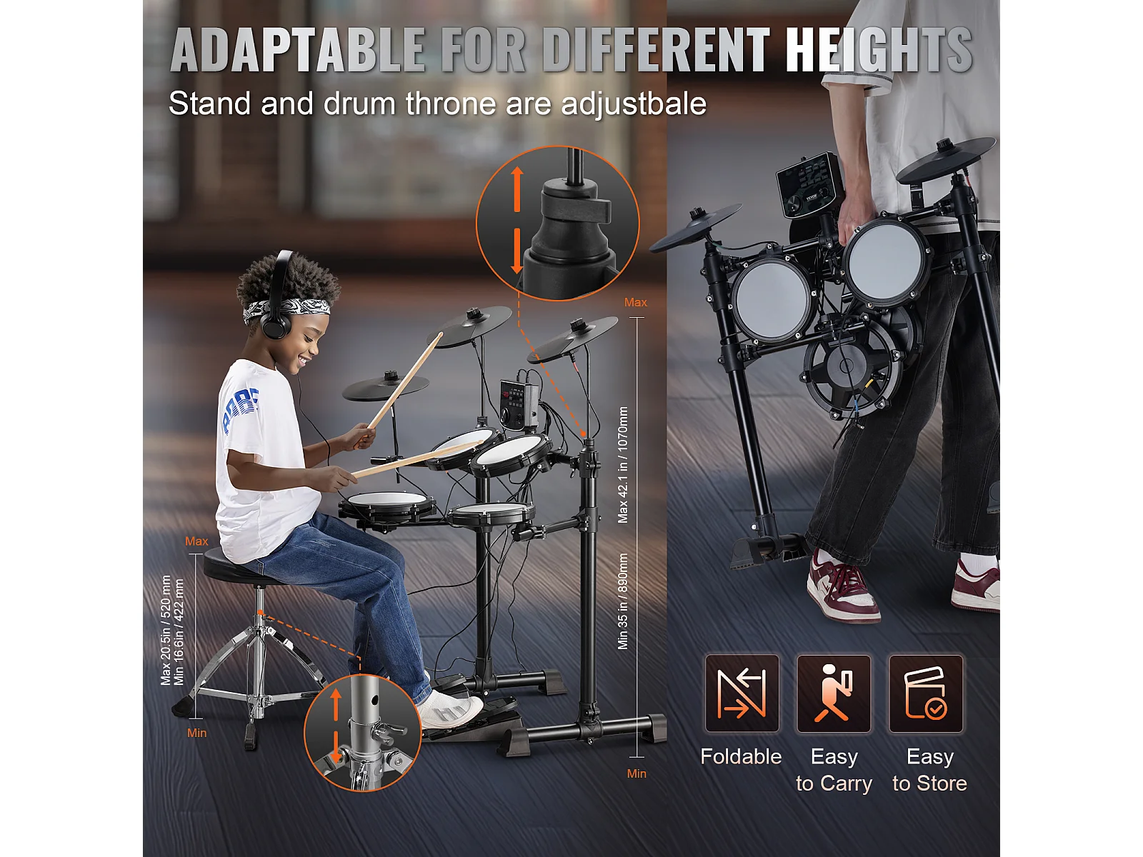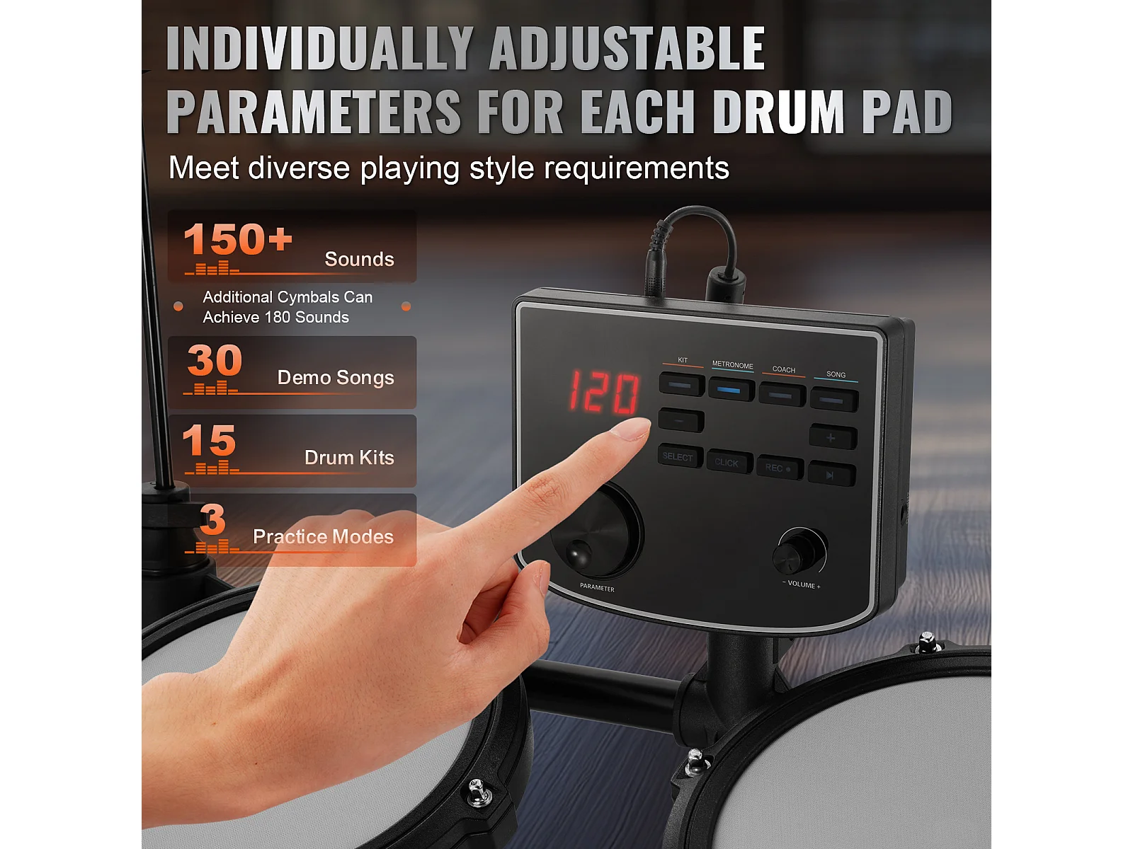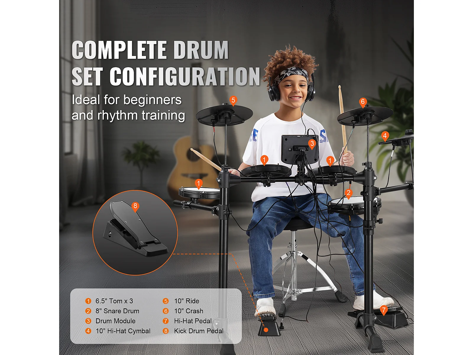 Batteria Elettrica SucceBuy, 15 Kit e 150 Suoni, Kit Elettronico per Principianti e Adulti, Bacchette e Cuffie, per Principianti e Adulti