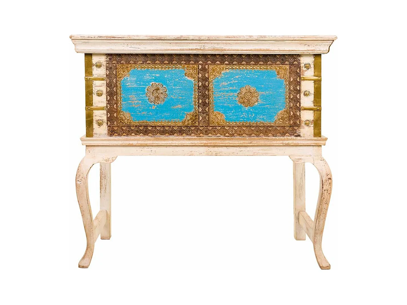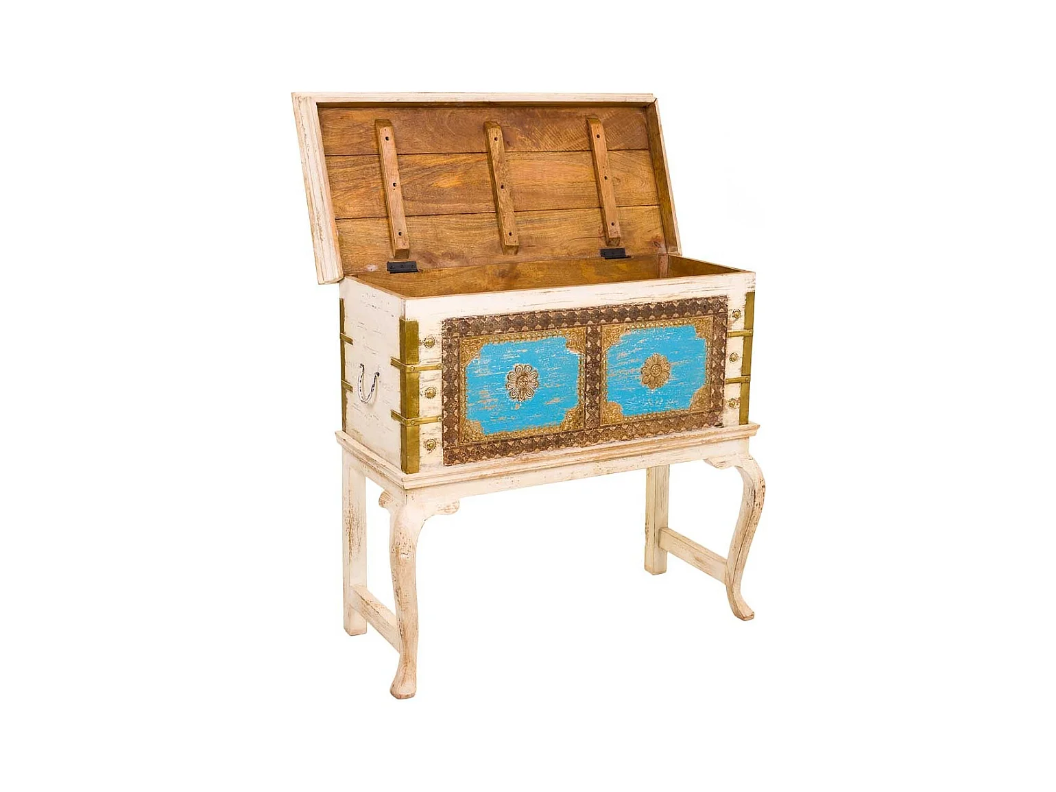Baule in legno di mango nero invecchiato con dettagli blu. Multicolor .45x40x80 Giner y Colomer