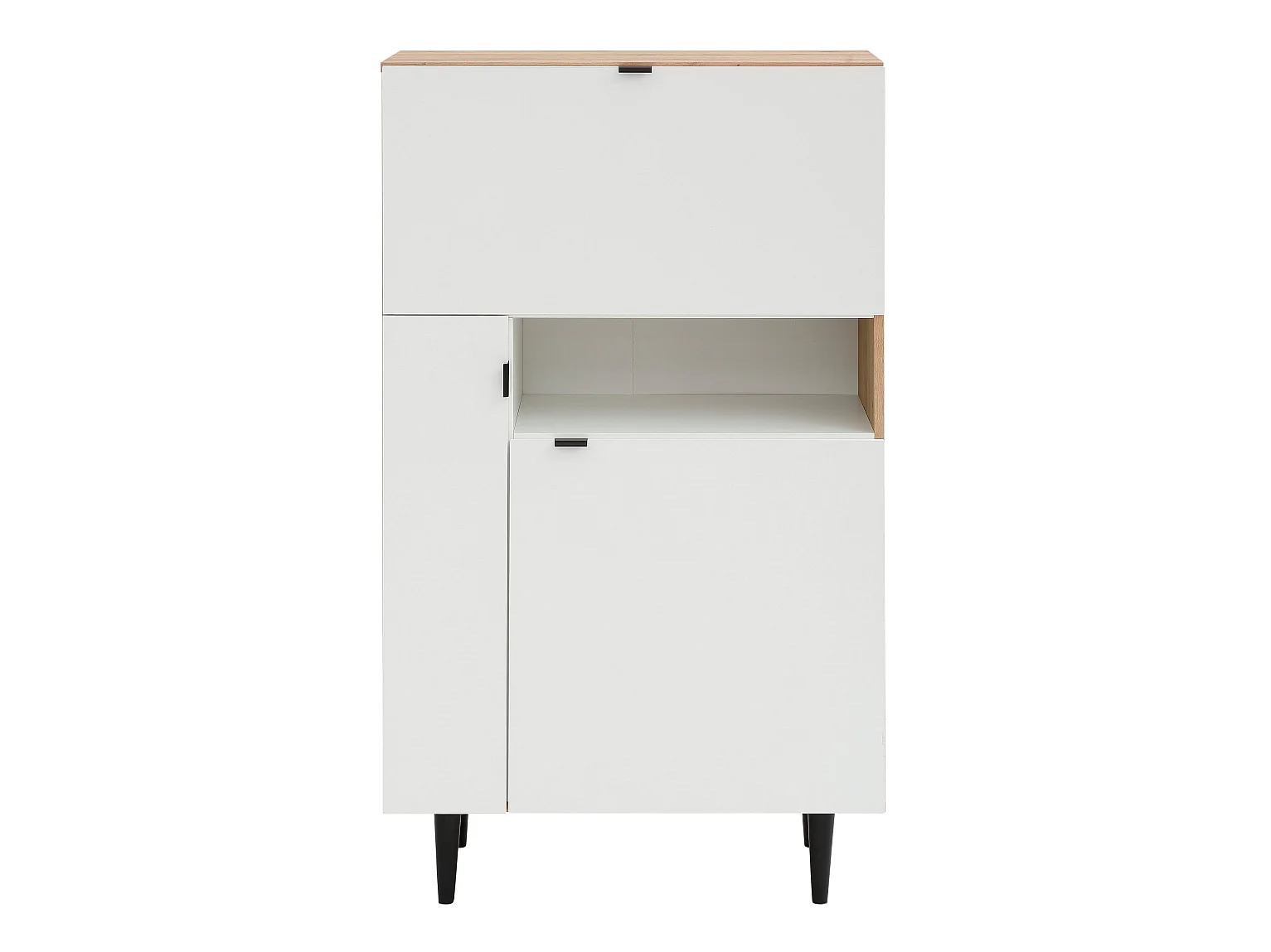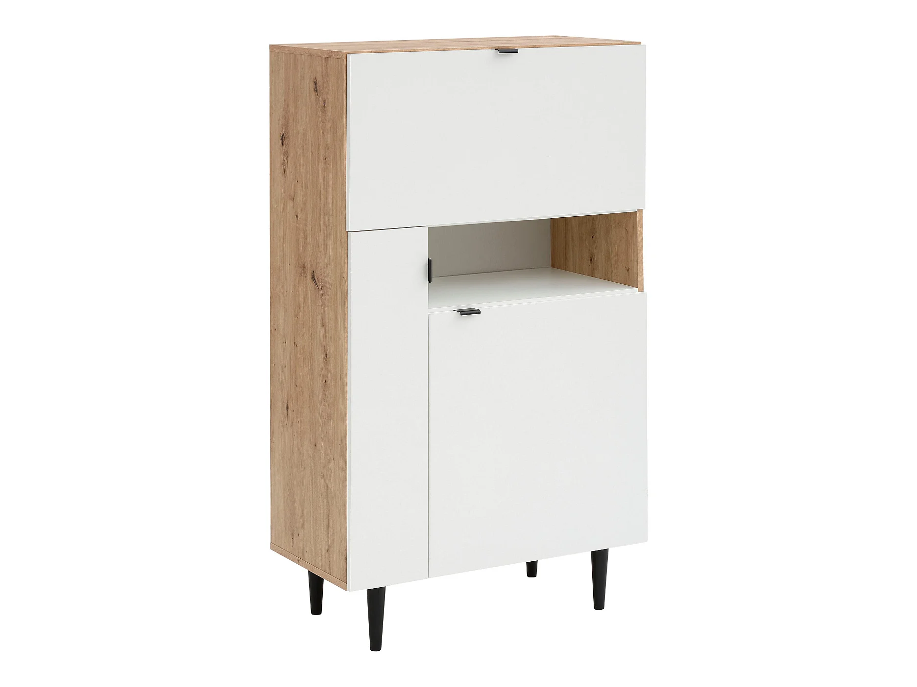 Credenza Spino, Buffet dispensa da soggiorno, Madia da salotto moderna a 4 ante, 80x40h191 cm, Bianco e Rovere