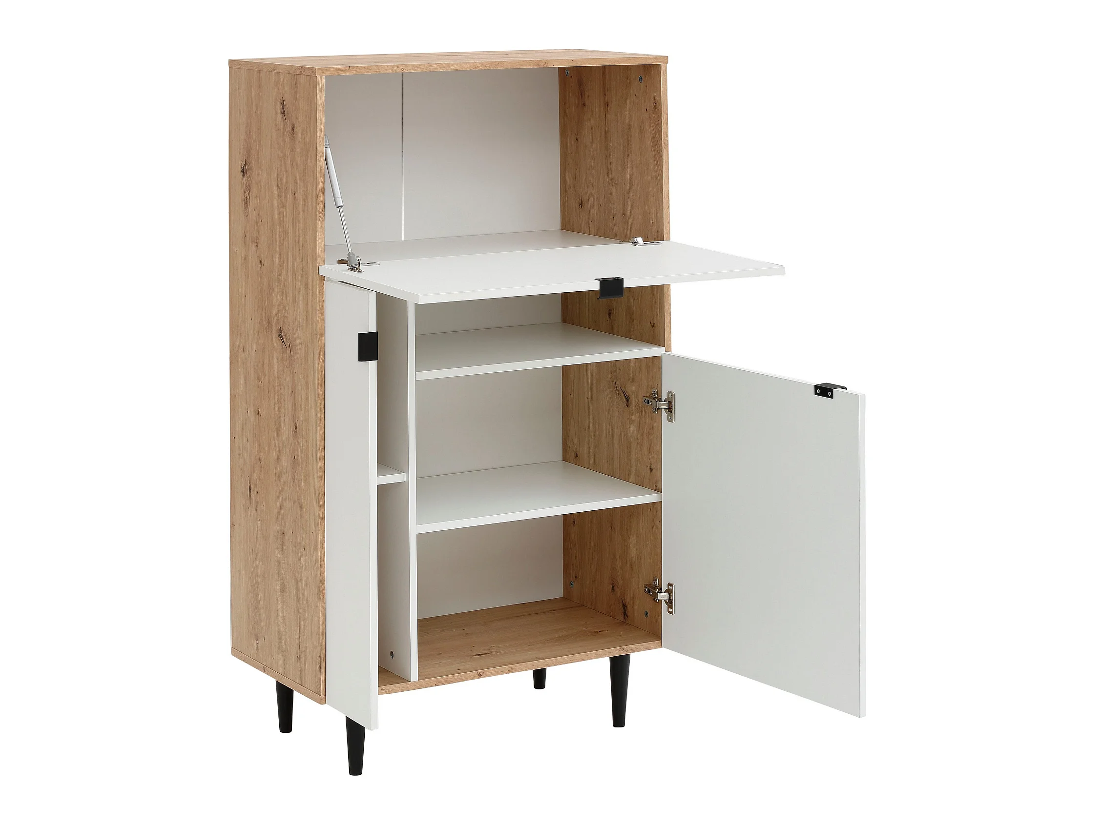 Credenza Varatella, Buffet dispensa da soggiorno, Madia da salotto moderna a 2 ante, 80x40h102 cm, Bianco e Rovere