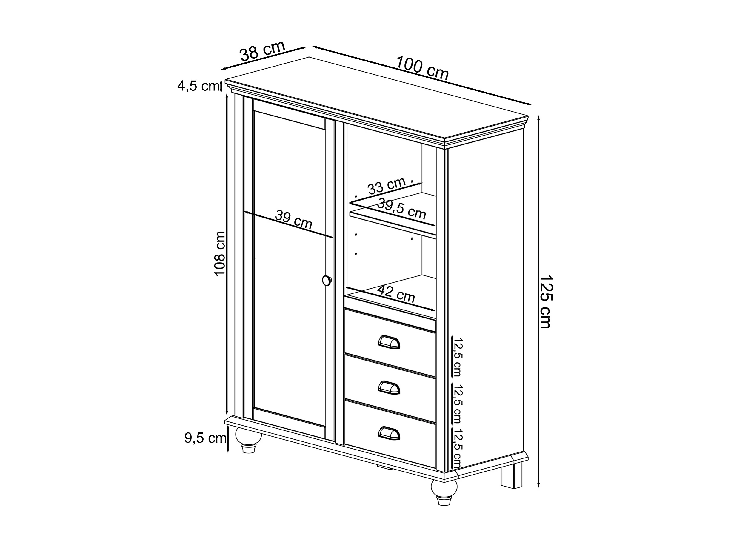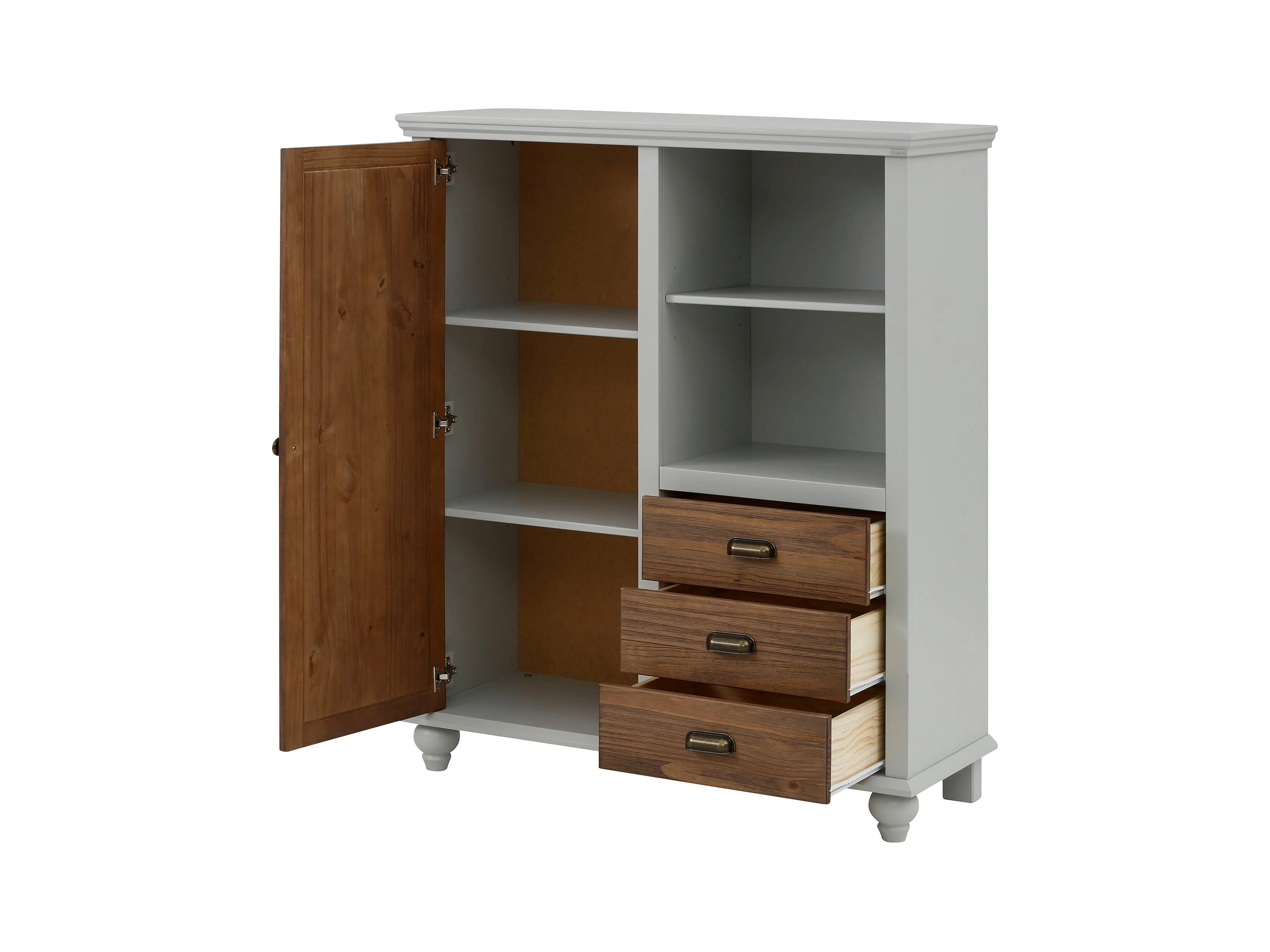 Hanna | Credenza con un'anta e tre cassetti in legno di colore grigio/naturale