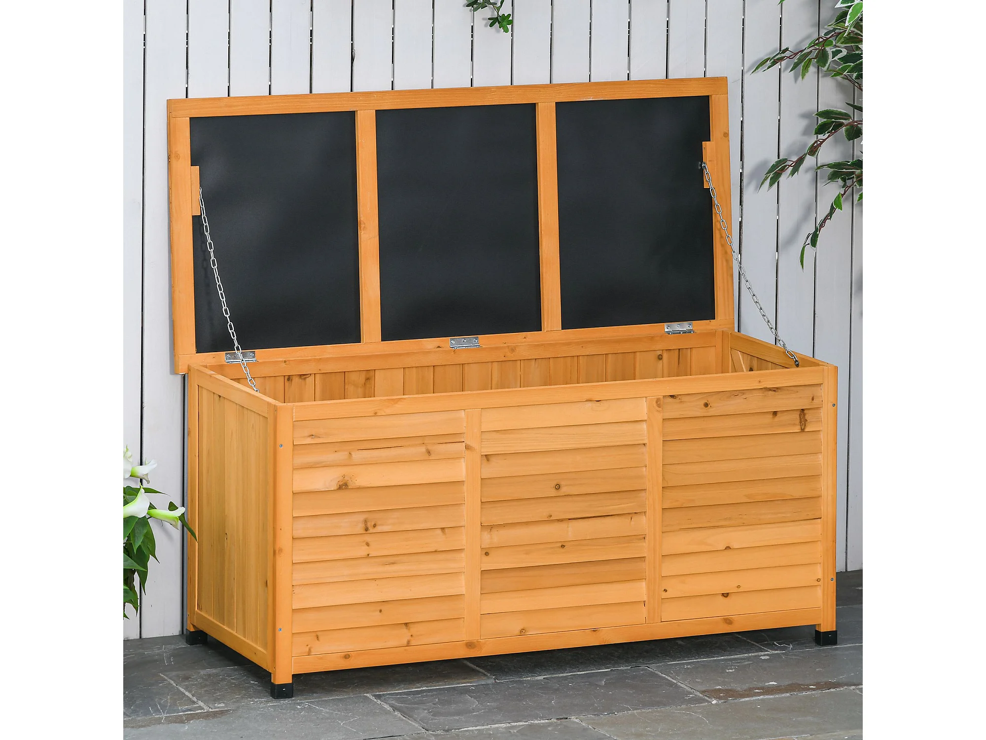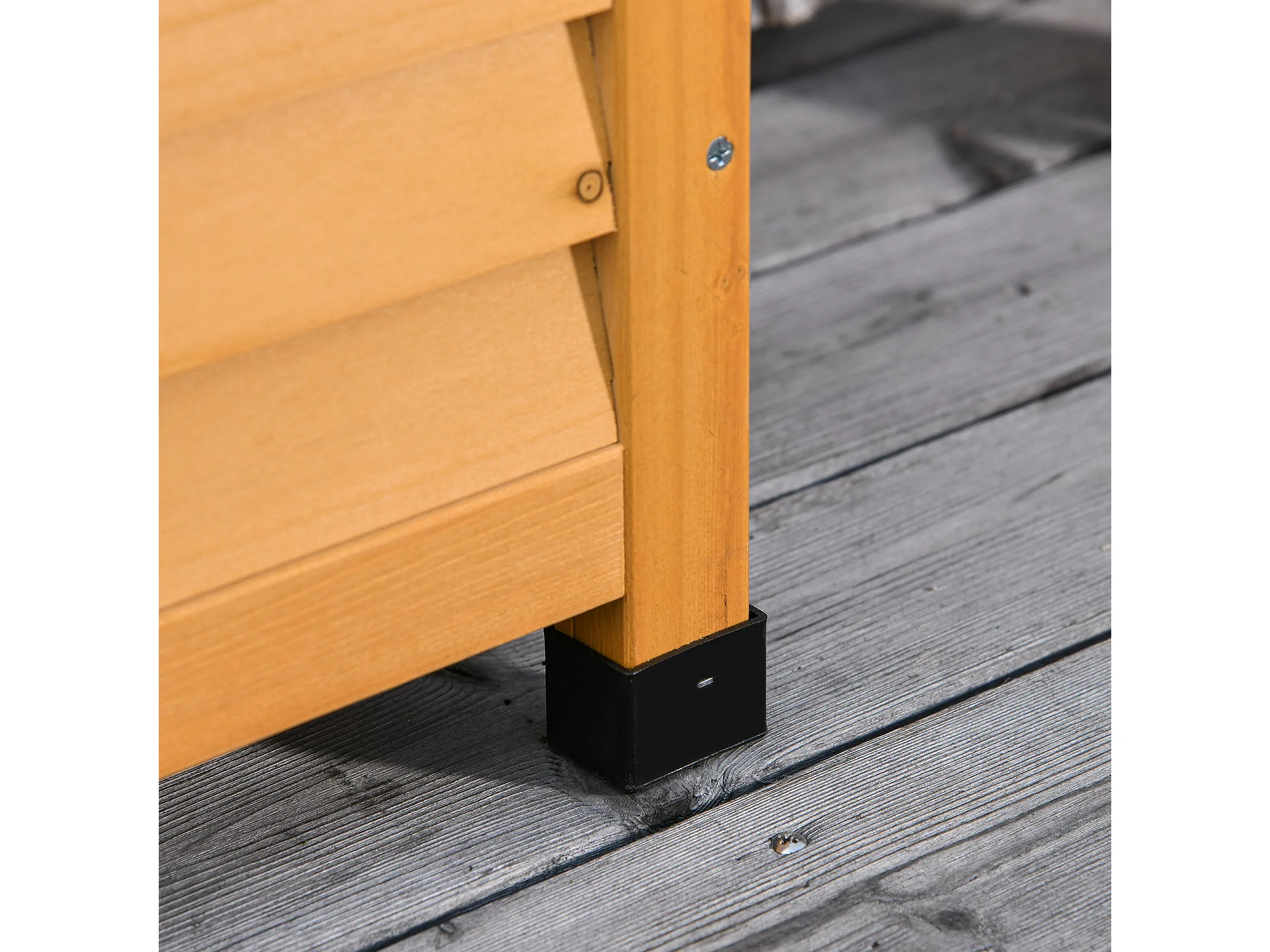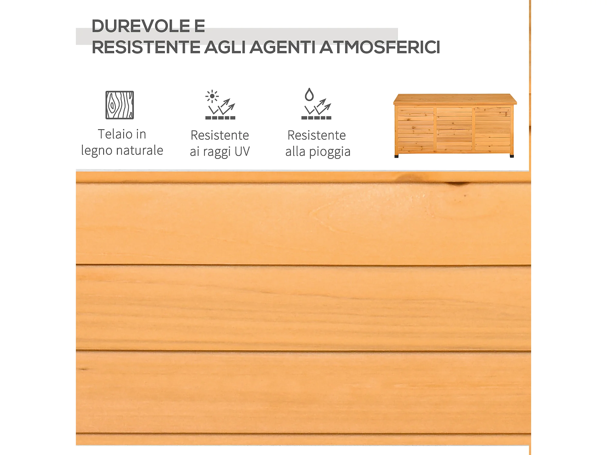 Baule da esterno con base rialzata in legno giallo scuro