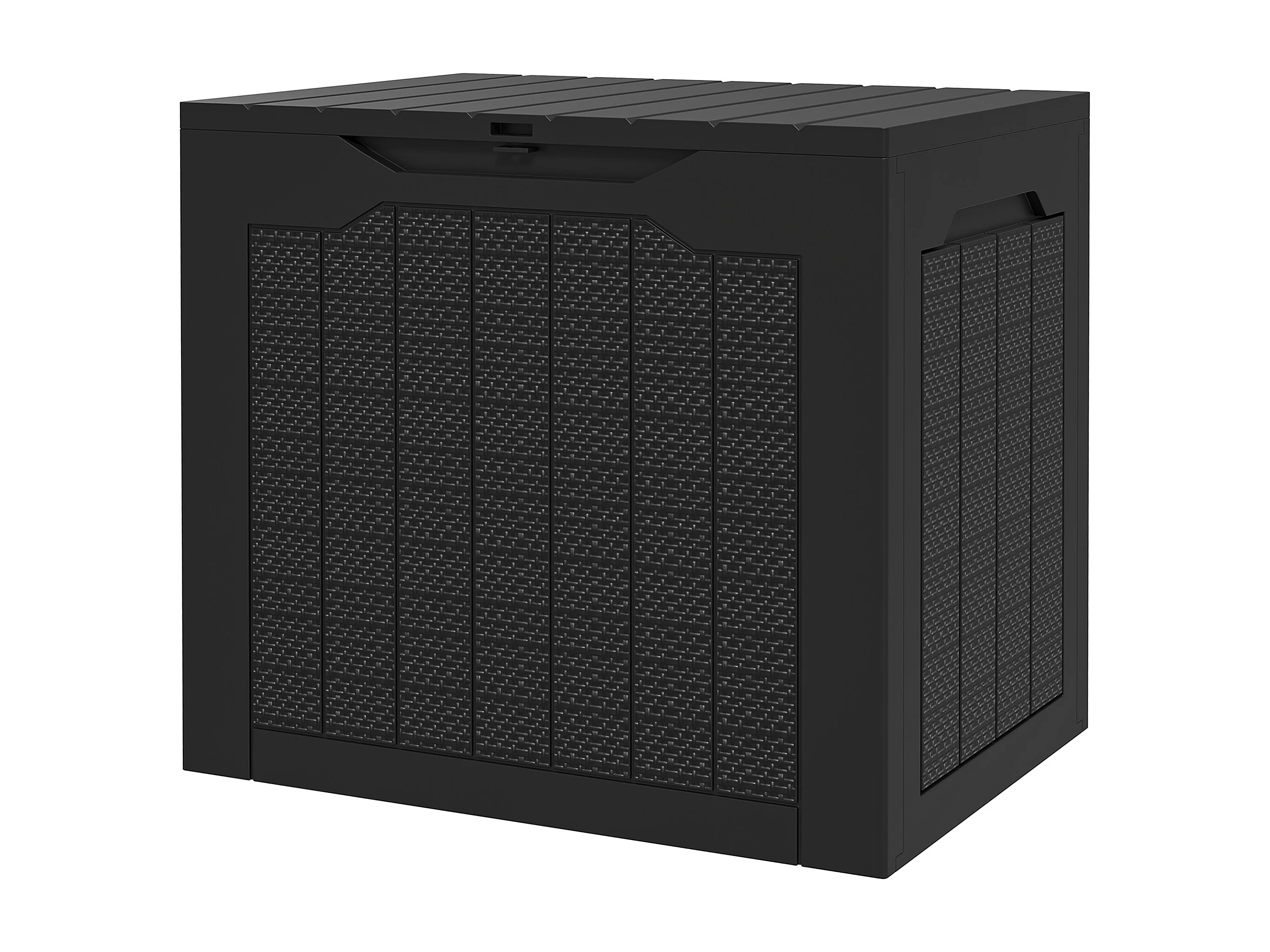 Baule da giardino da 366 litri effetto legno in plastica nero