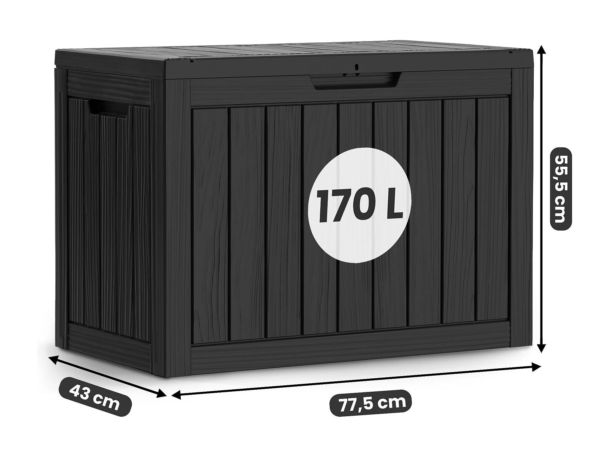 Baule da giardino impermeabile 170L contenitore esterno balcone terrazzo in plastica polipropilene nero