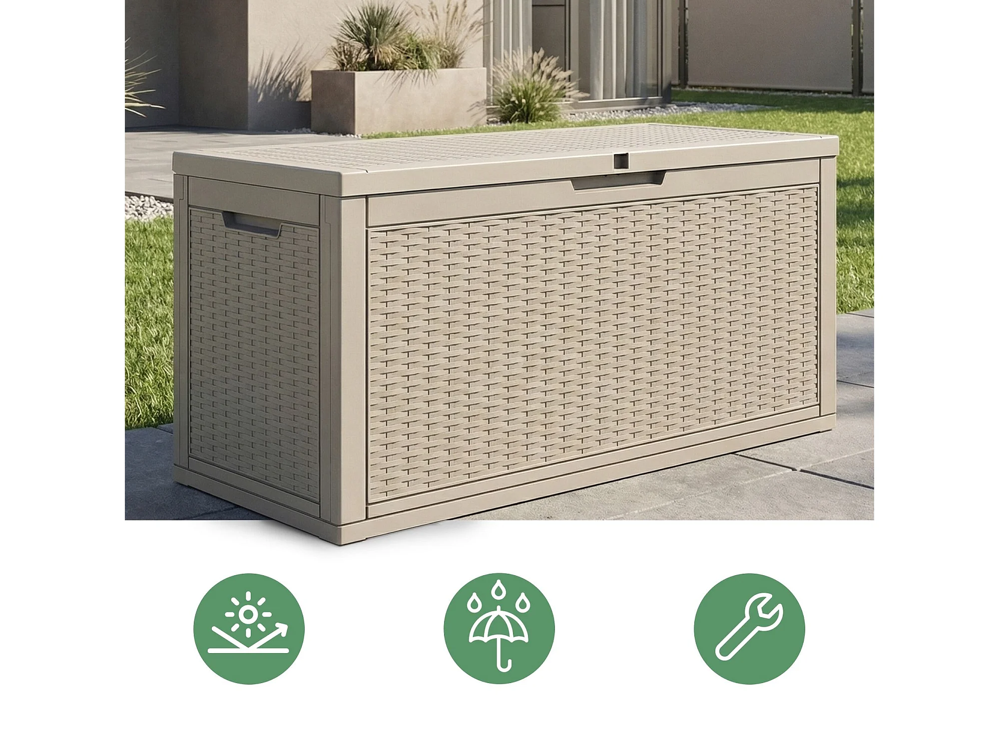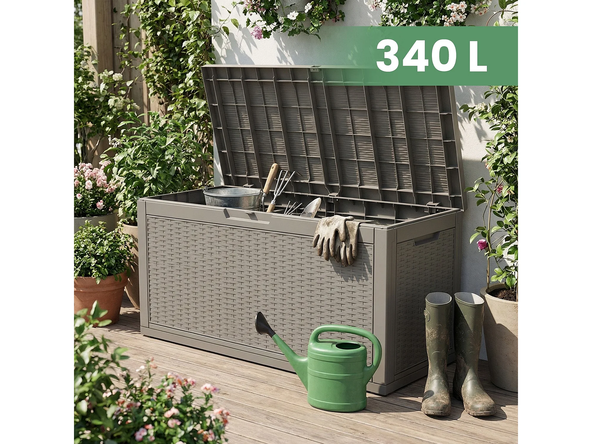 Baule da giardino impermeabile 340L contenitore esterno balcone terrazzo in plastica polipropilene grigio