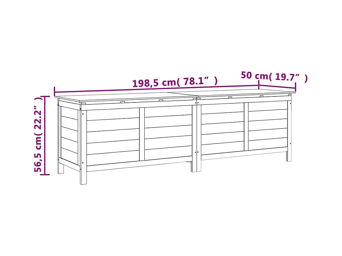 Box portaoggetti da giardino 198,5x50x56,5 cm in legno massello di abete