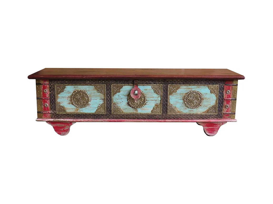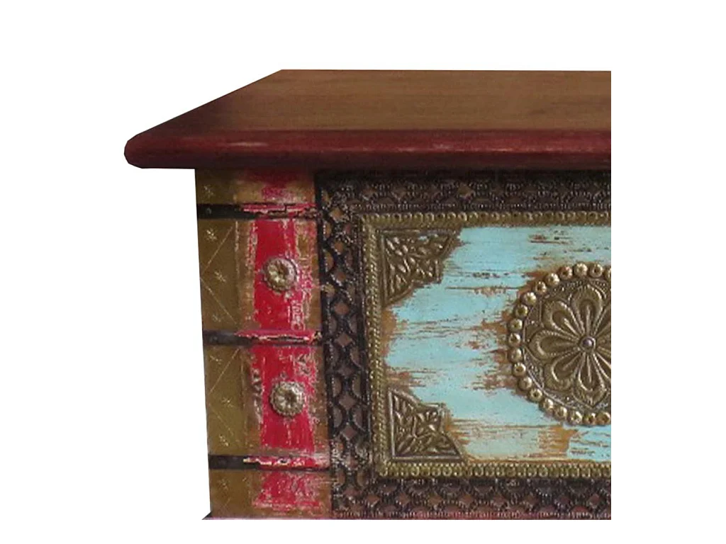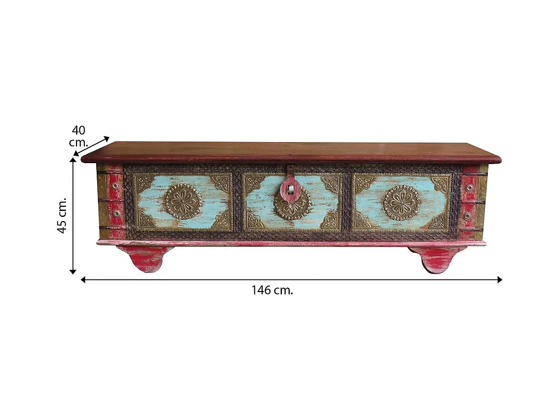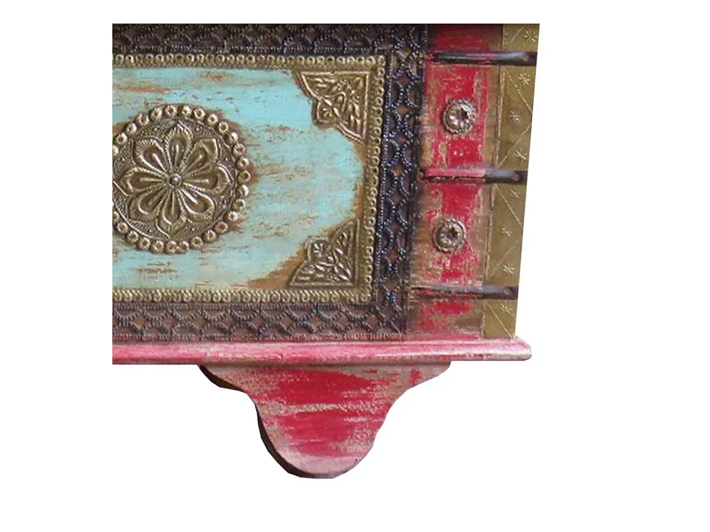 Baule in legno di mango nero invecchiato con dettagli blu. Multicolor .45x40x80 Giner y Colomer