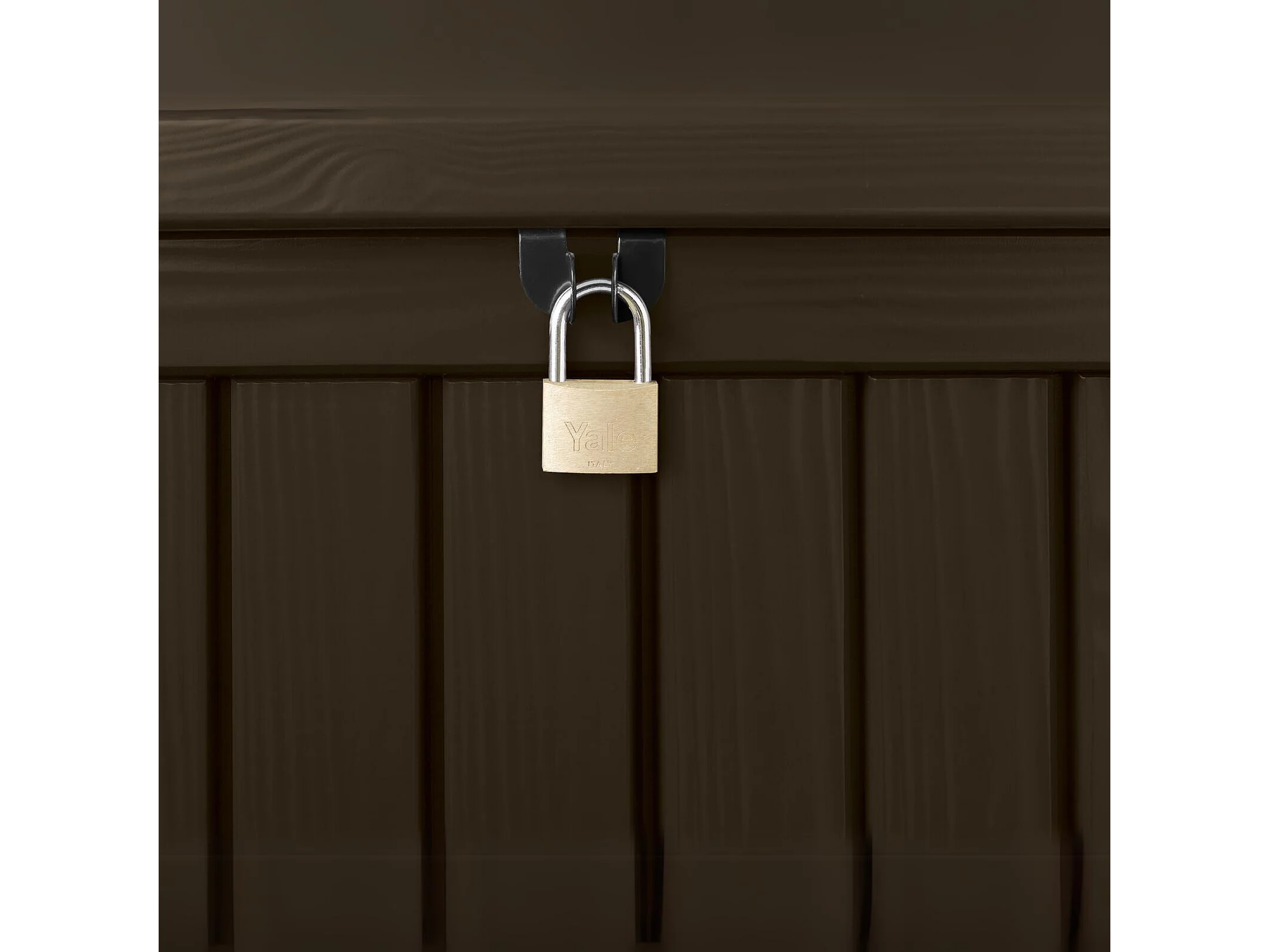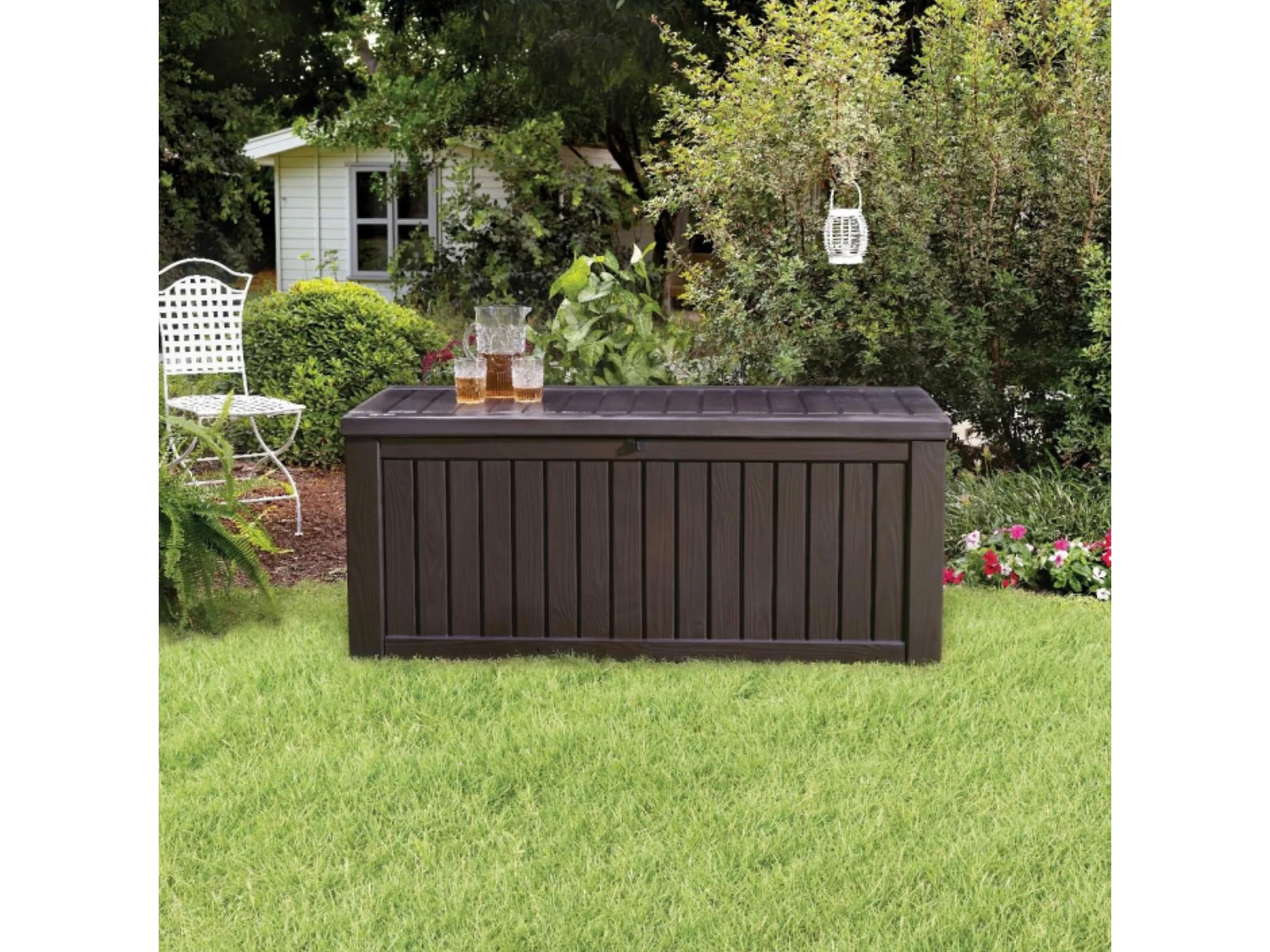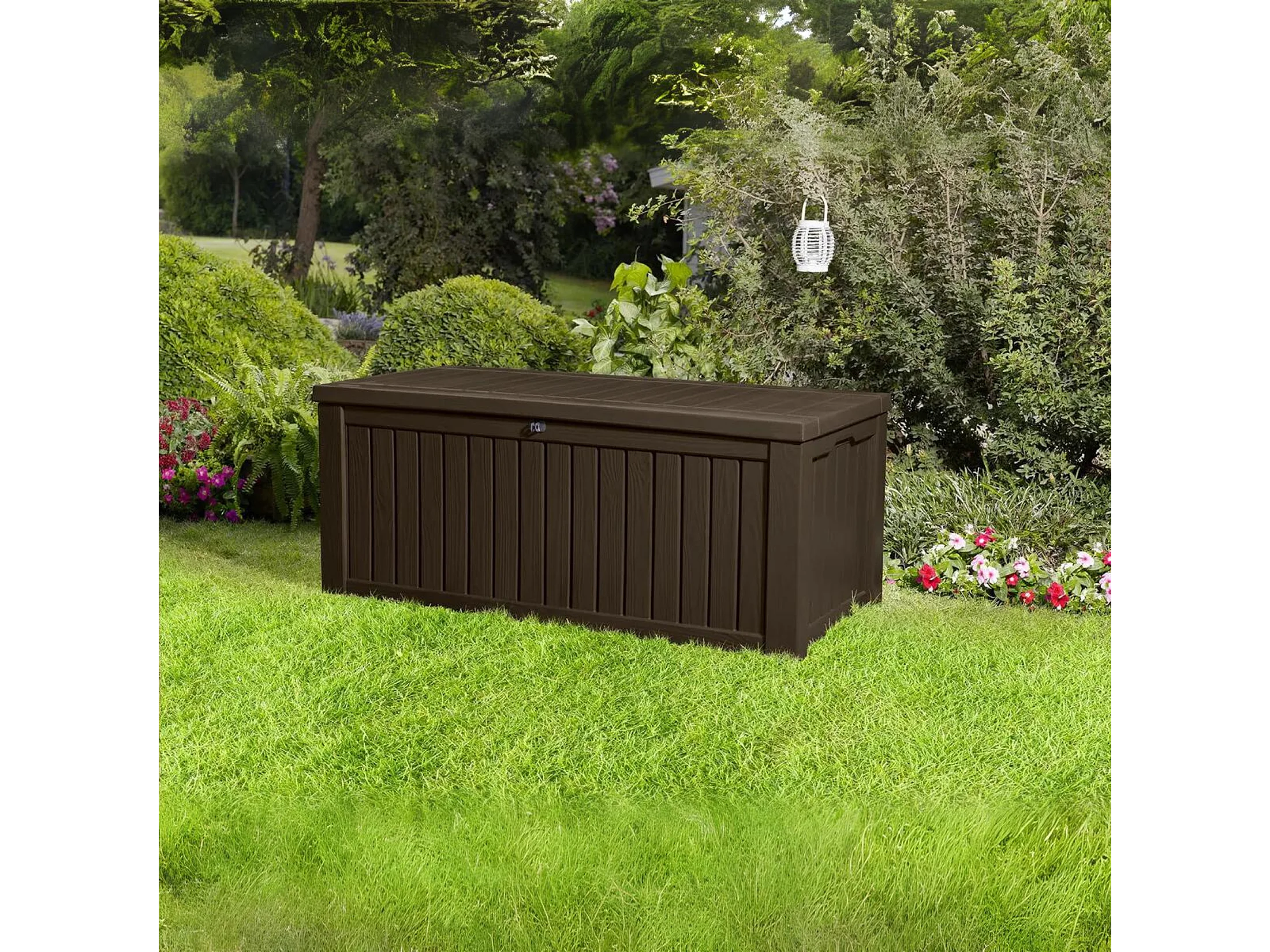 Baule in resina da esterno "Rock" effetto legno capiente cm 155x72,4 64,4h