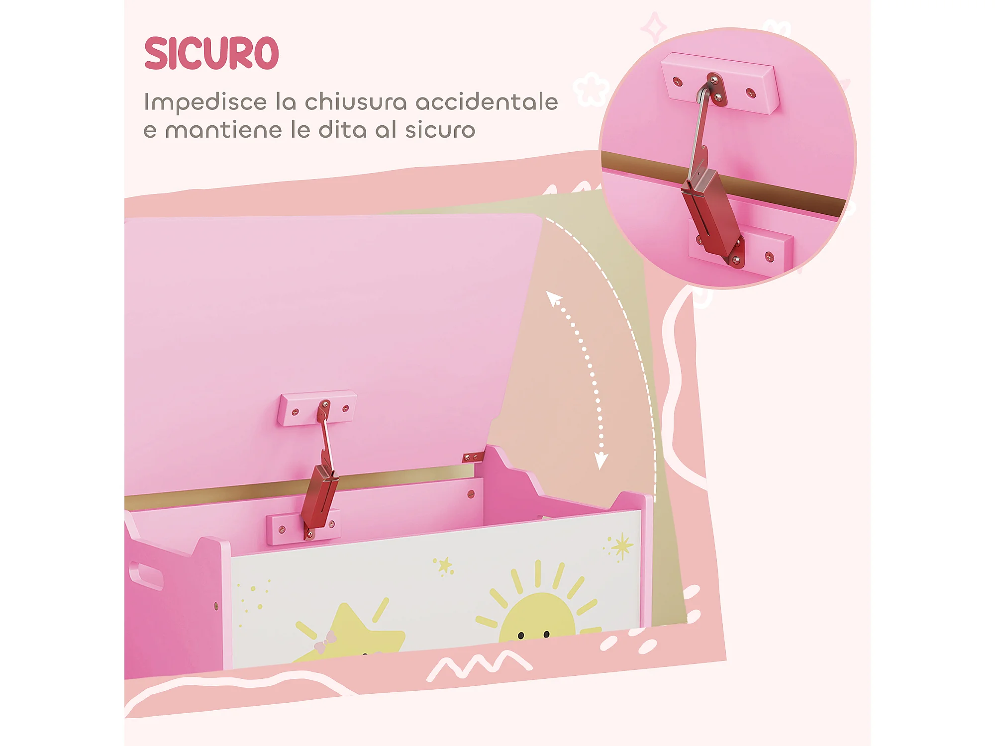 Baule cassapanca portagiochi per bambini in mdf rosa