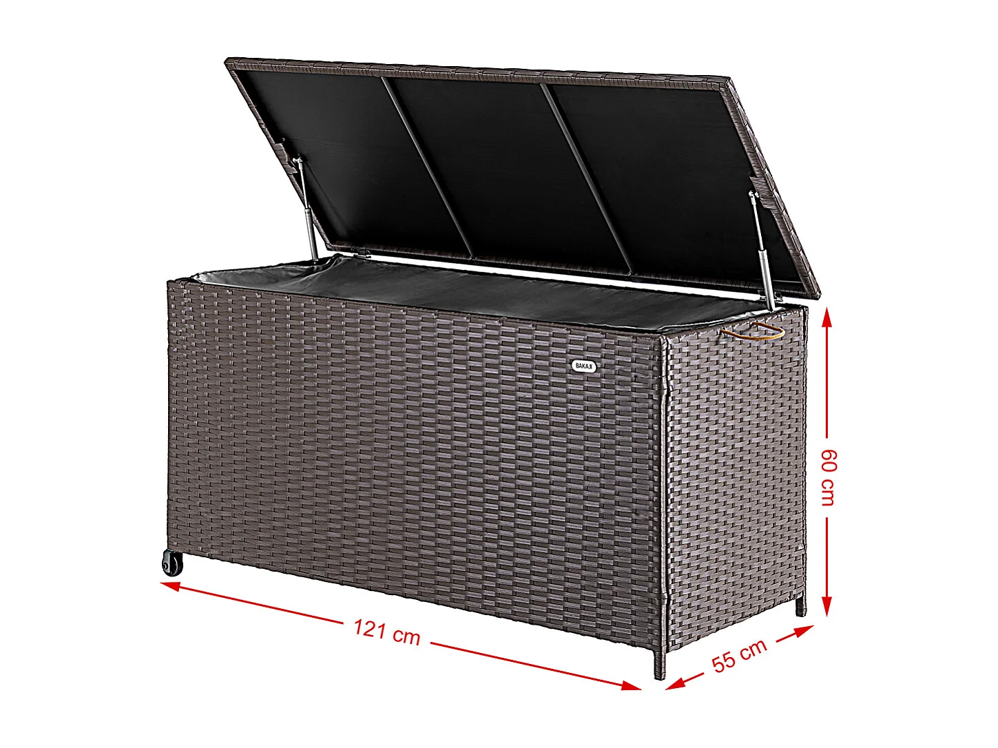 Contenitore/cassa da giardino marrone 120 x 50 x 60 cm resina intrecciata 02_0013096