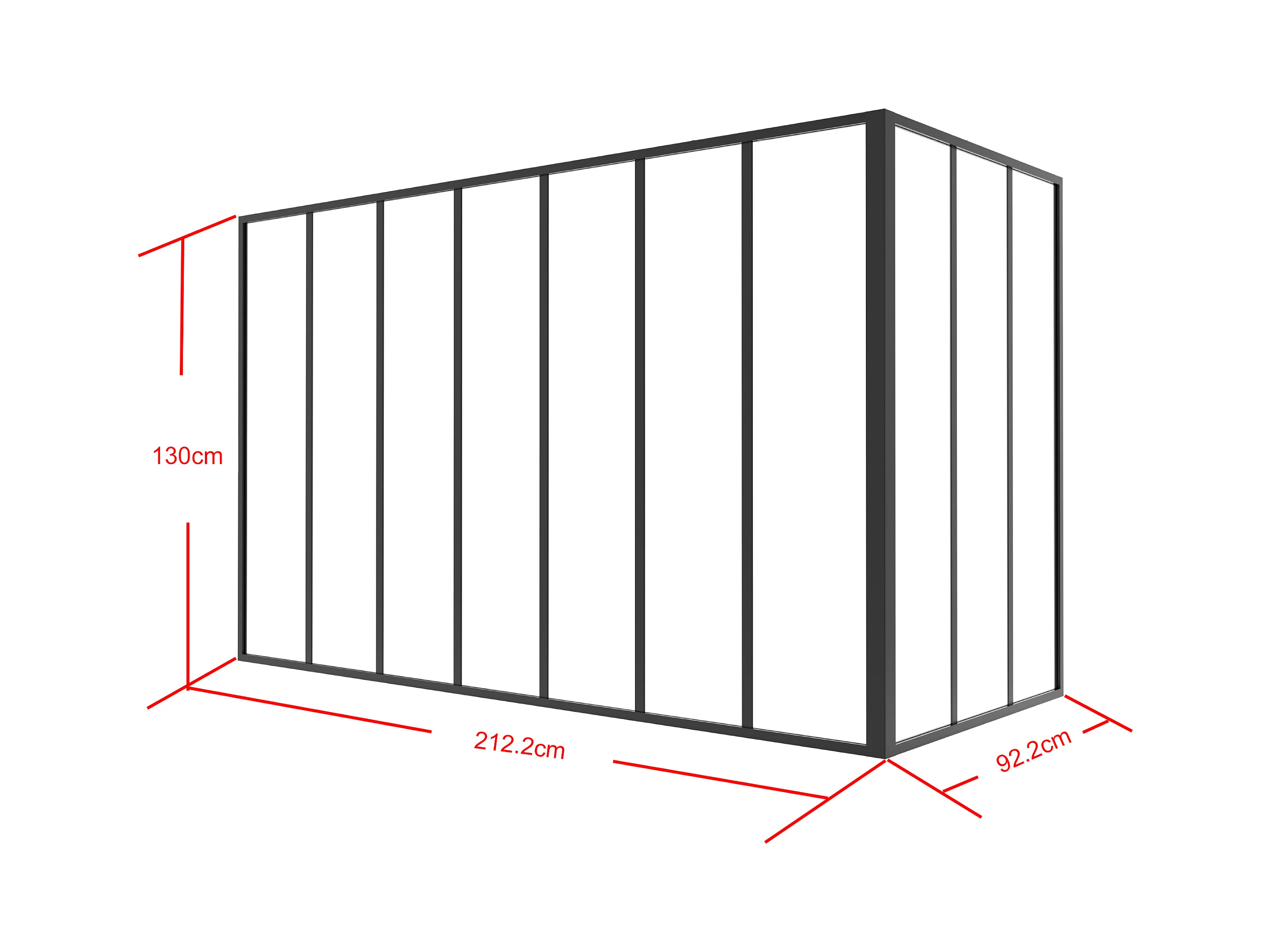 Vetrata angolare L210 x L90 x H130 in Alluminio termolaccato Nero Stile atelier - BAYVIEW