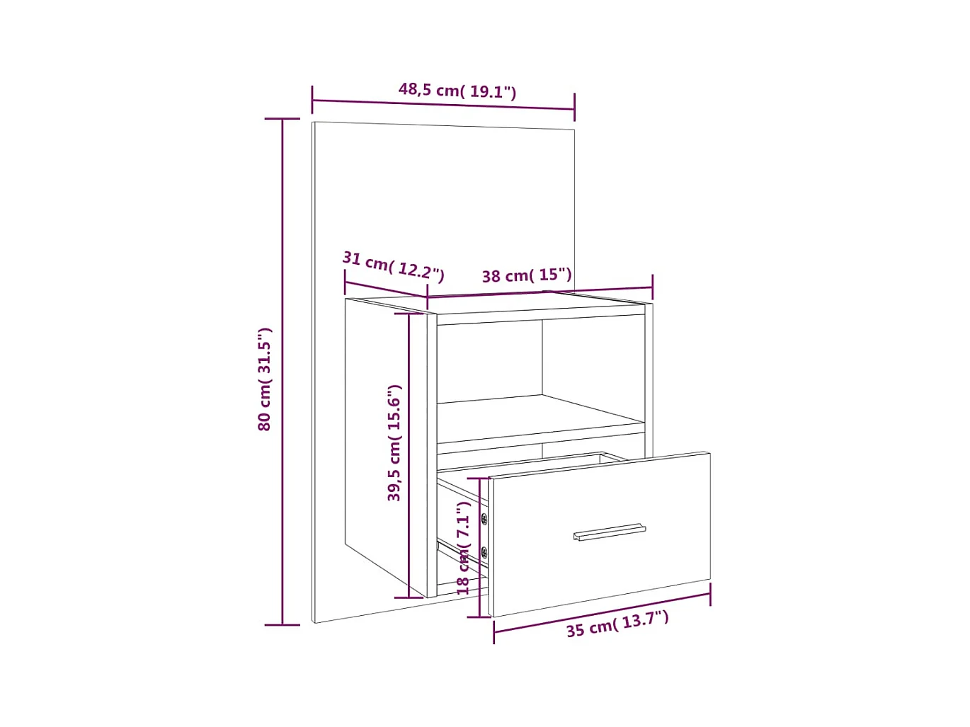 Dayton Comodini a Muro 2 pz Nero 45x30x35 cm