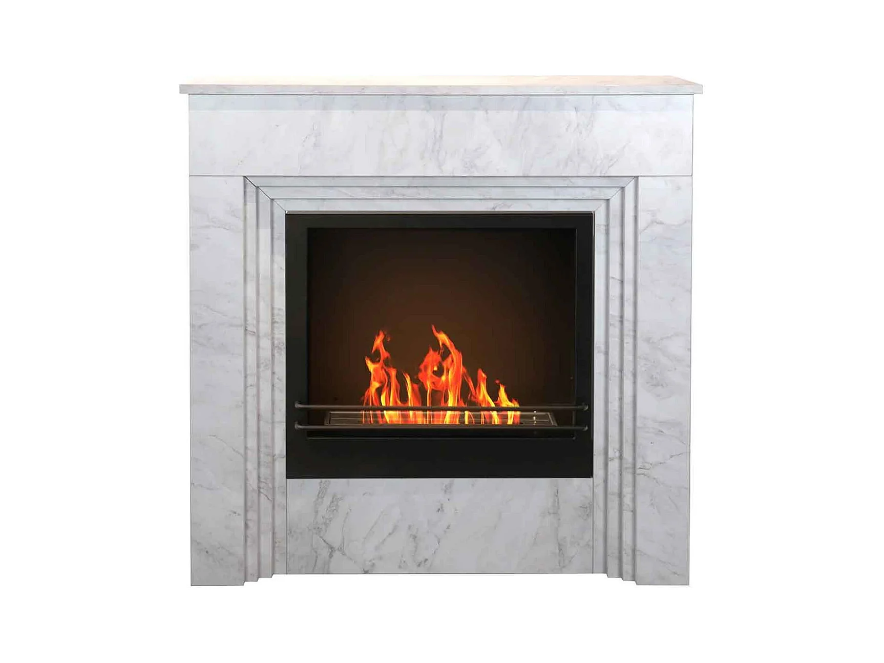 Bellini - Camino a bioetanolo da terra 96x35xH96 cm, effetto marmo bianco