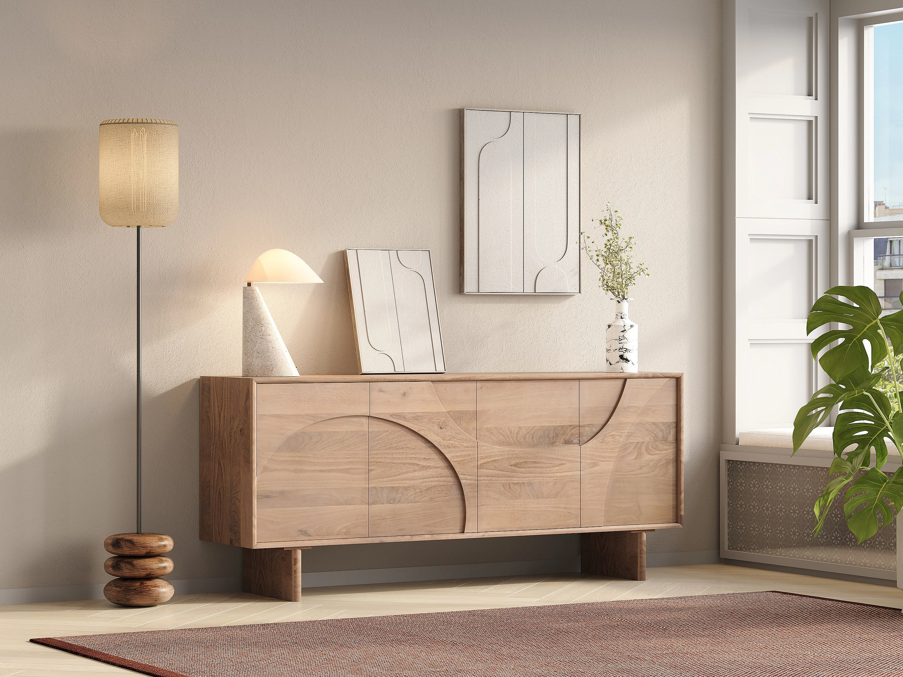 Credenza 4 ante in legno di mango Naturale chiaro - BERLAMA di Maison Céphy