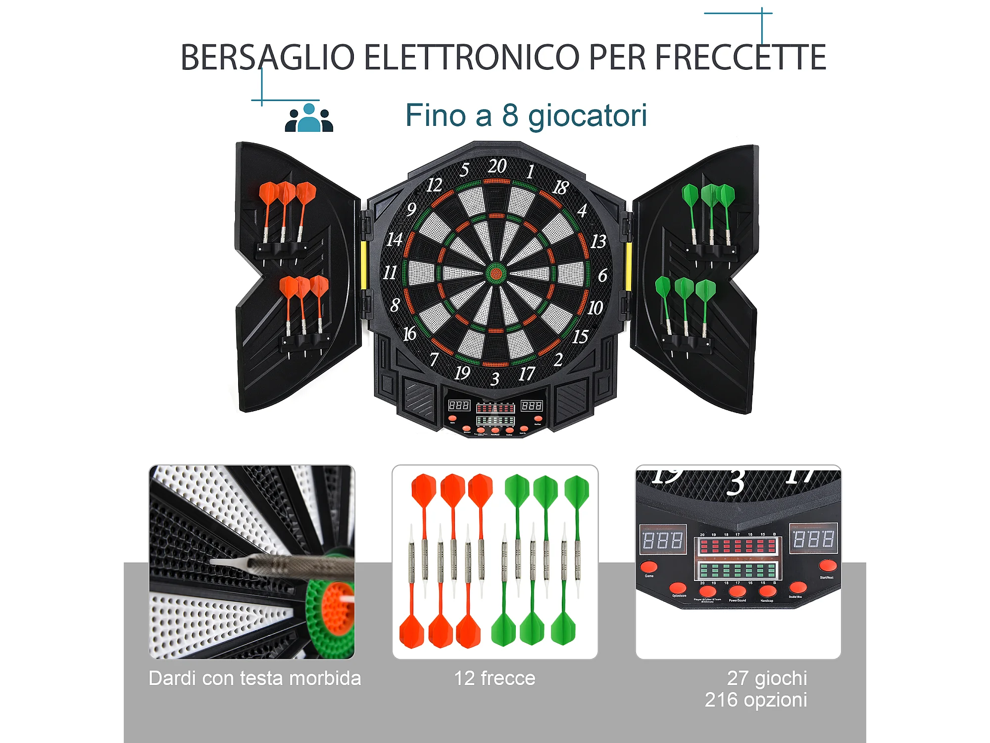 Bersaglio per freccette elettronico per 8 giocatori