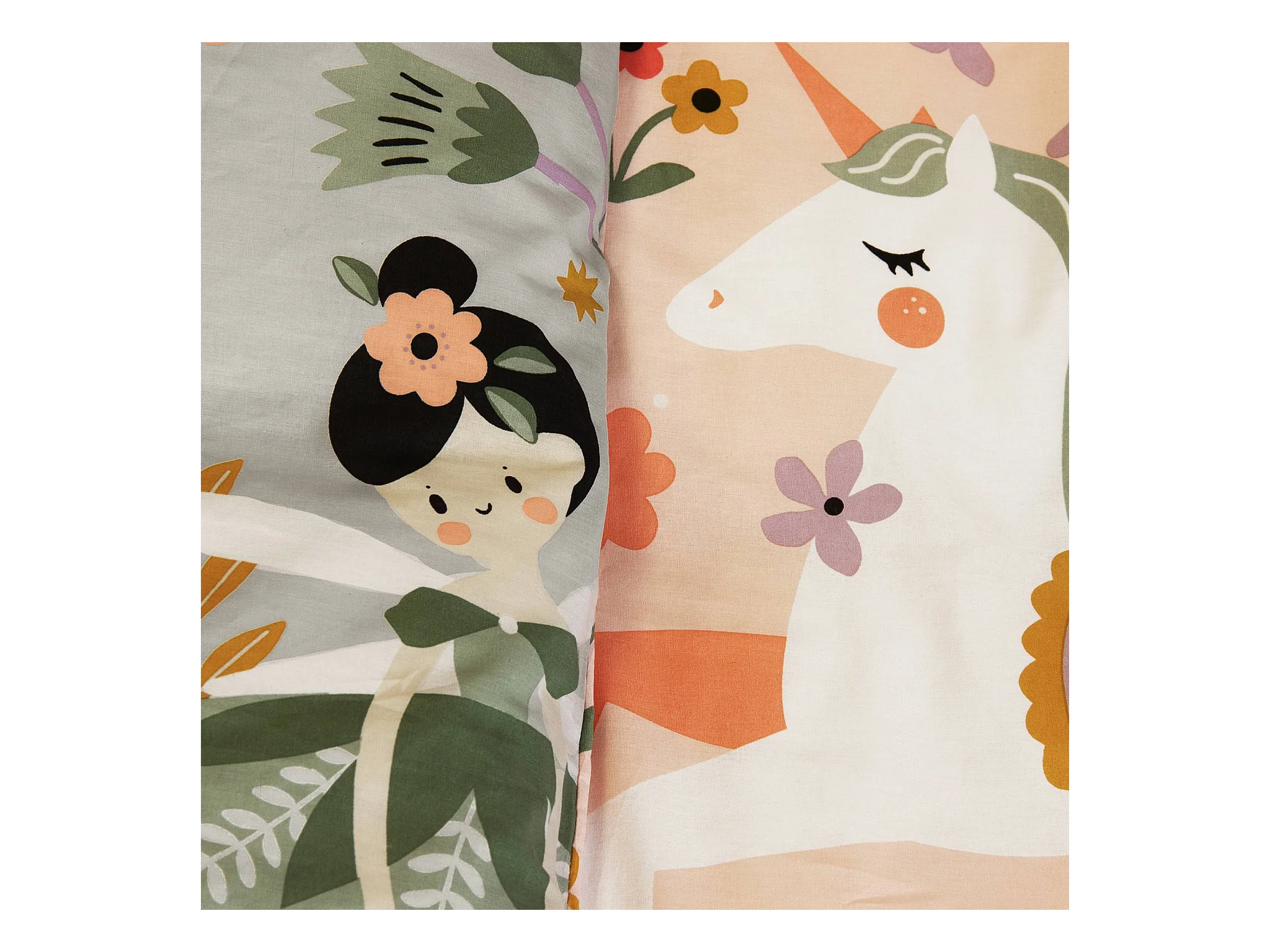 Biancheria da letto in cotone reversibile stampata unicorno/ballerina