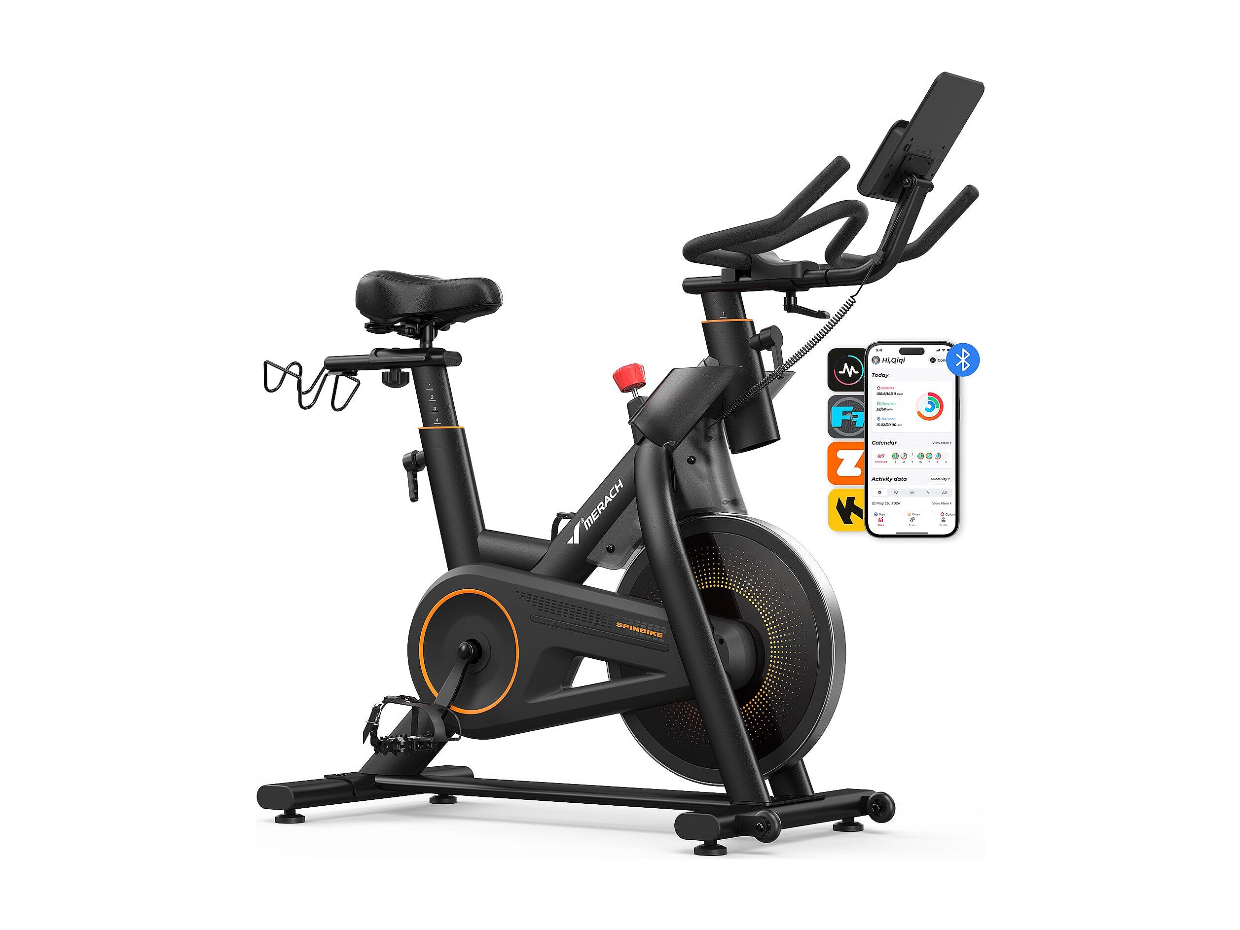 Bicicletta da Casa Magnetica MERACH, 16 Nivelli Resistenza, Display LCD, Bluetooth, Volano 6 kg, Sedile Regolabile, Cardio e Gambe