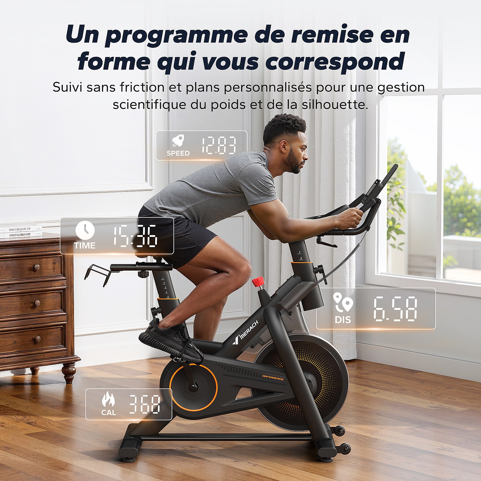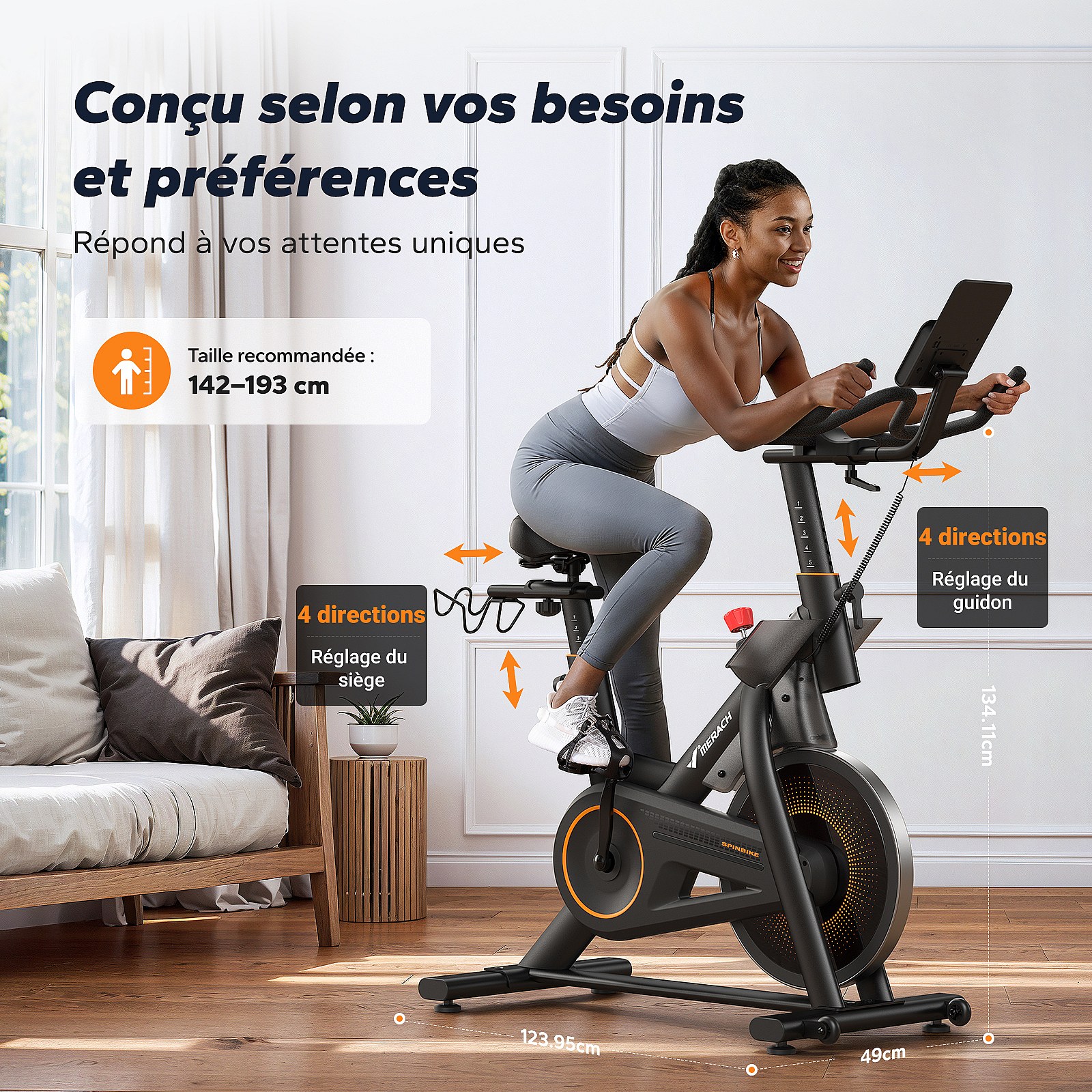 Bicicletta da camera magnetica MERACH, 8 livelli, manubrio/sella regolabili, Bluetooth, supporto per manubri, doppio portaborraccia