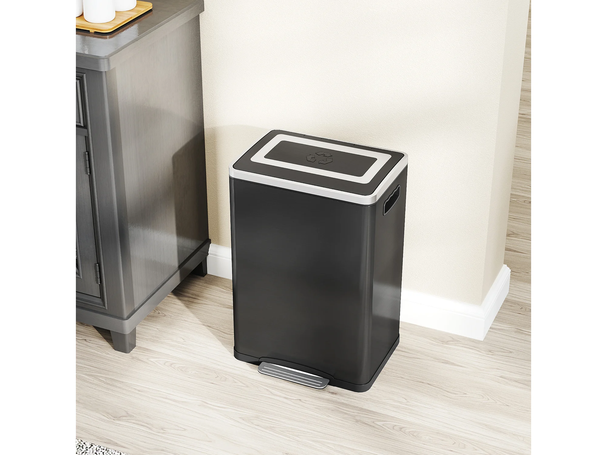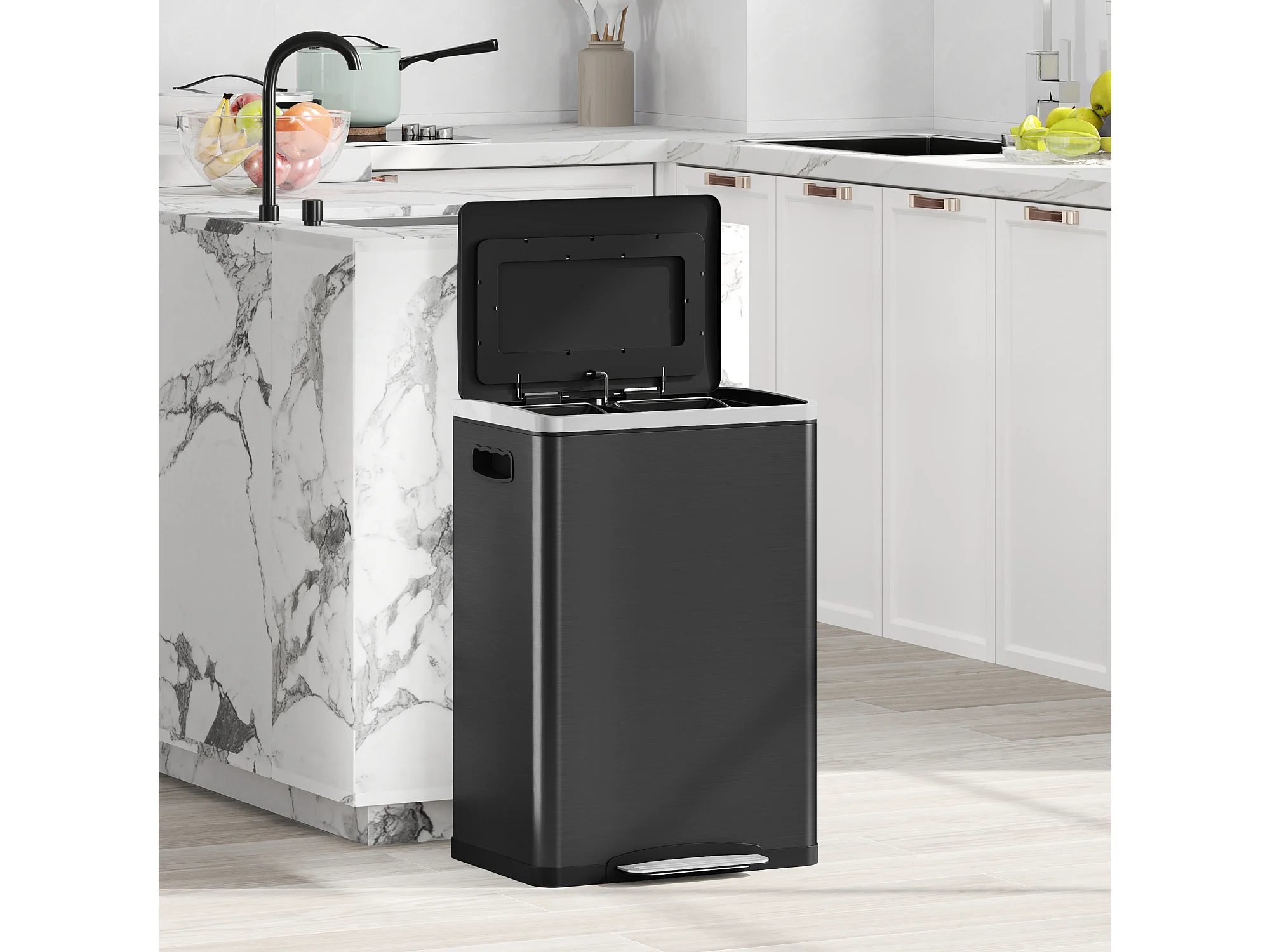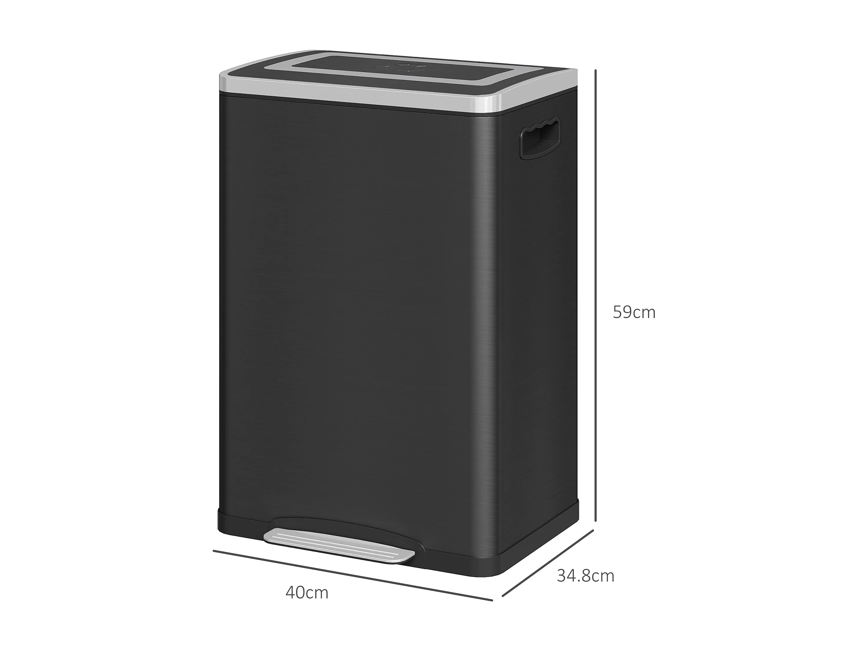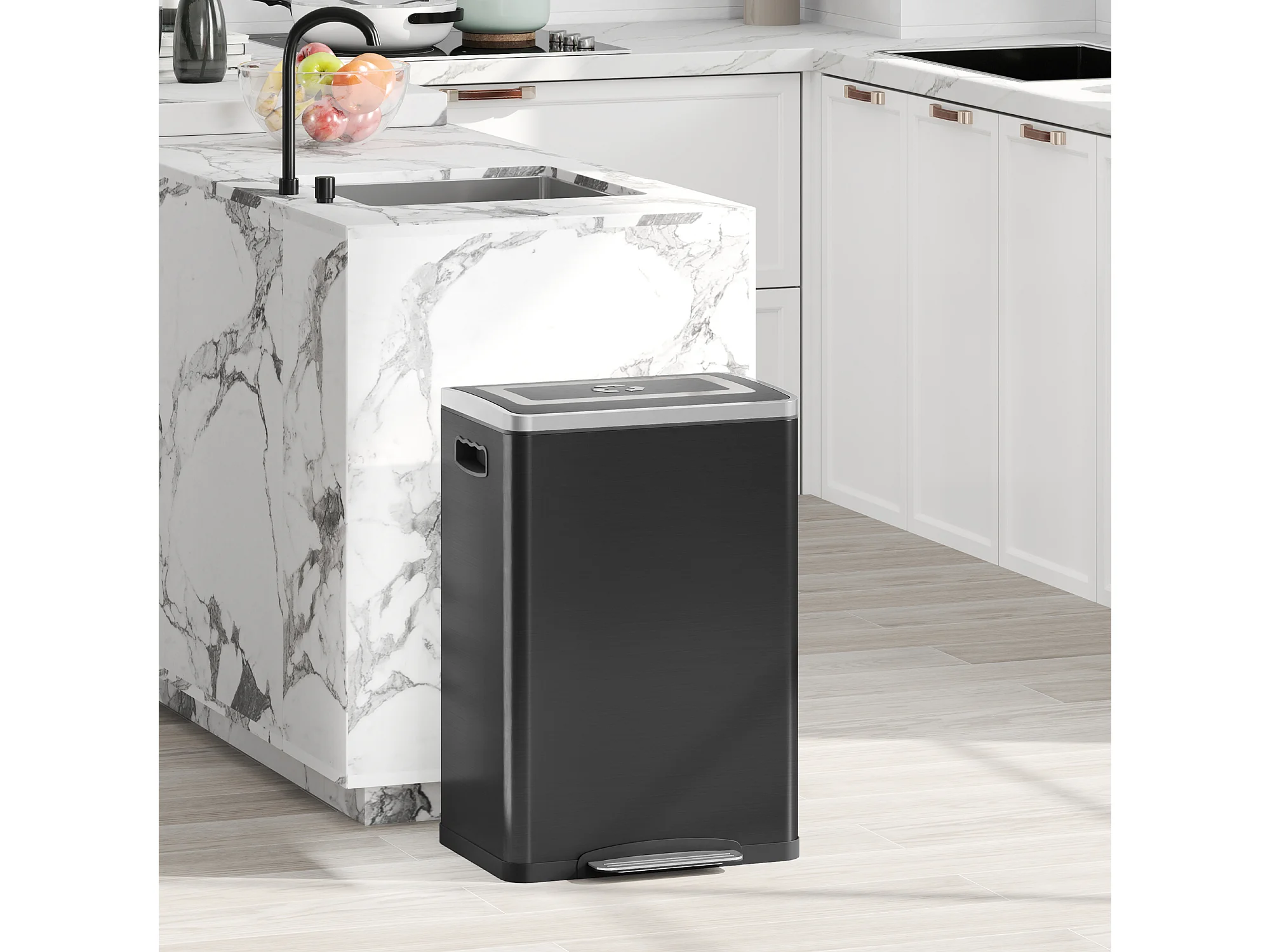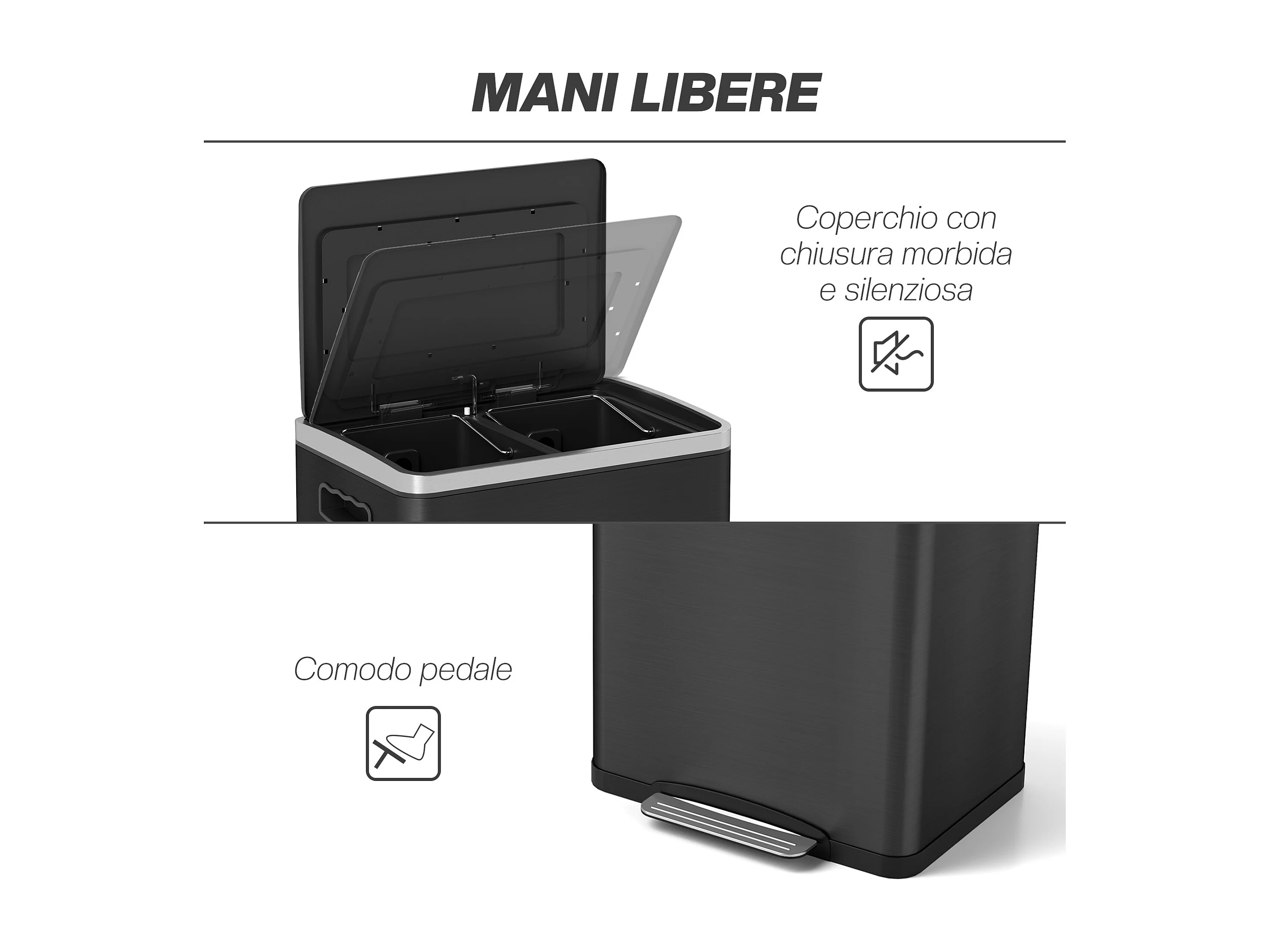 Bidone immondizia a 2 sezioni a pedale da 20l in acciaio e pp nero