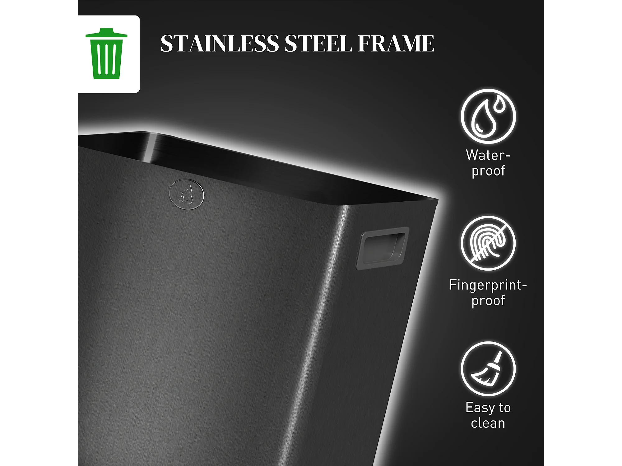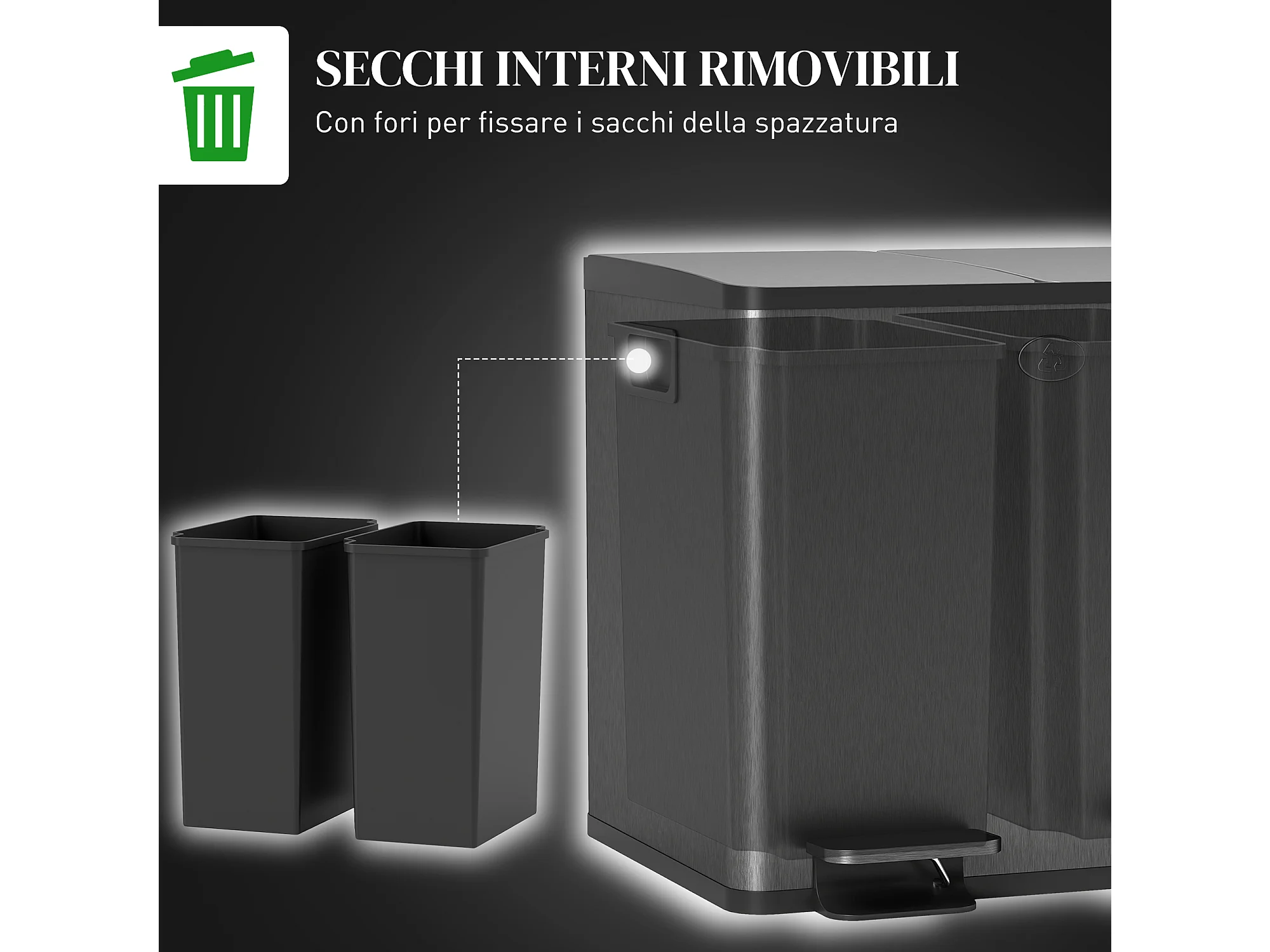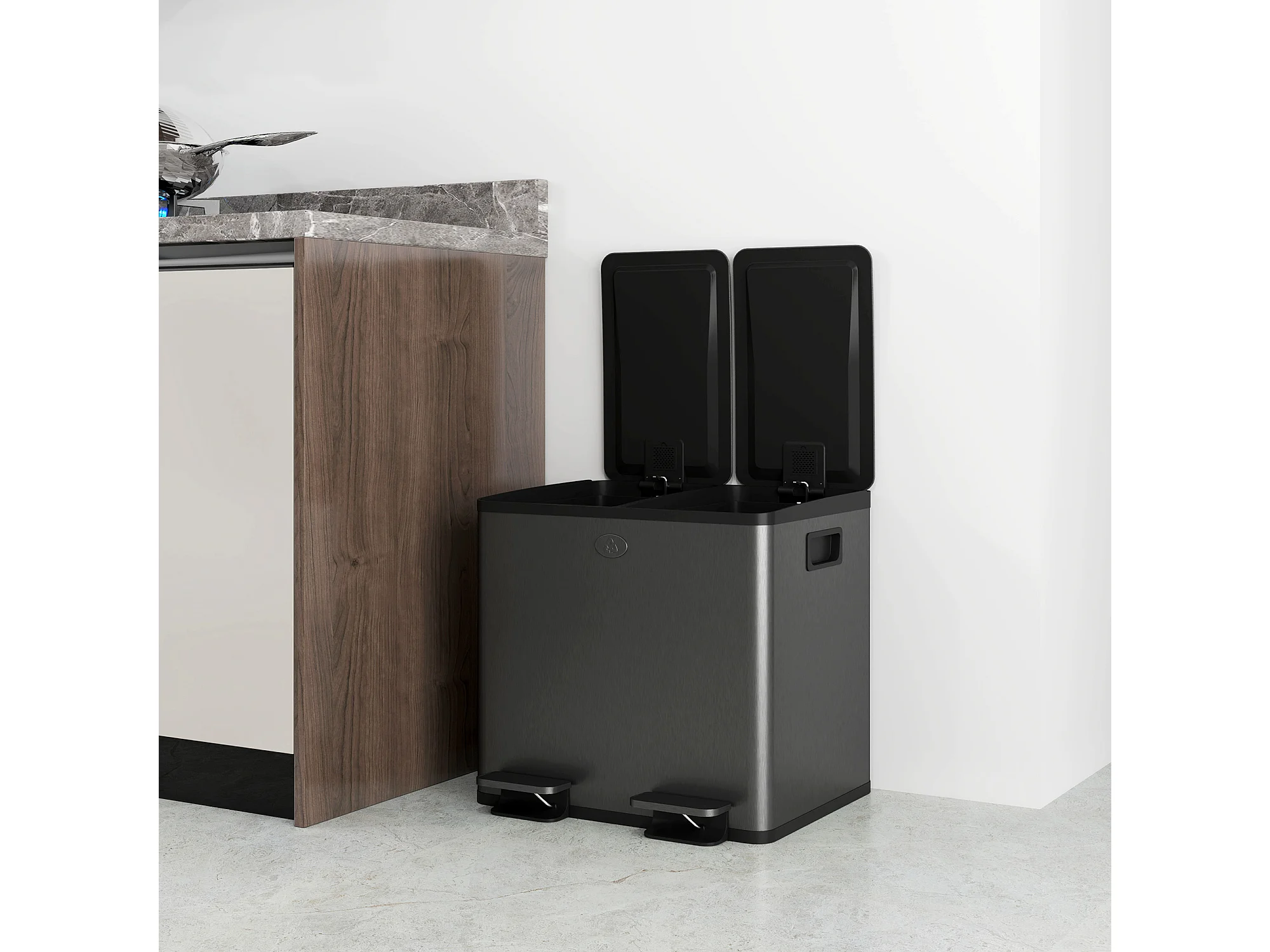 Bidone immondizia a 2 sezioni da 15l in acciaio e pp nero