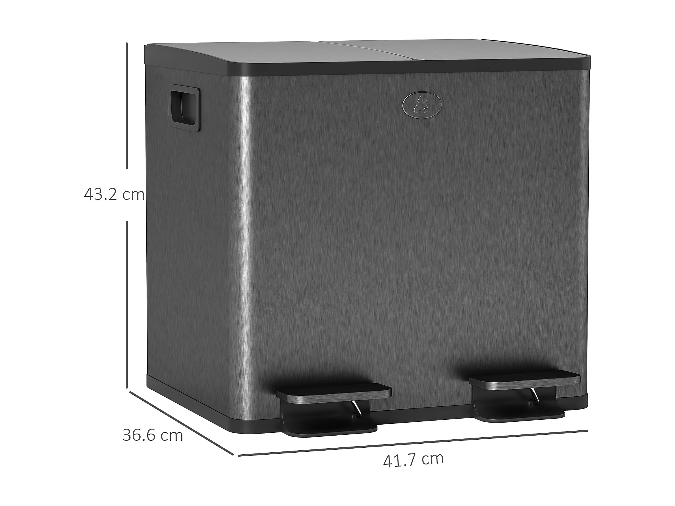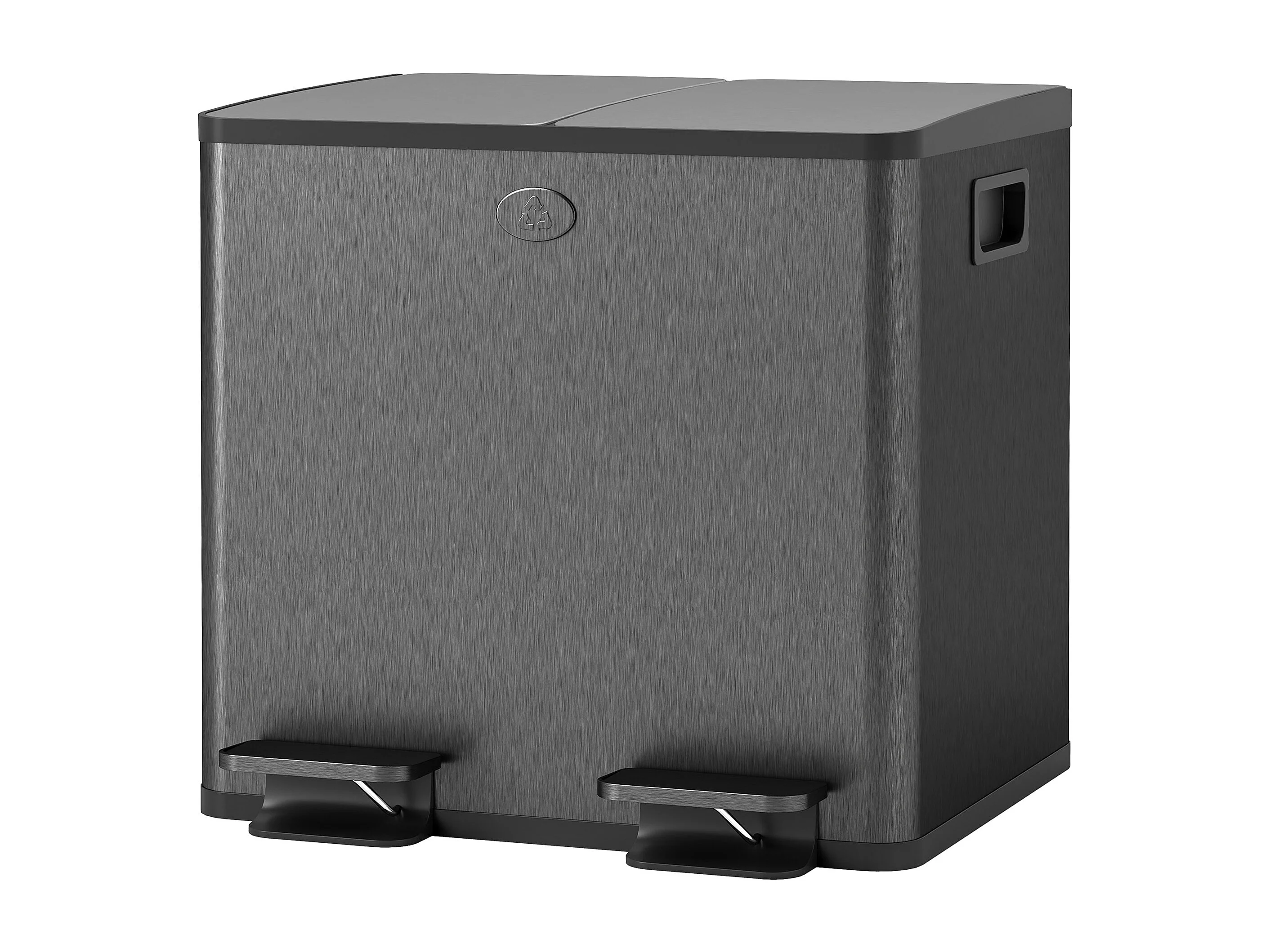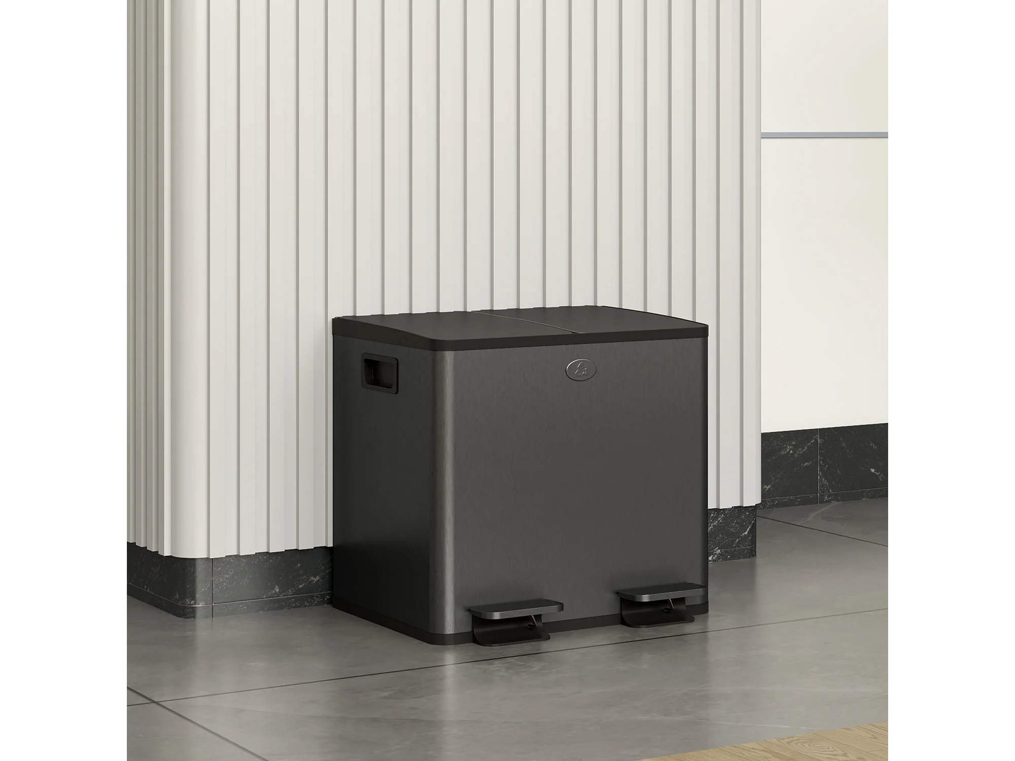 Bidone immondizia a 2 sezioni da 15l in acciaio e pp nero