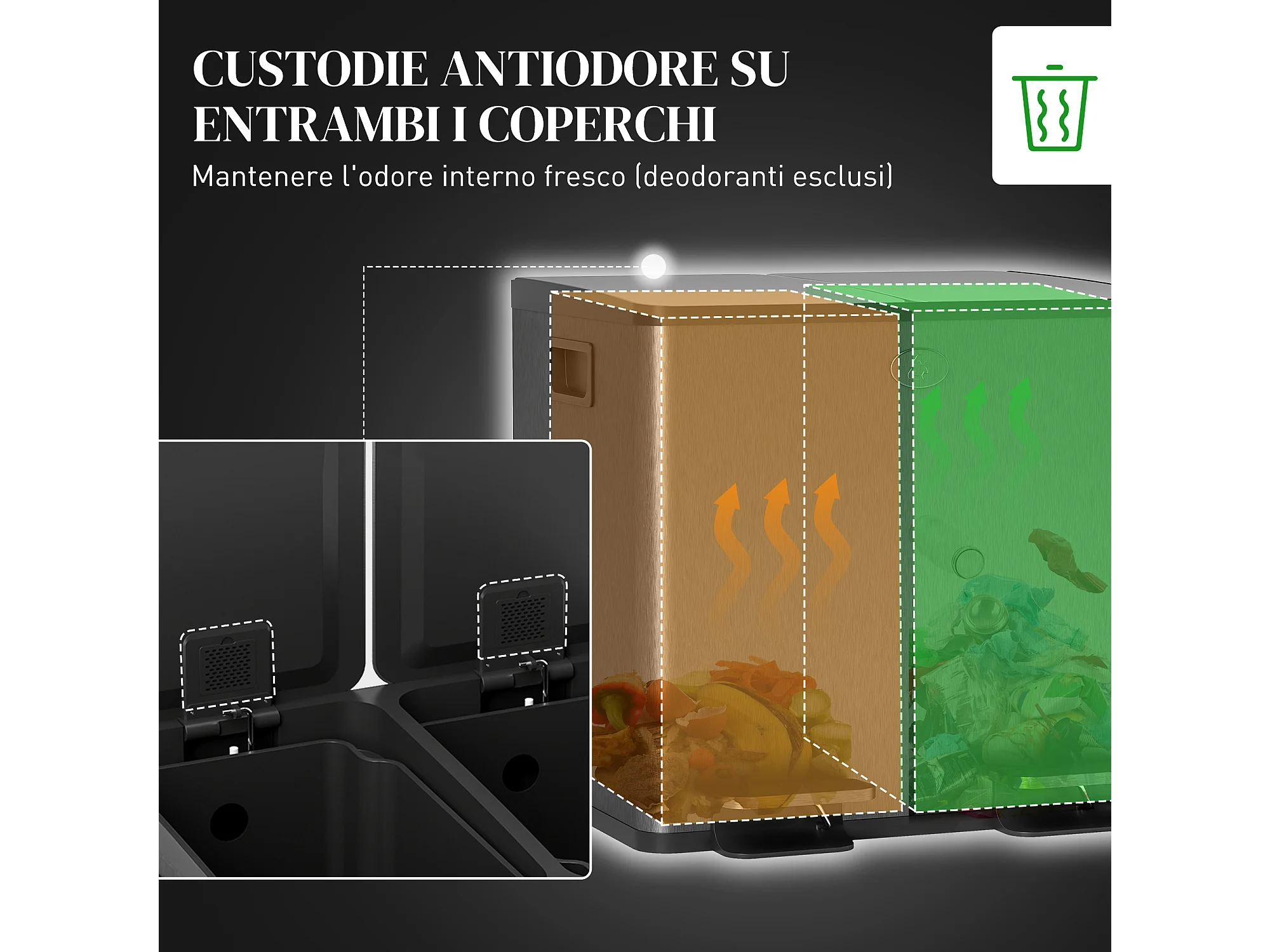 Bidone immondizia a 2 sezioni a pedale da 20l in acciaio e pp nero