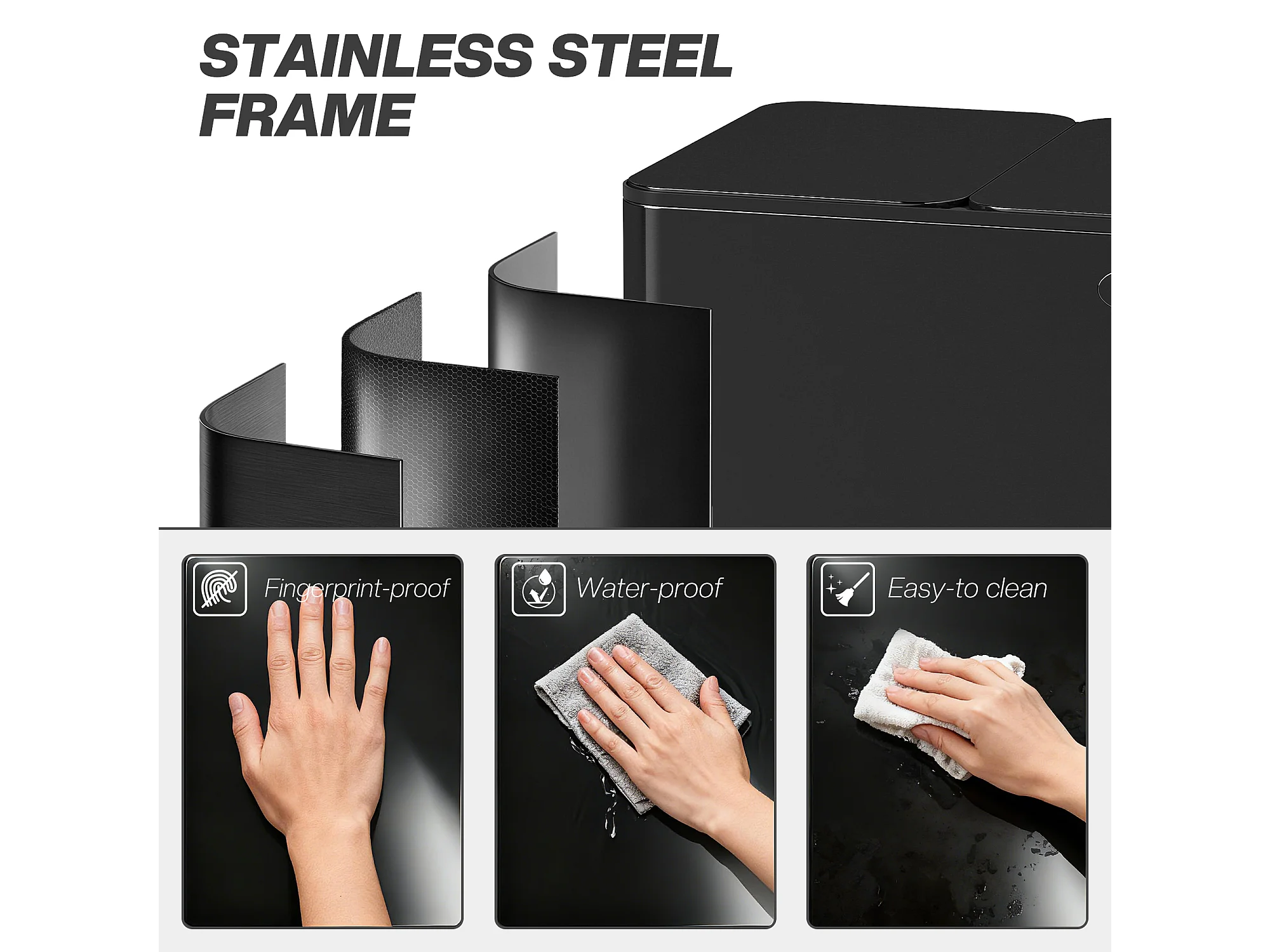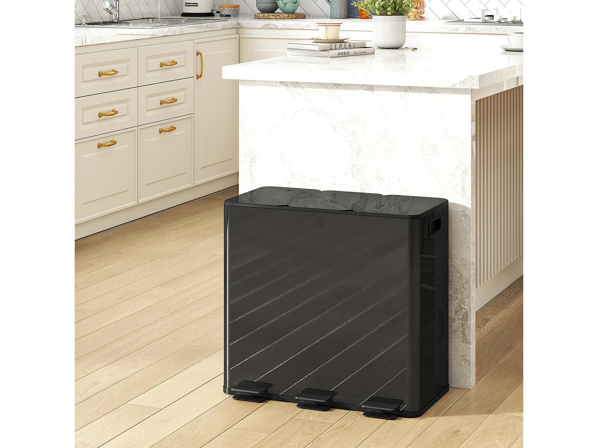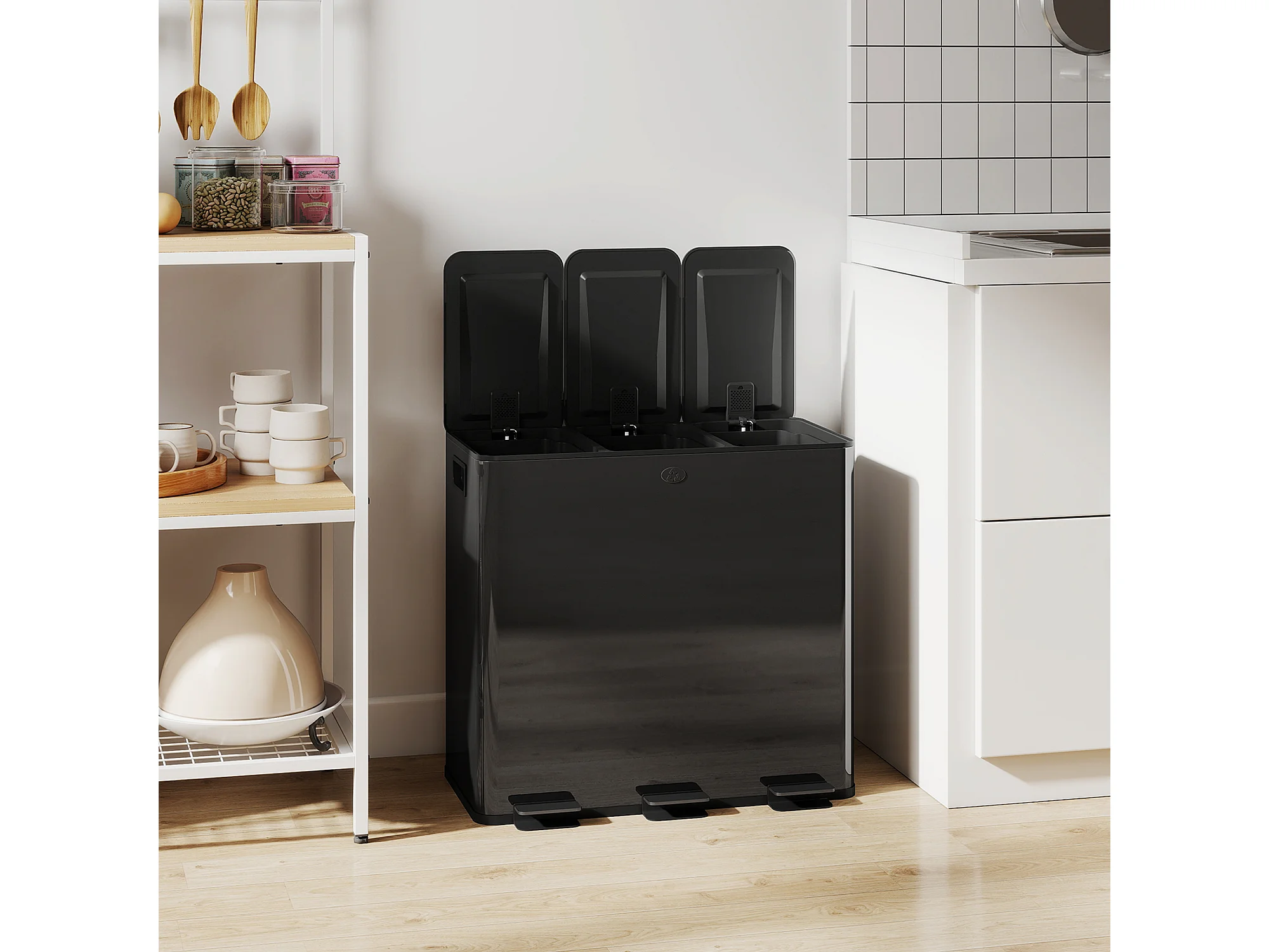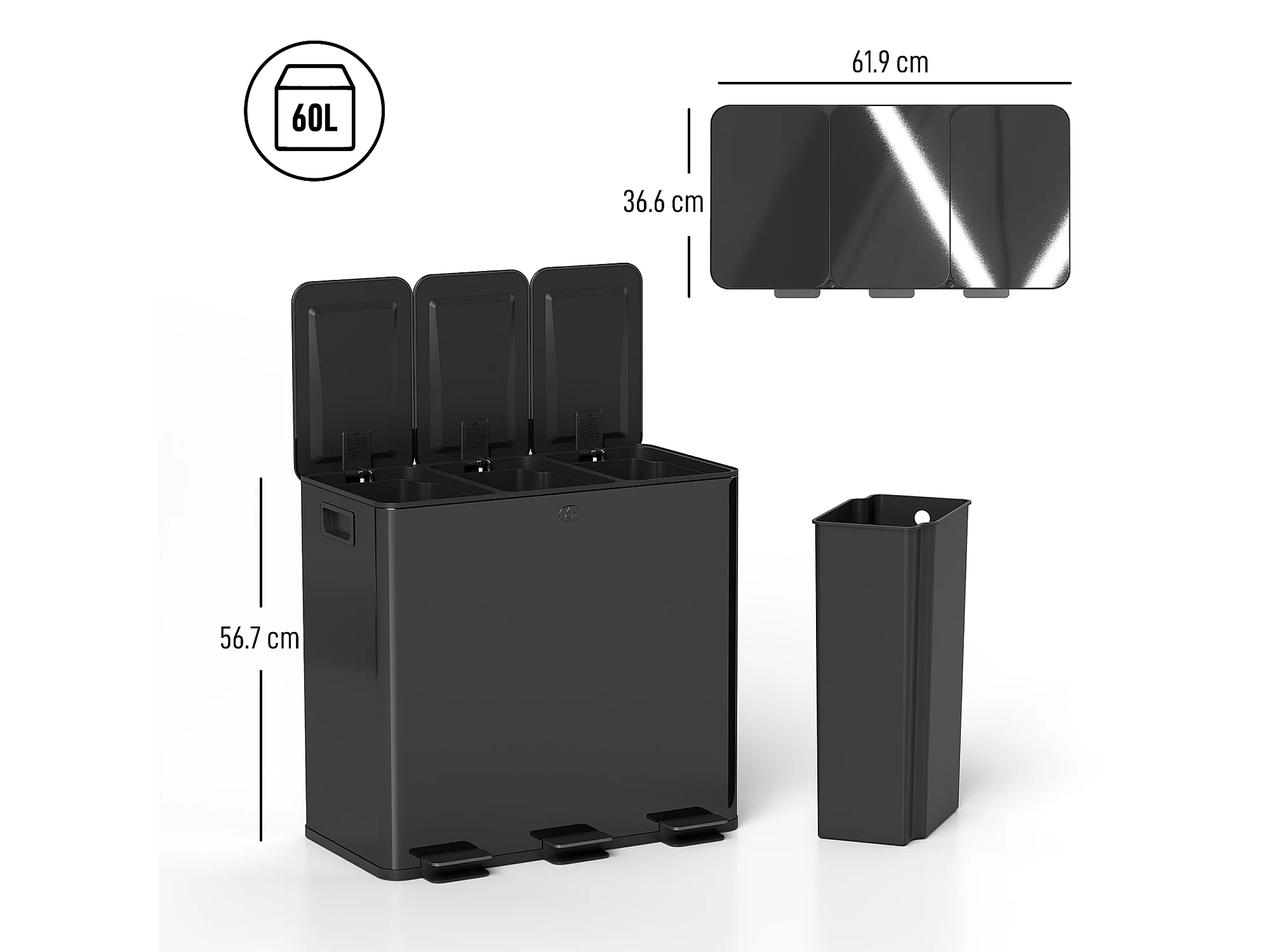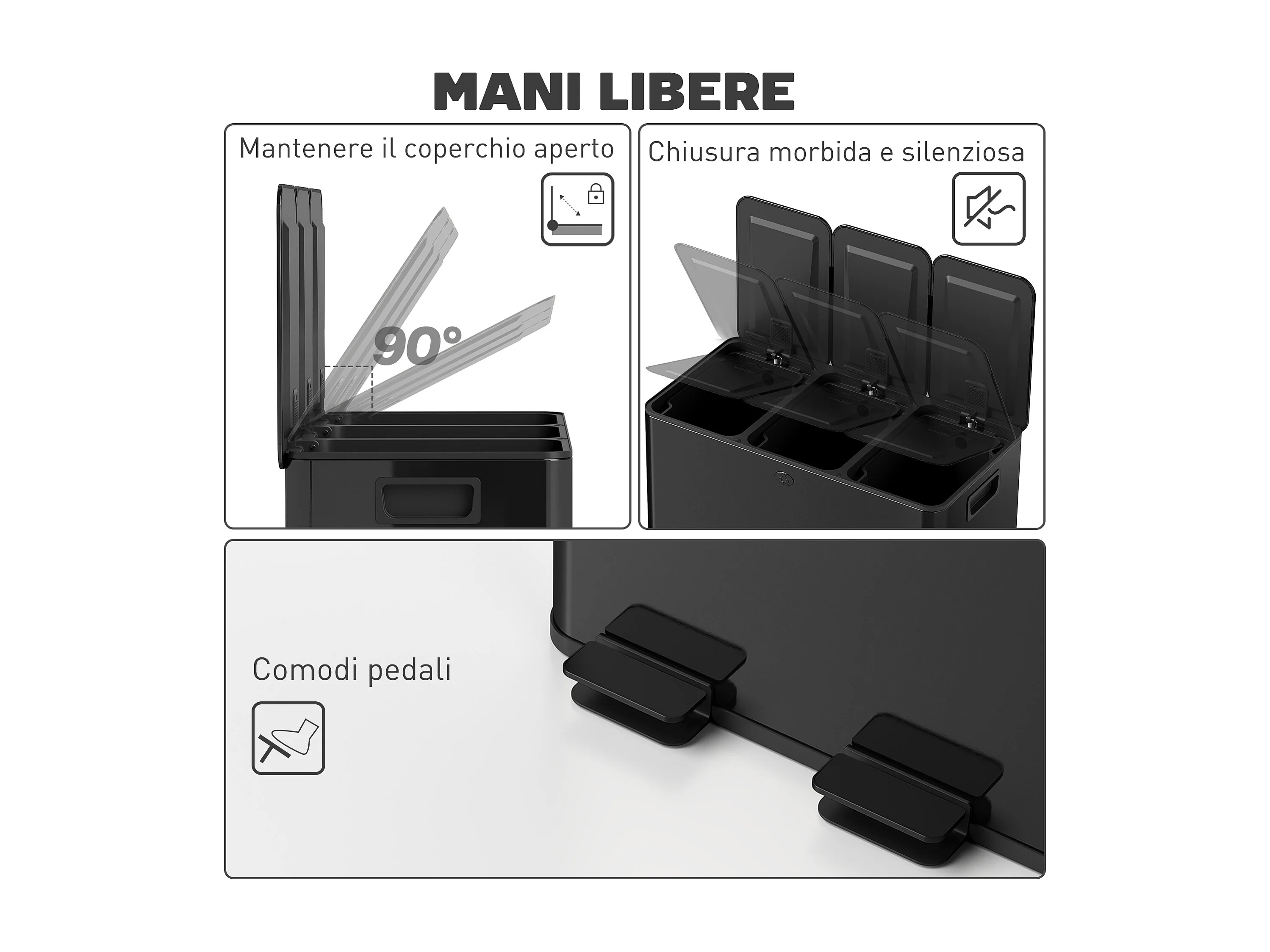 Bidone immondizia a 3 sezioni da 20l in acciaio e pp nero