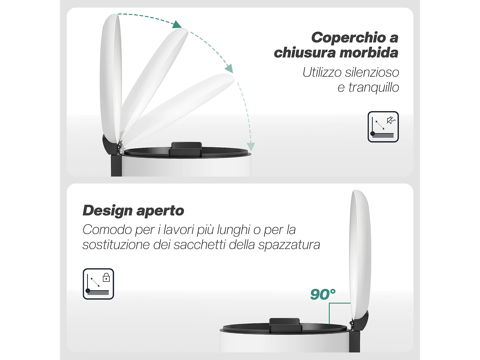 Bidone immondizia da 12l con chiusura silenziosa 24.5x32x34.5cm bianco