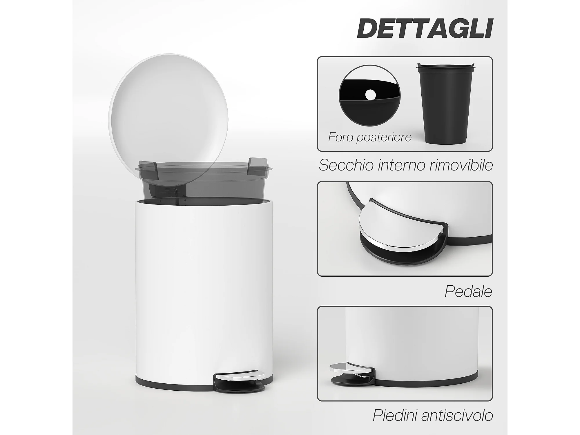 Pattumiera Bagno in Metallo Grigio 3L - Pedale e Secchio Estraibile