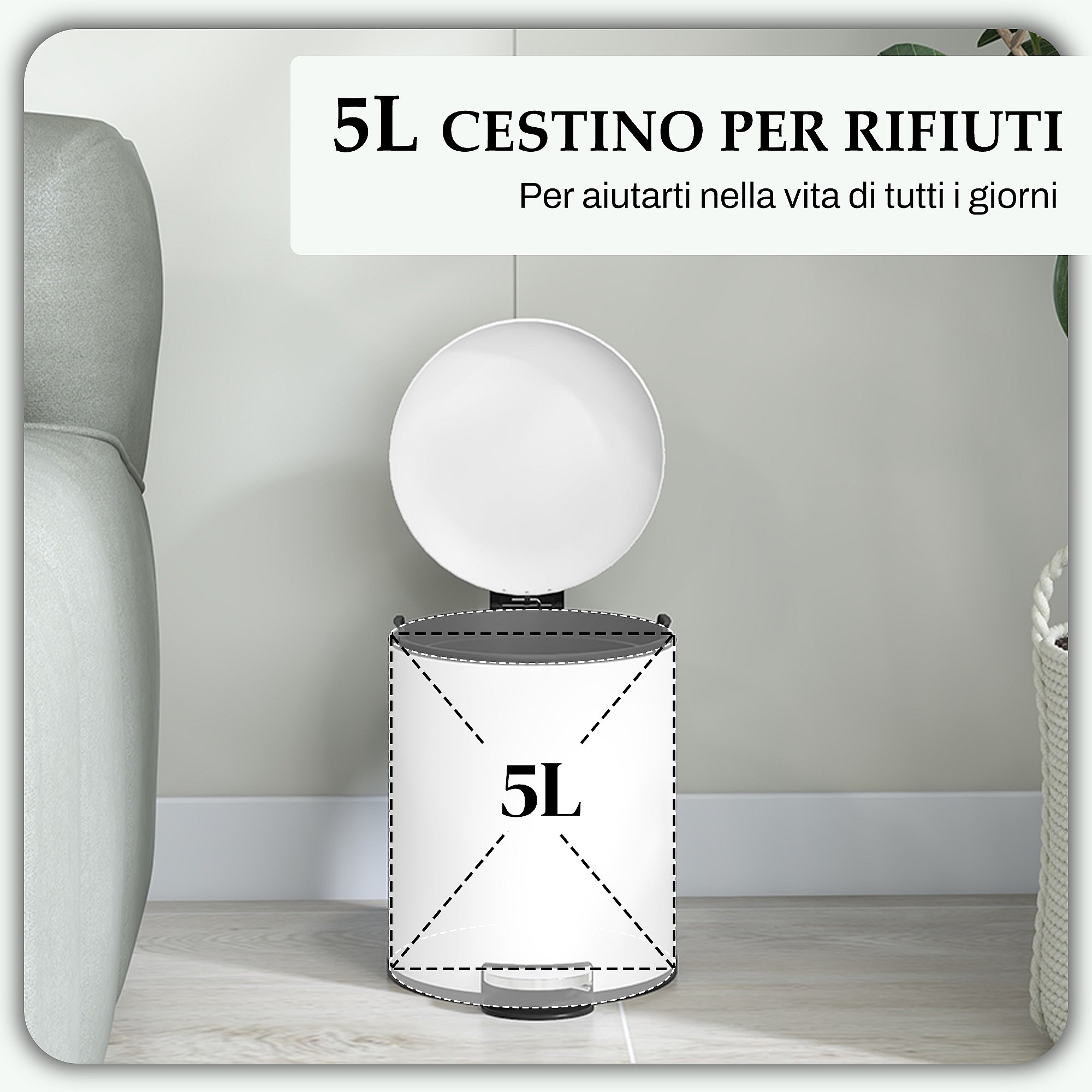 Bidone immondizia a pedale da 5l in metallo e pp 26.5x21x28 cm crema