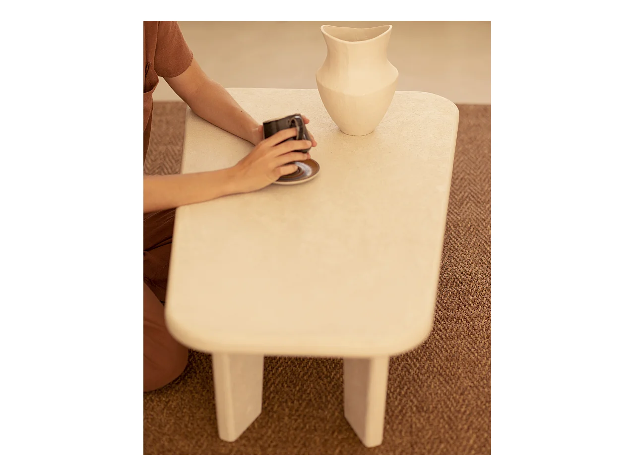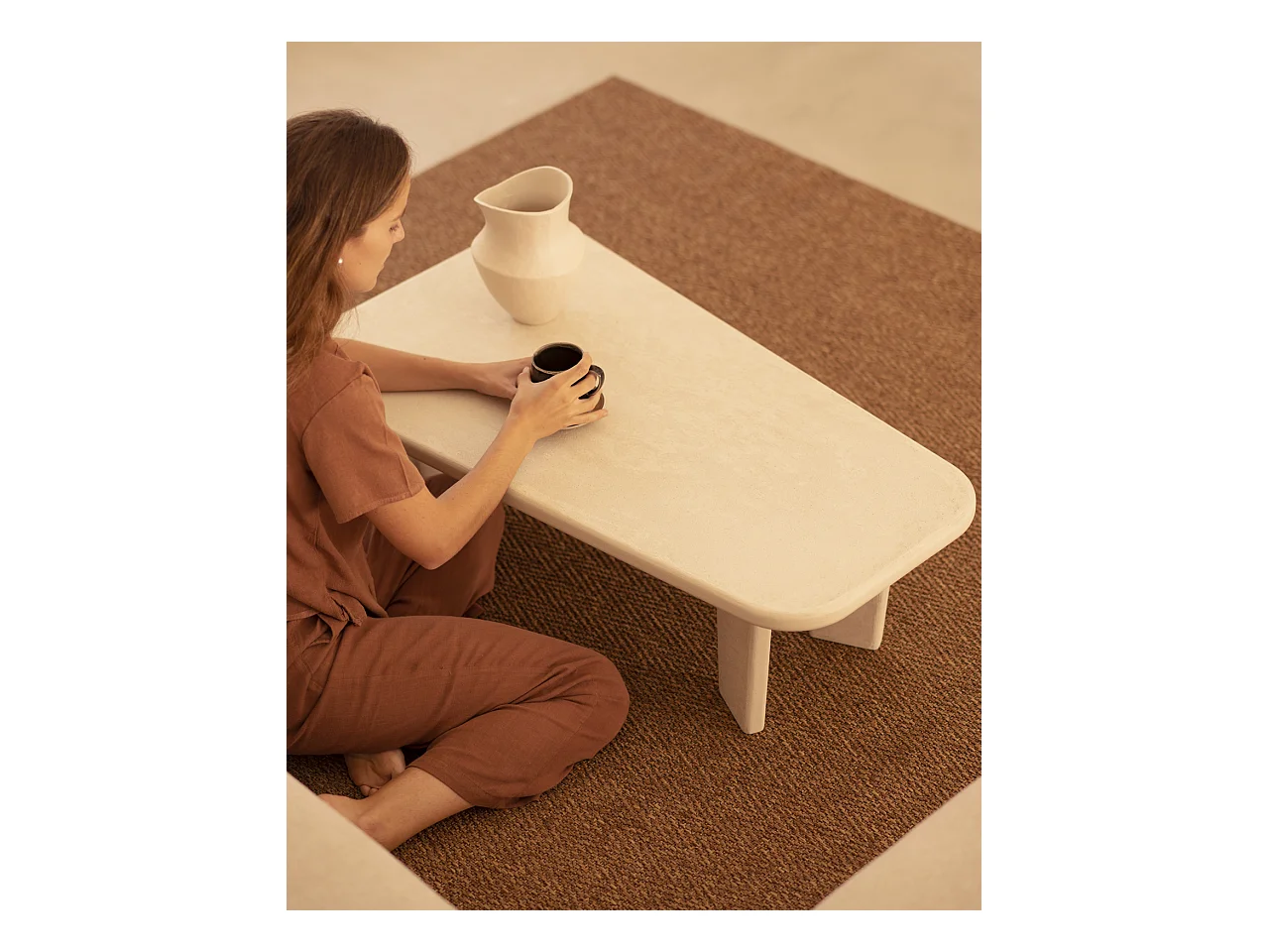 BIMBA - Tavolo basso in microcemento in tono bianco rotto 100x30cm - BIMBA - DECOWOOD