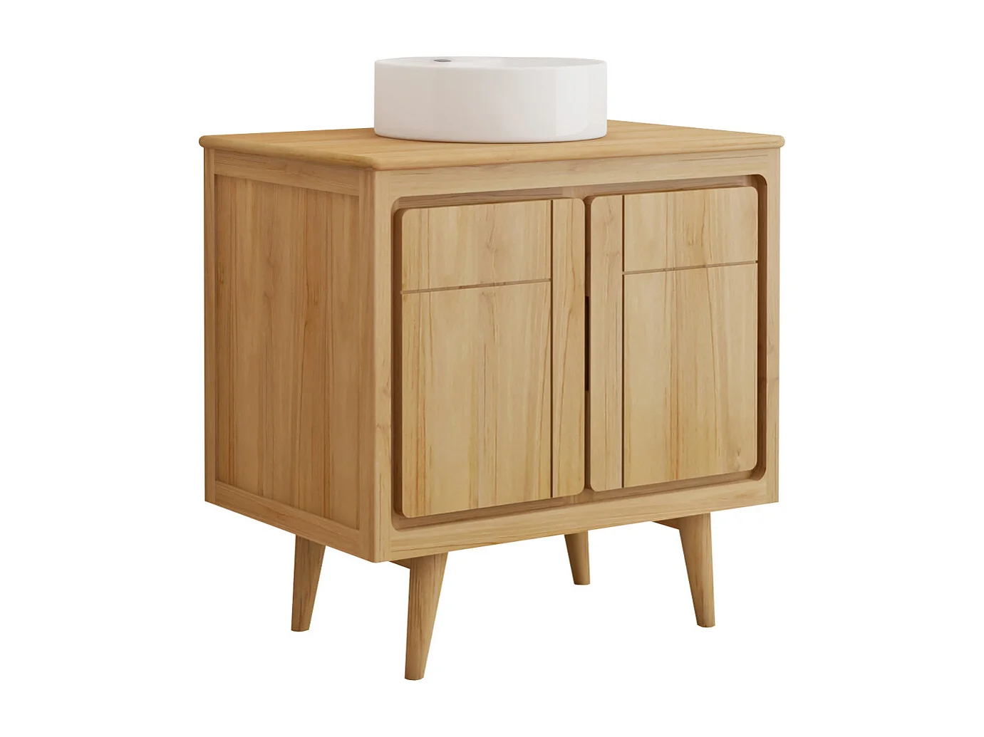 Mobile bagno in teak con piedi e lavabo da appoggio rotondo in ceramica 80 cm - BINTUNI