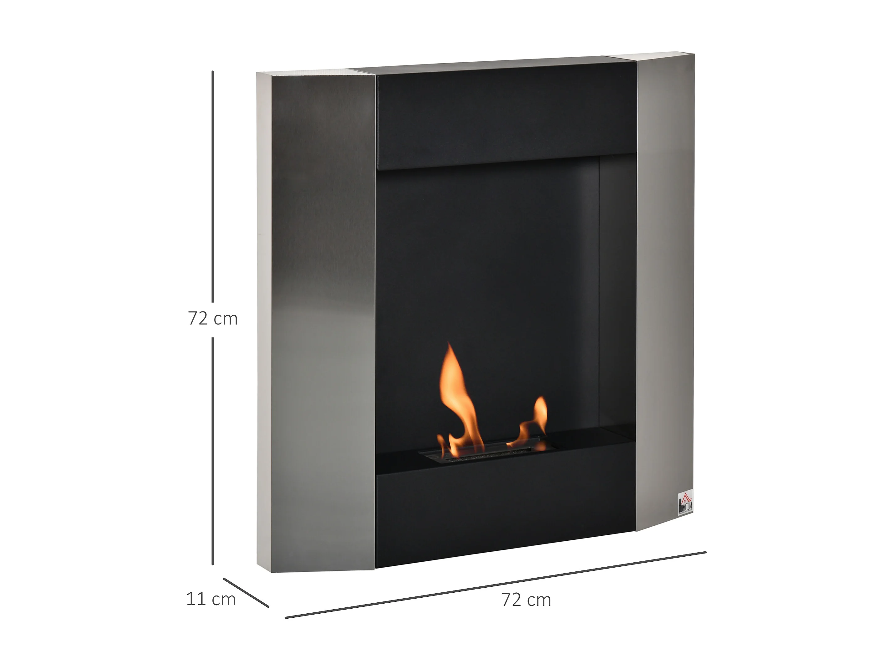 Biocamino da parete con serbatoio da 0.7l area riscaldata 20m²