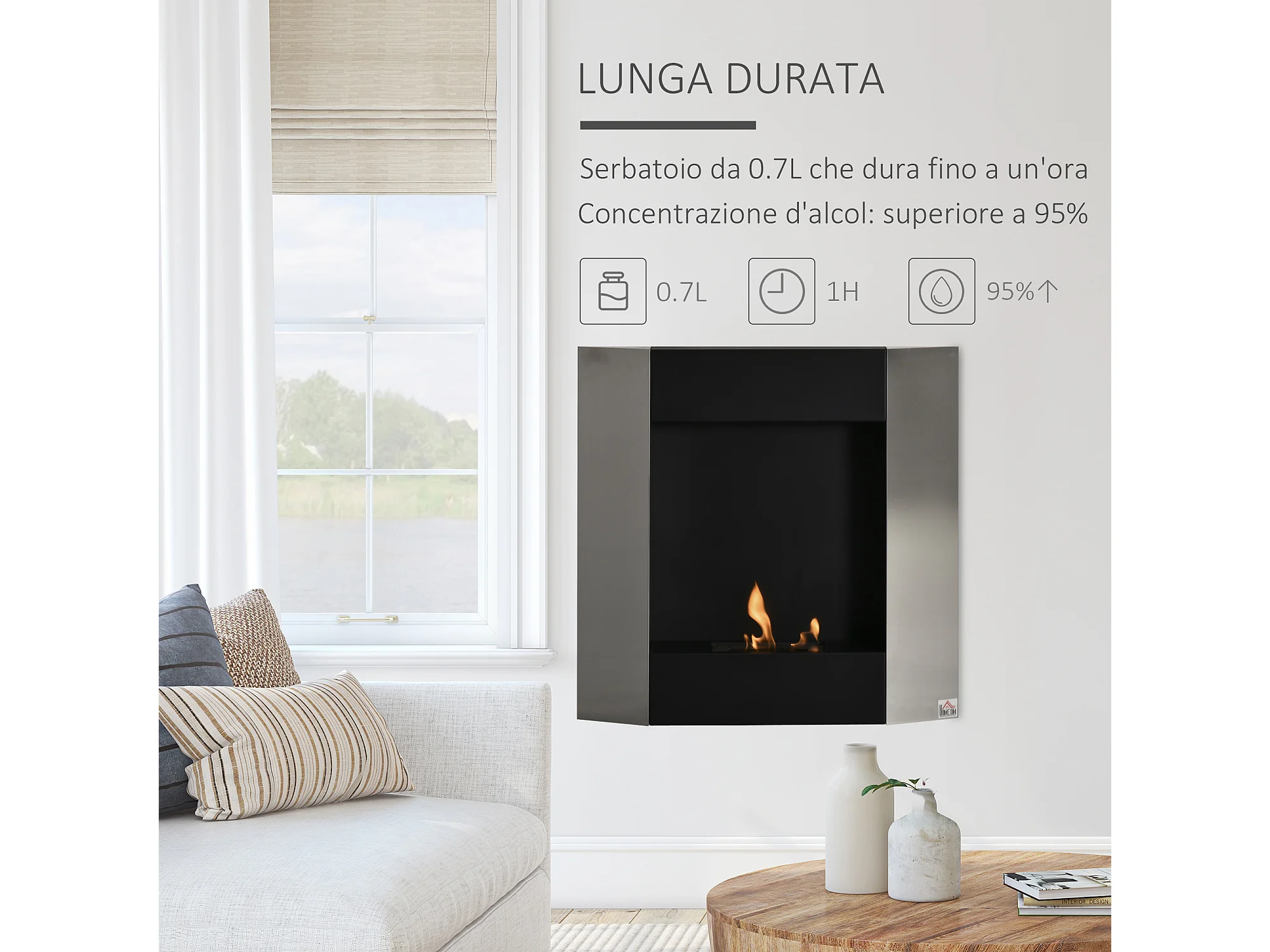 Camino bioetanolo da parete 3 serbatoi da 1l copertura 20m²
